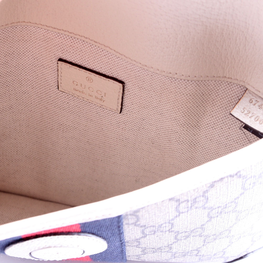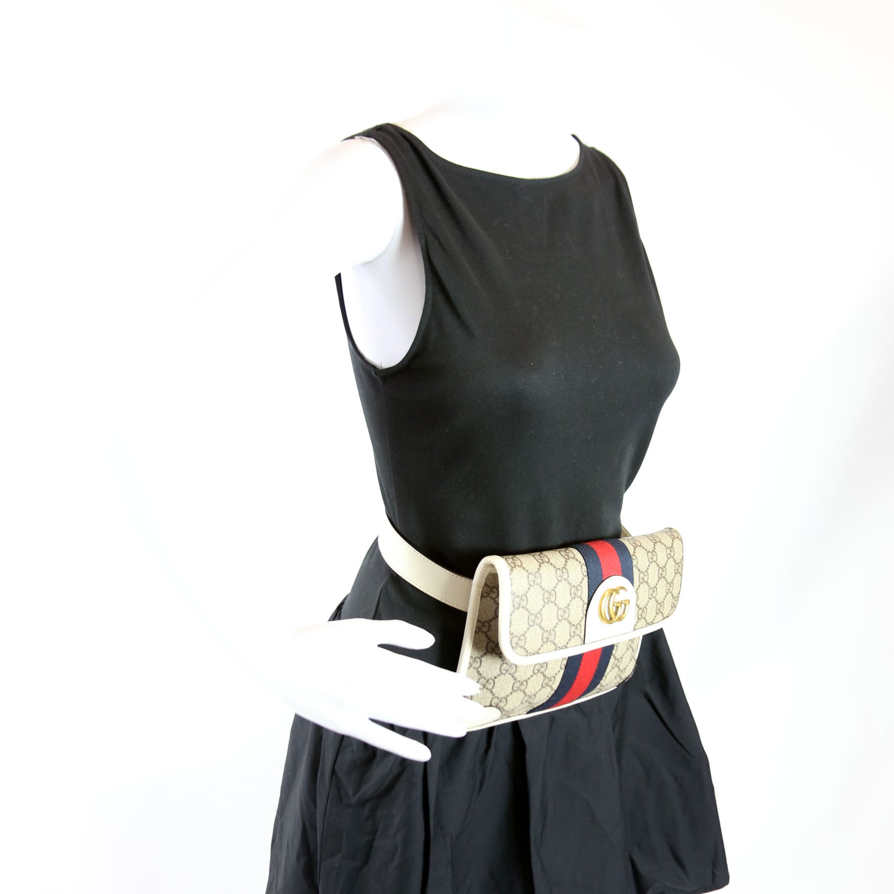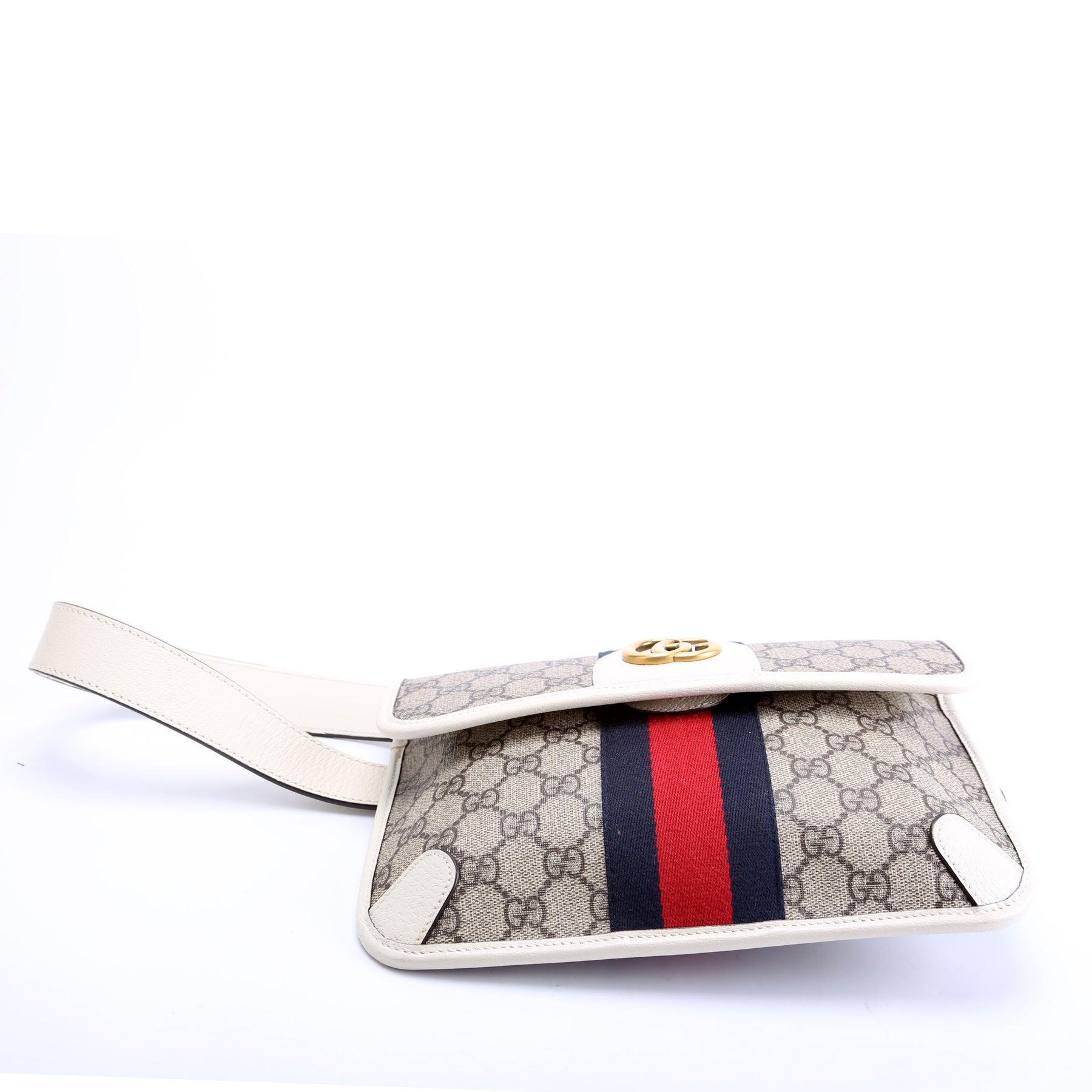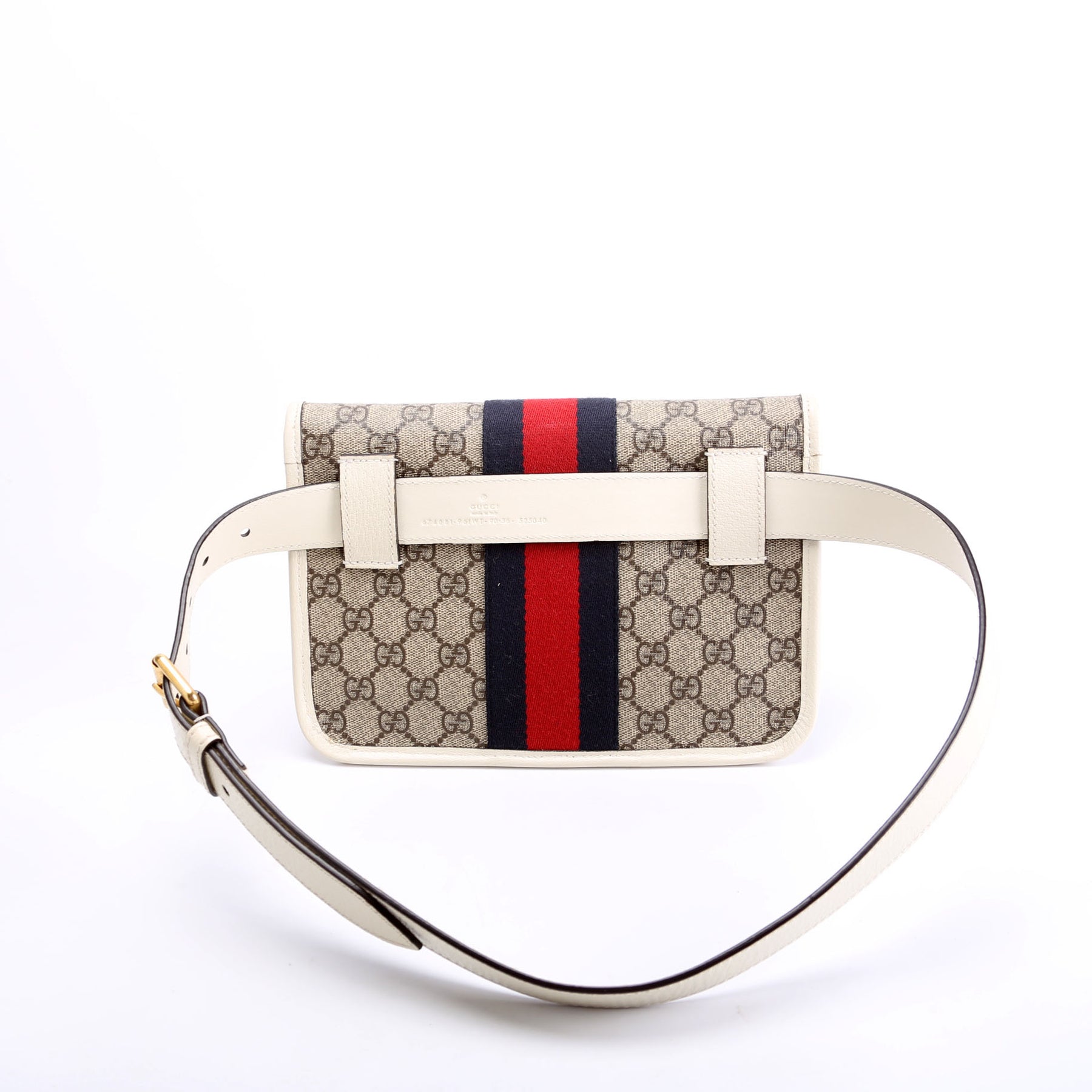 This pre-owned Gucci GG Supreme Ophidia Belt Bag is guaranteed 100% authentic. The exterior is in the classic Gucci GG Supreme coated canvas.