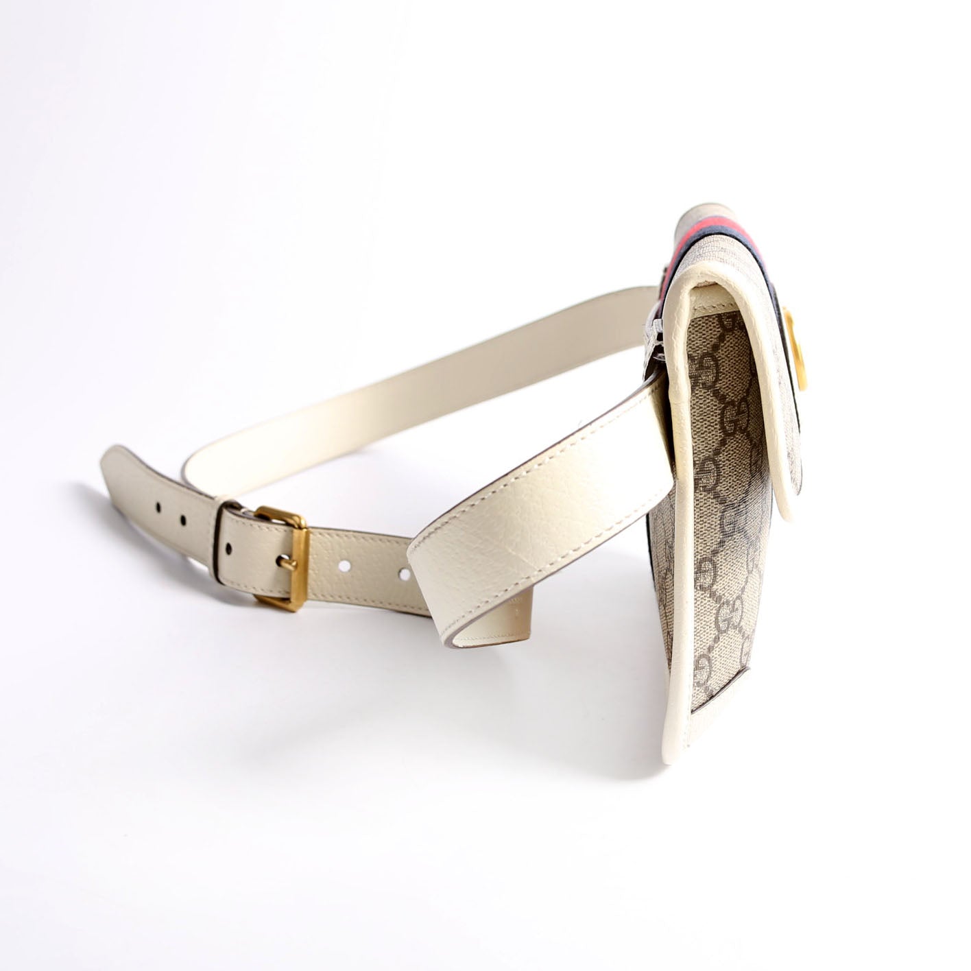 This pre-owned Gucci GG Supreme Ophidia Belt Bag is guaranteed 100% authentic. The exterior is in the classic Gucci GG Supreme coated canvas.