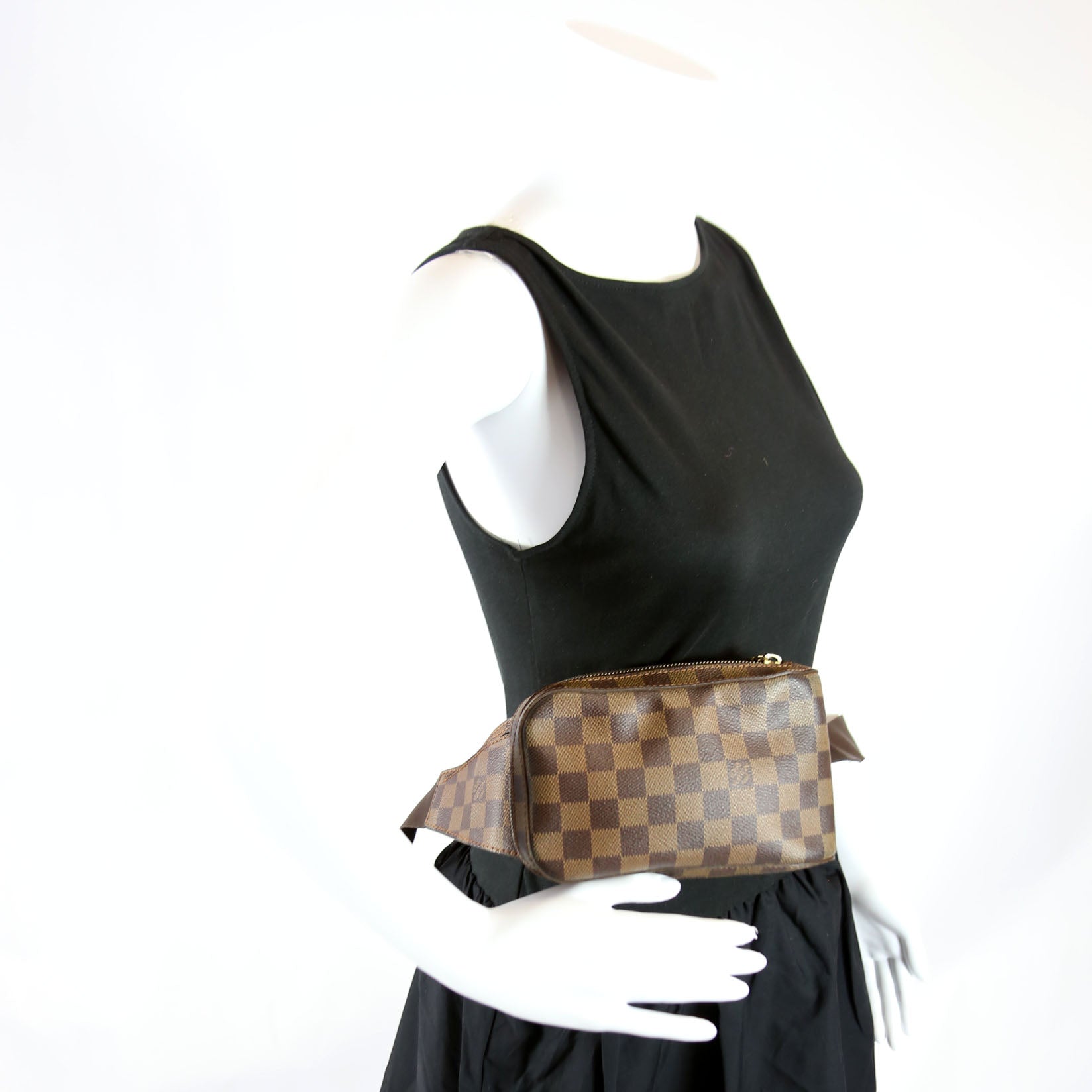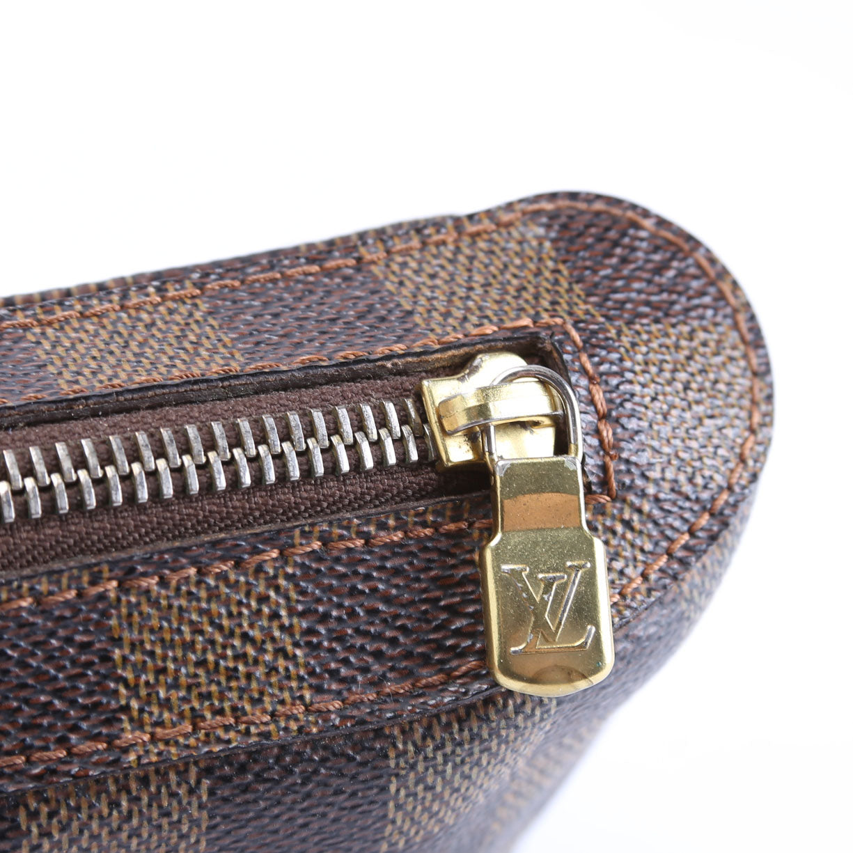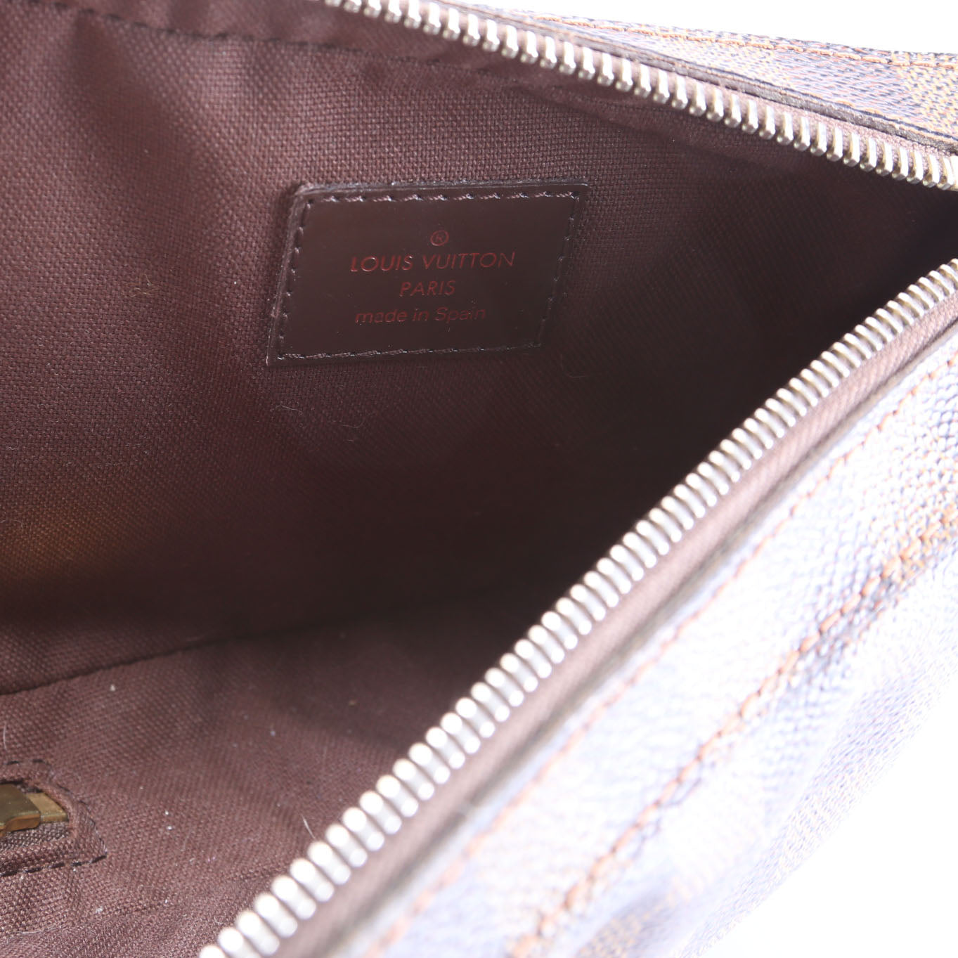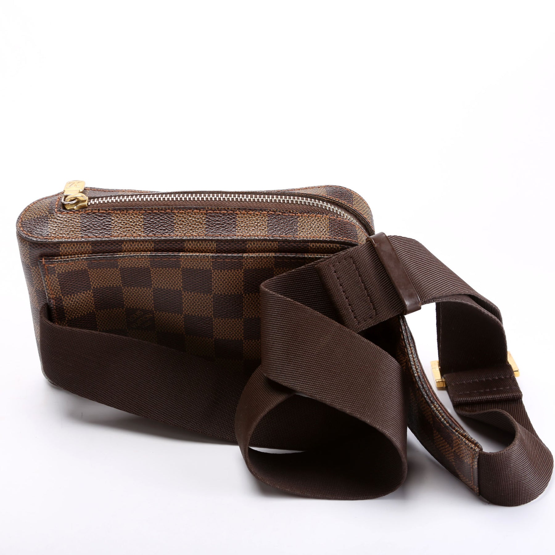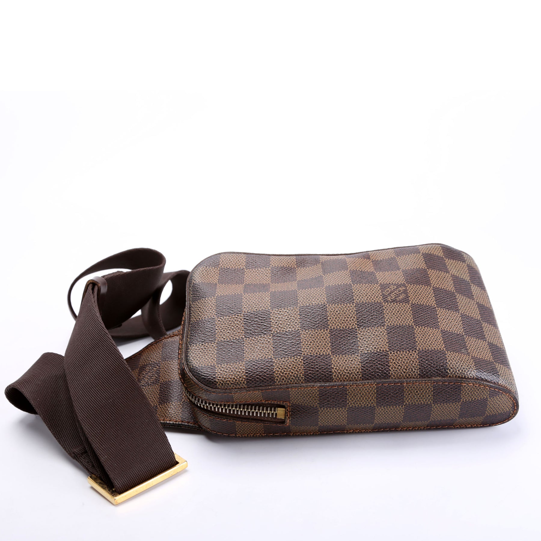 This pre-owned Louis Vuitton Geronimos is guaranteed 100% authentic. The exterior is in the classic Louis Vuitton Damier Ebene coated canvas.