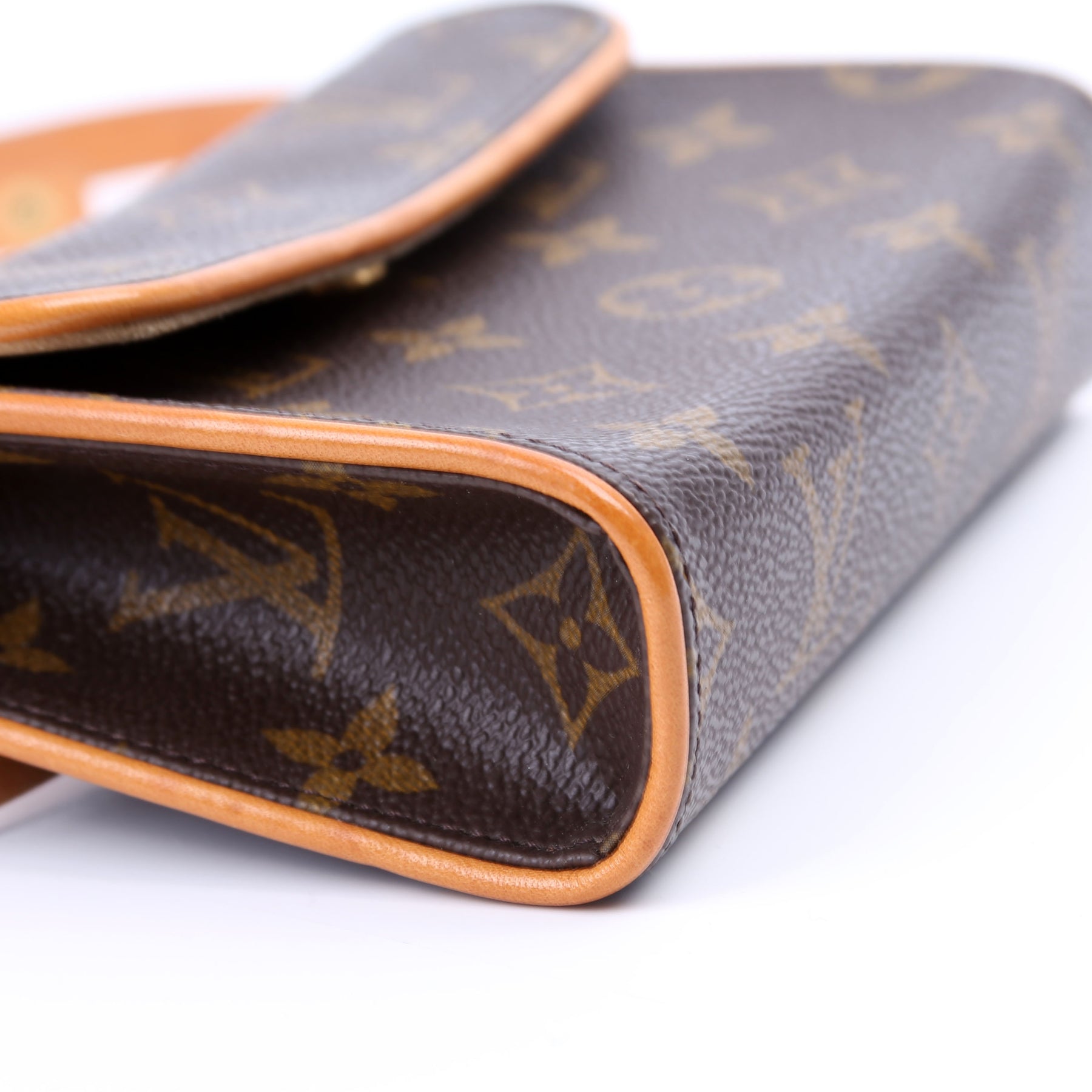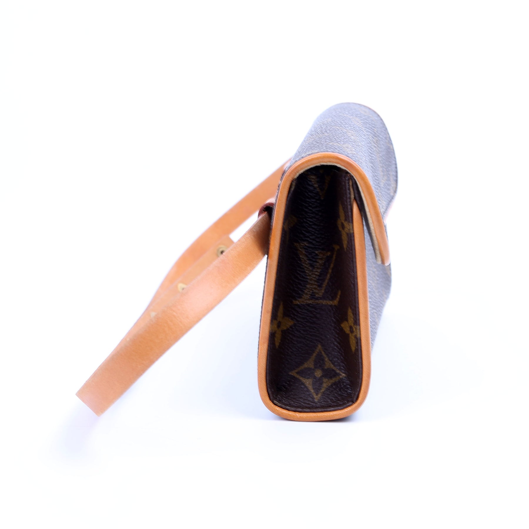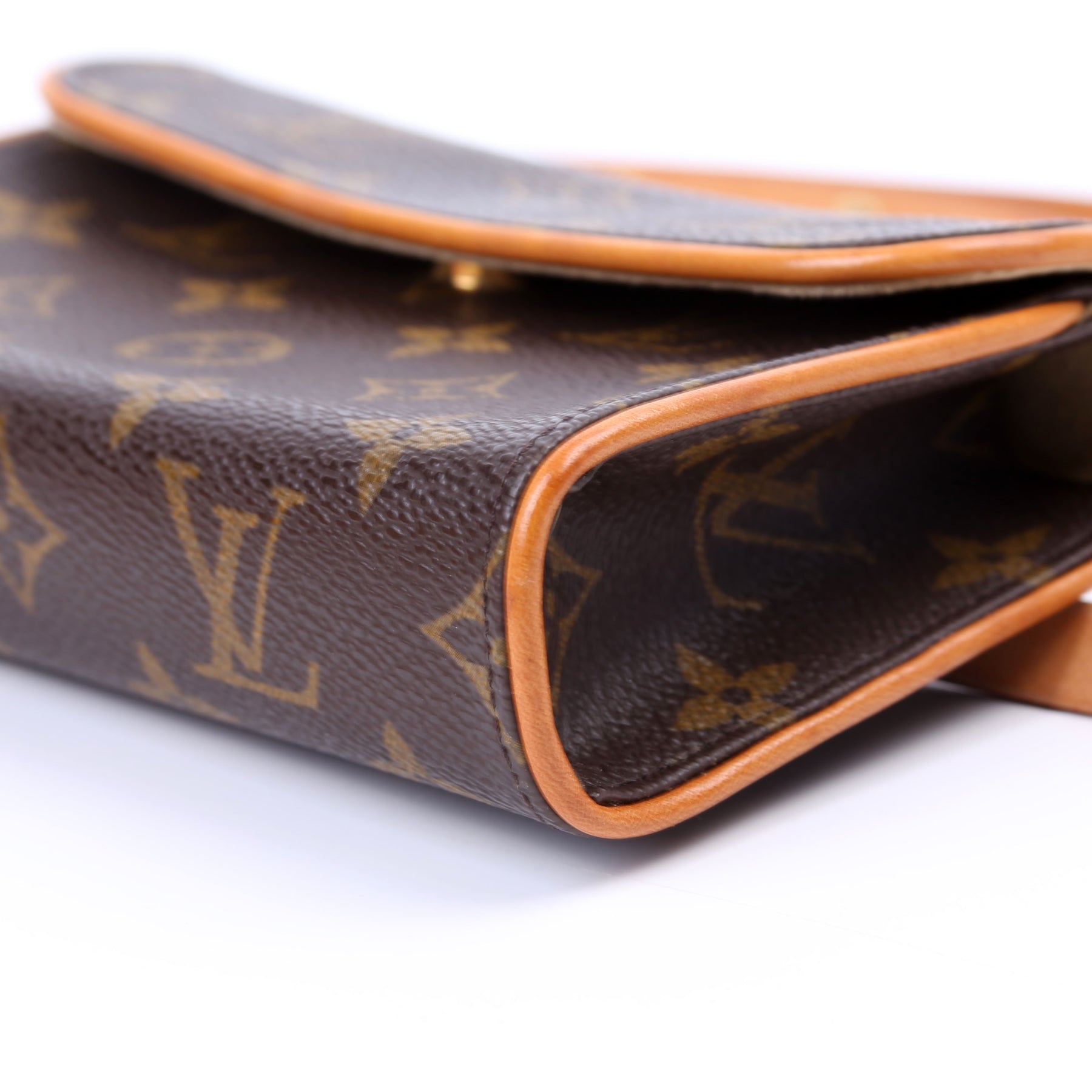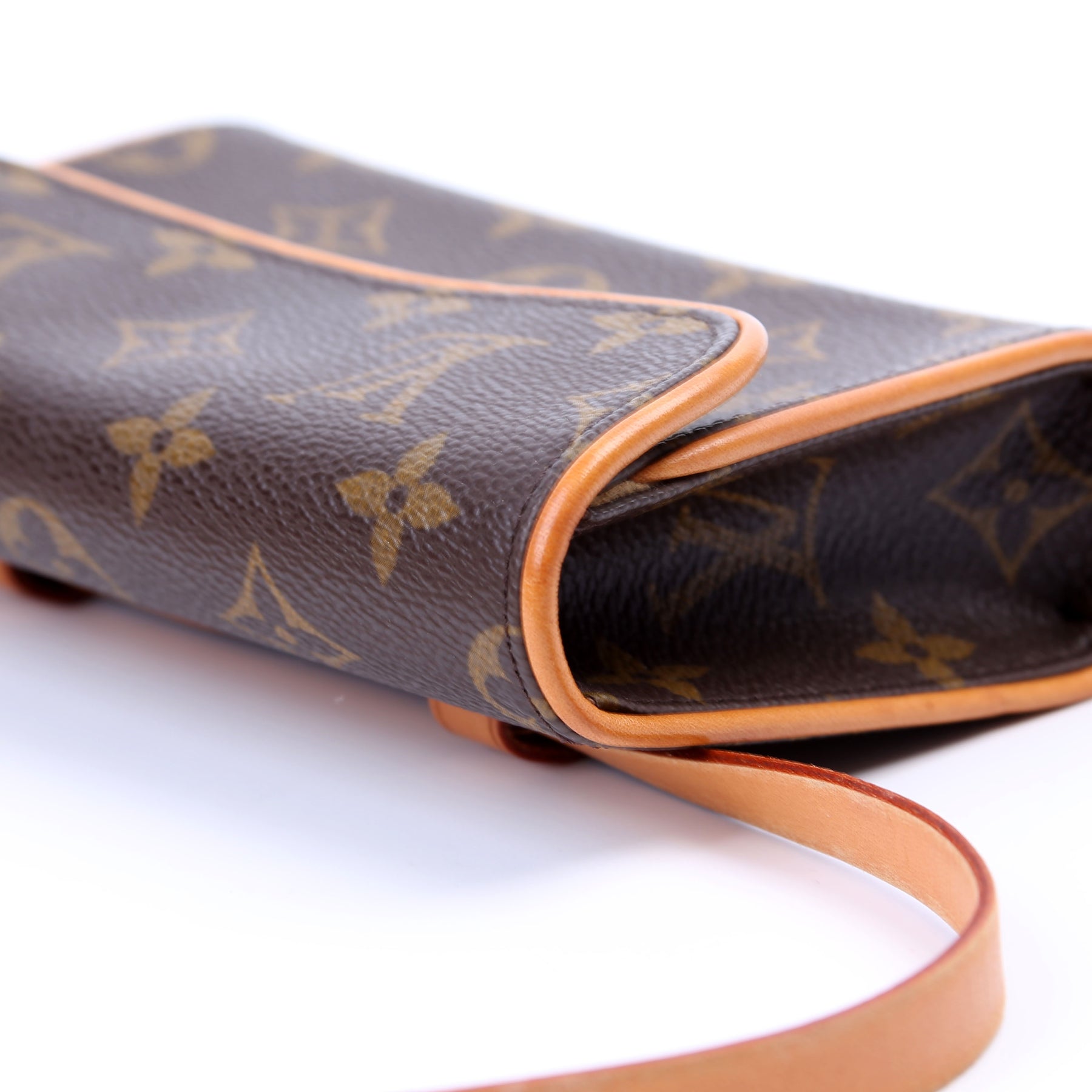 This pre-owned Pochette Florentine is guaranteed 100% authentic. The exterior is in the classic Louis Vuitton Monogram coated canvas.
