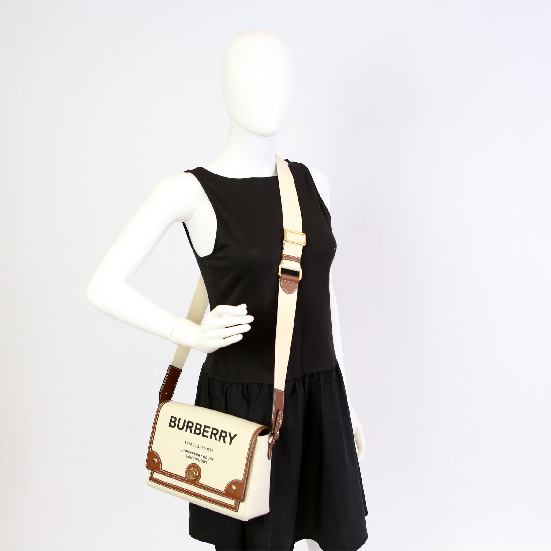 Horseferry Canvas Note Medium Crossbody White/Brown