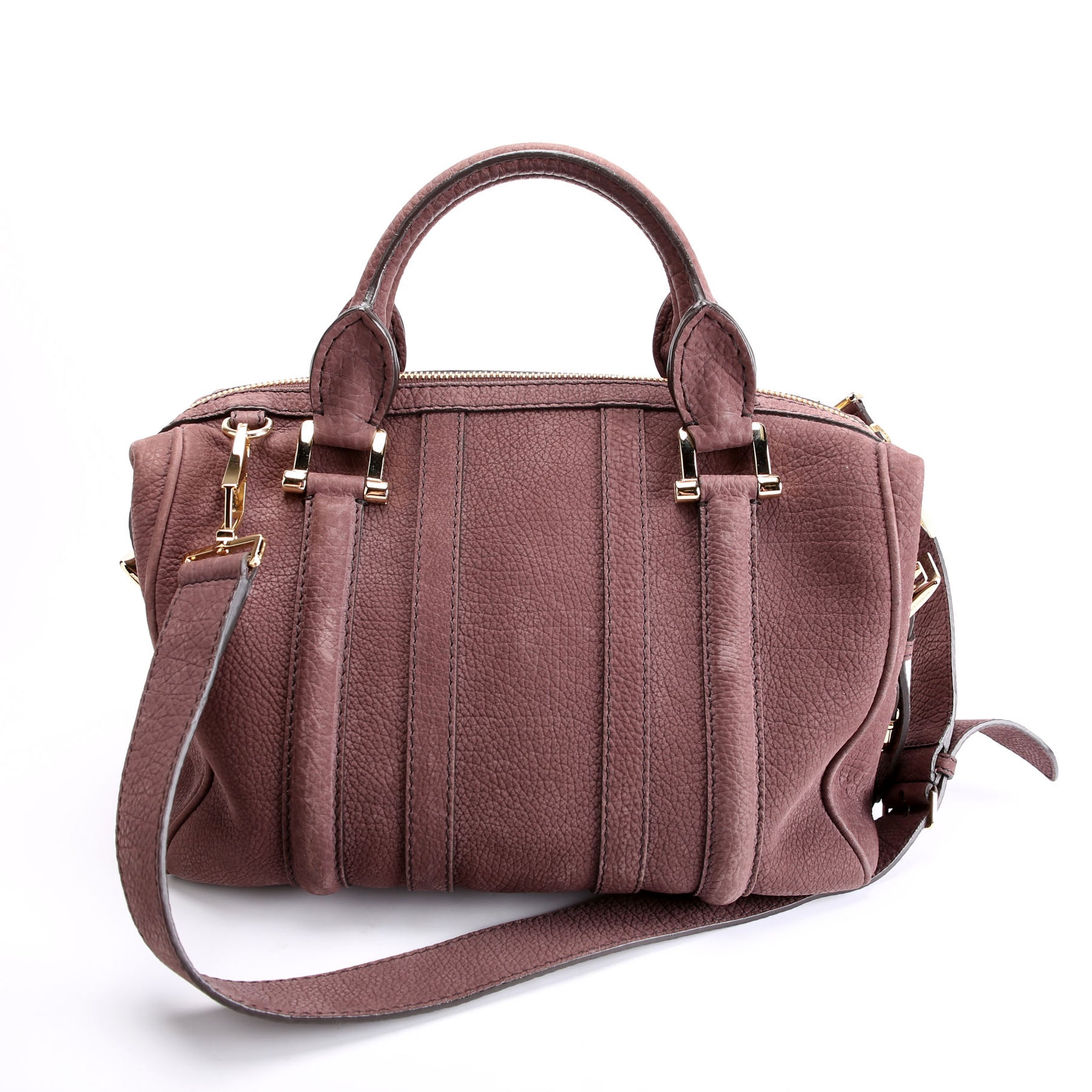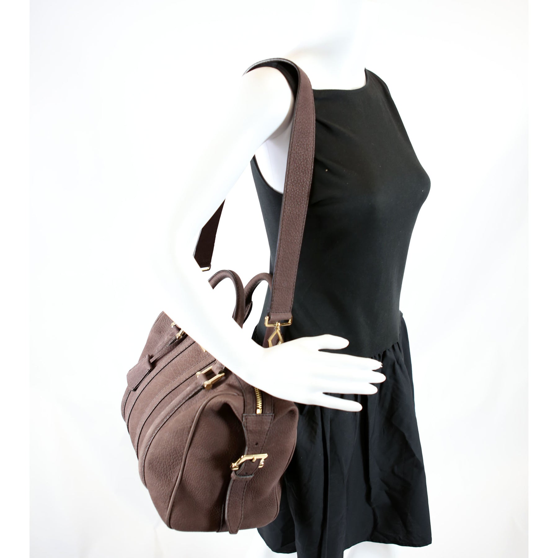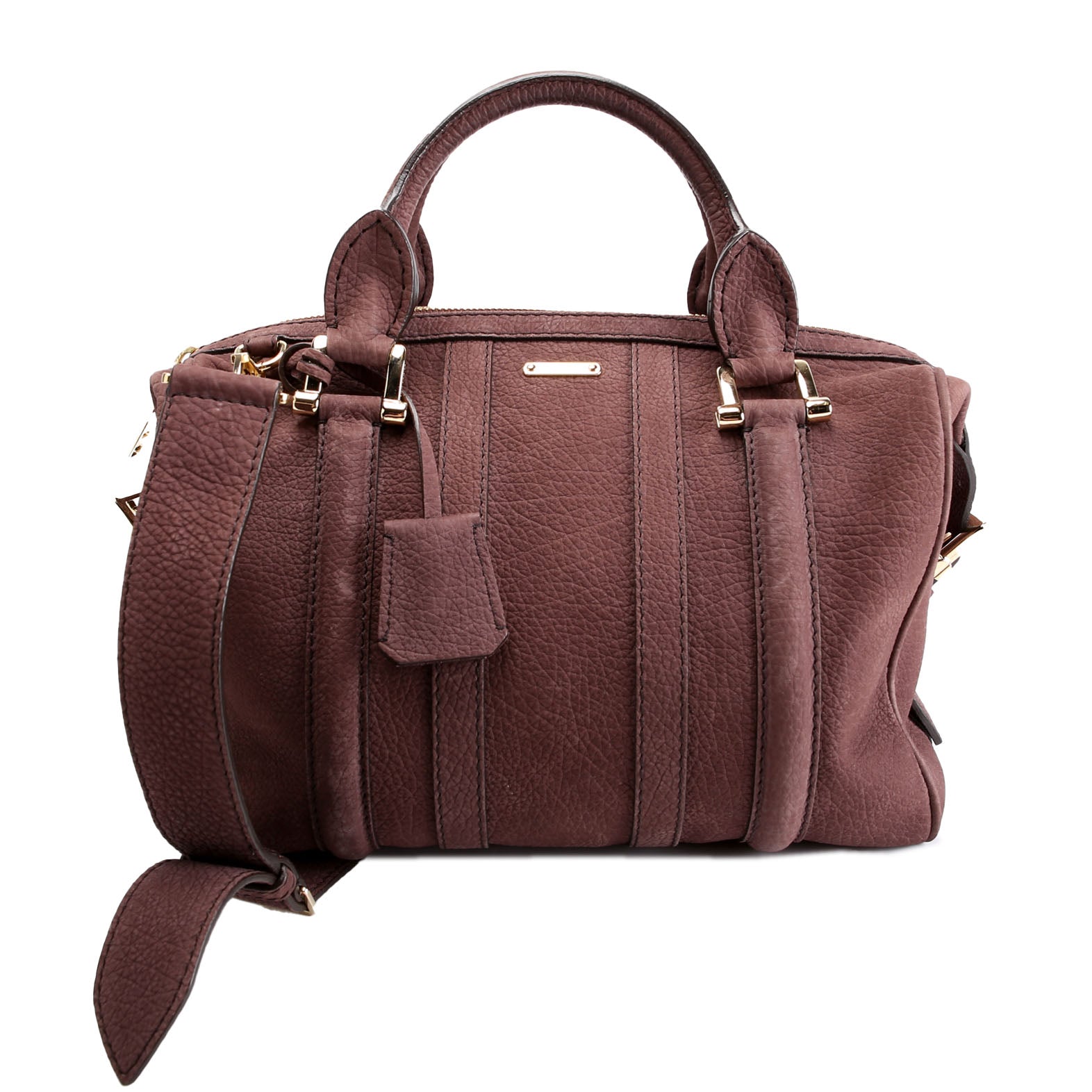 This pre-owned Burberry Pebbled Suede Boston Bag is guaranteed 100% authentic.