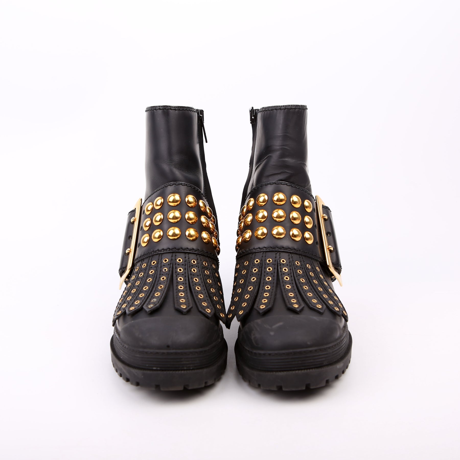 These pre-owned Burberry Whitchester Studded Fringe Boots are guaranteed 100% authentic.
