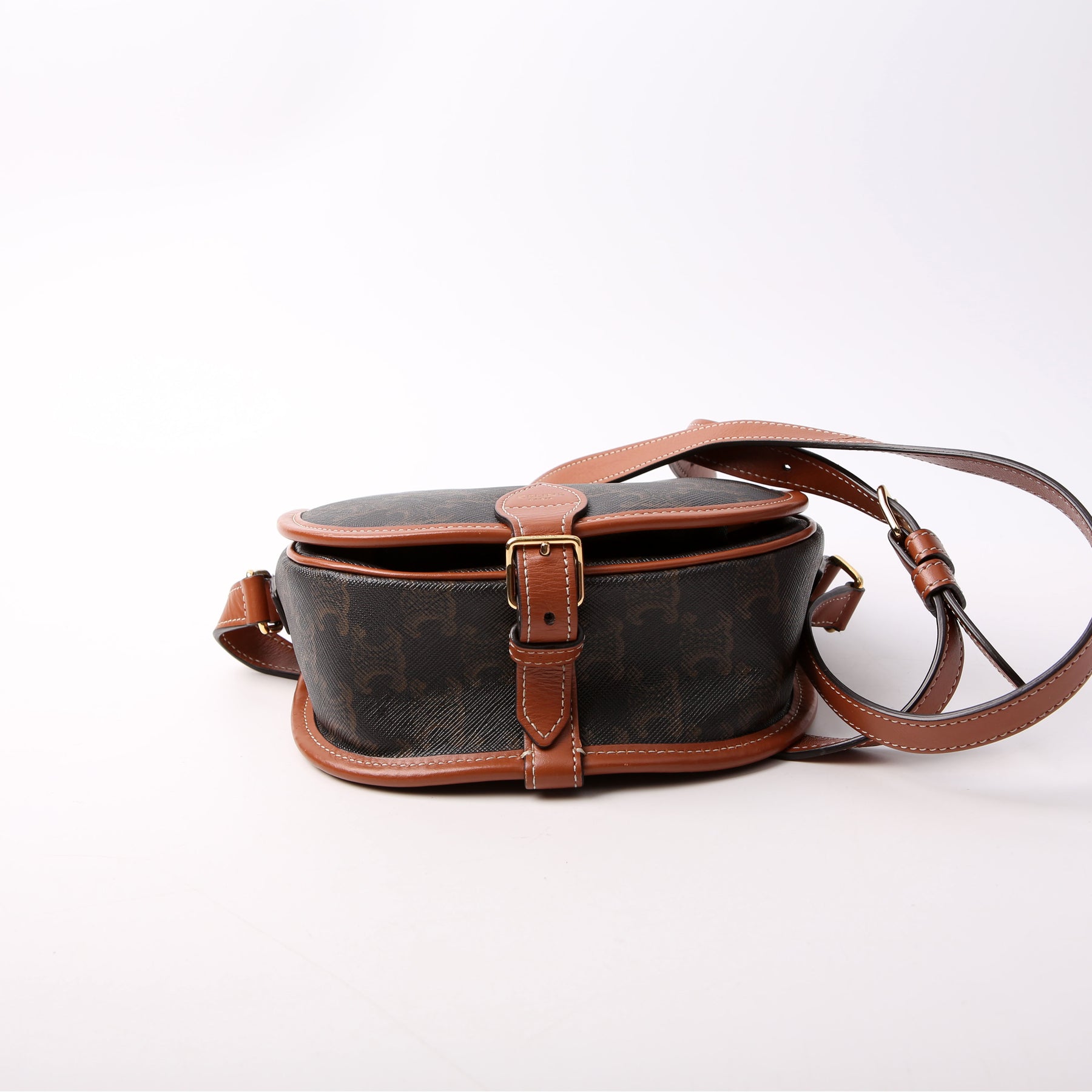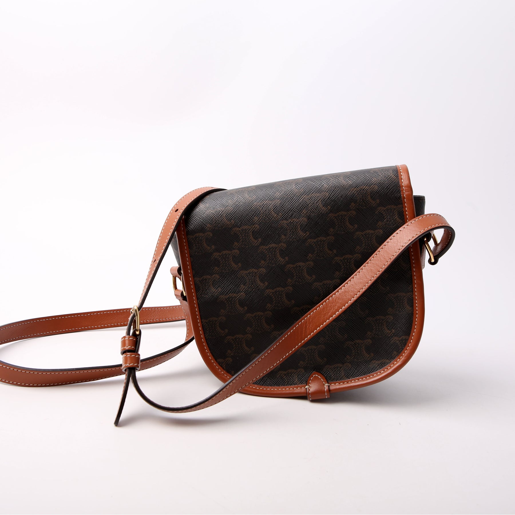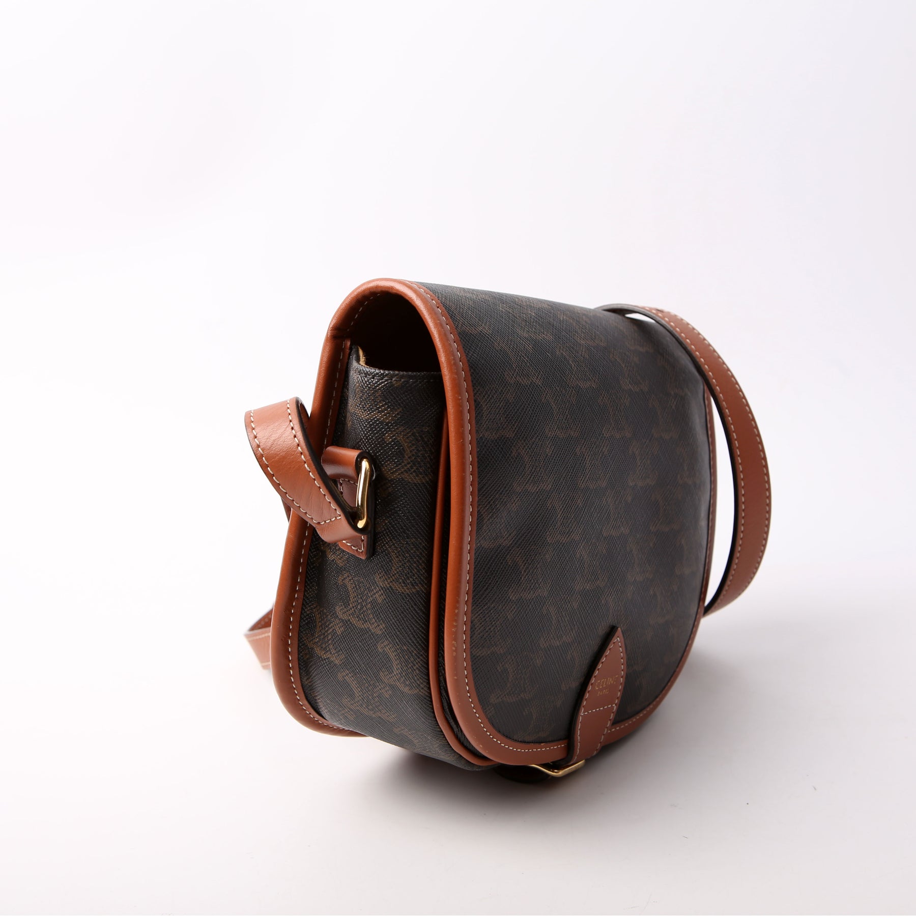 This pre-owned Celine Folco Triomphe Medium Canvas/Calfskin is guaranteed 100% authentic.