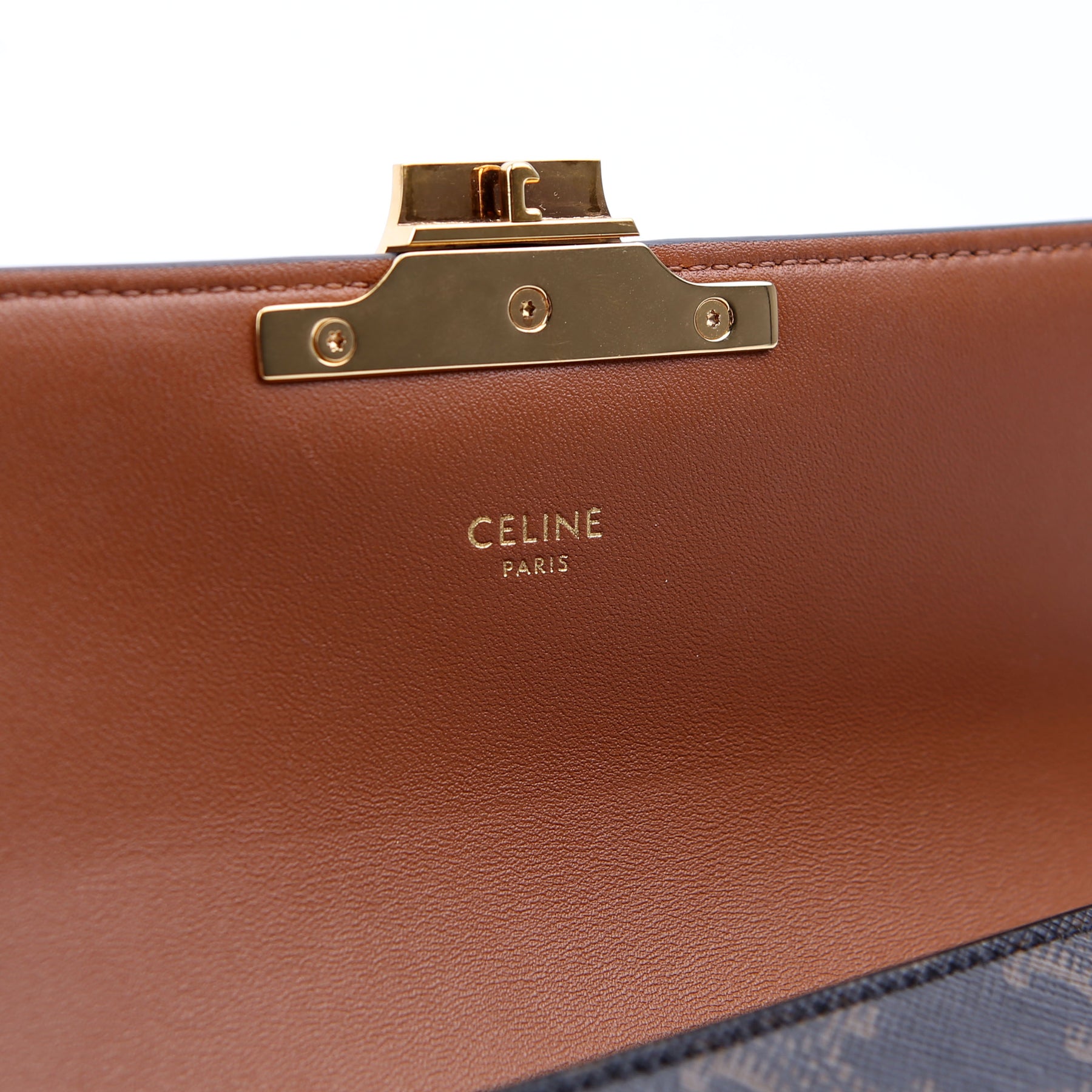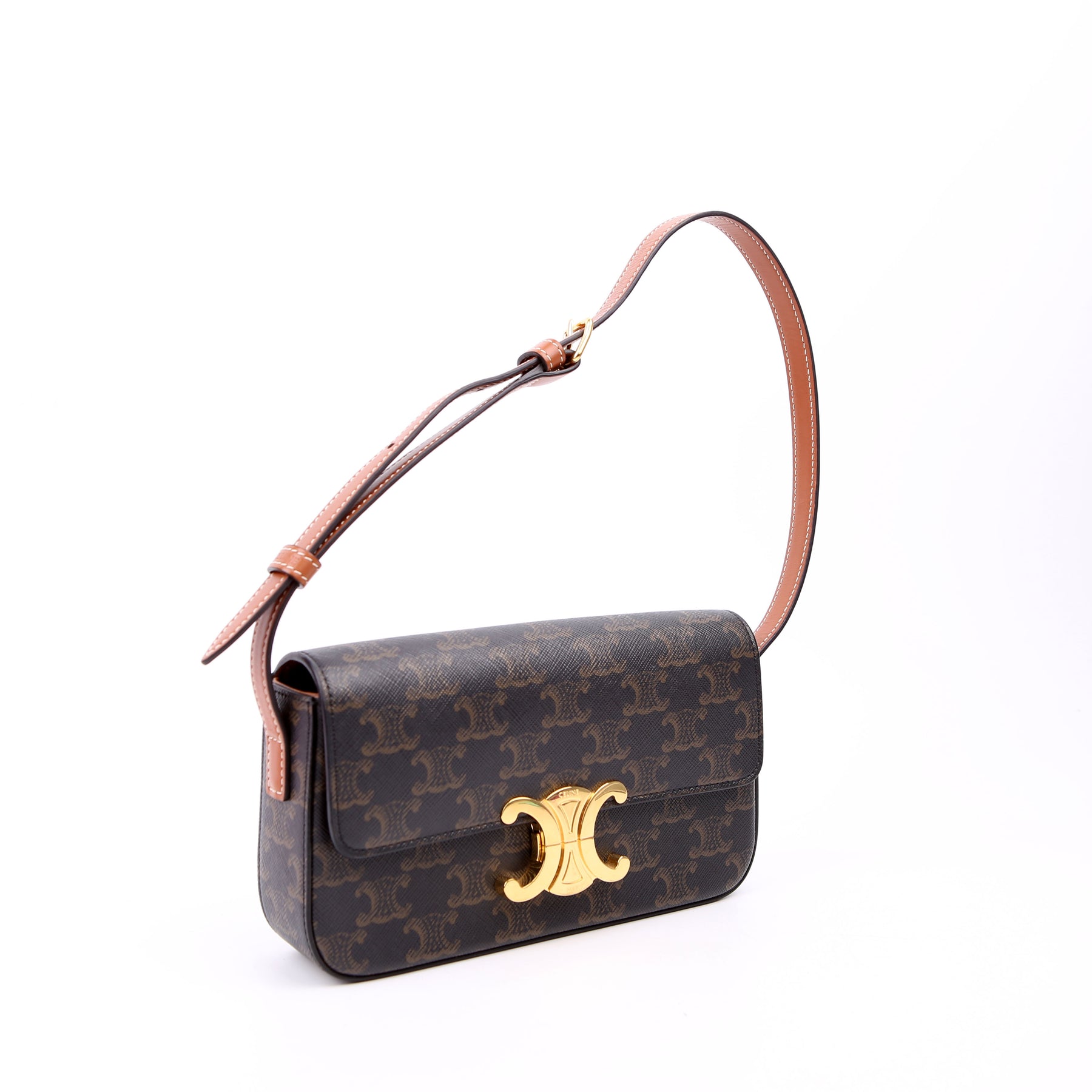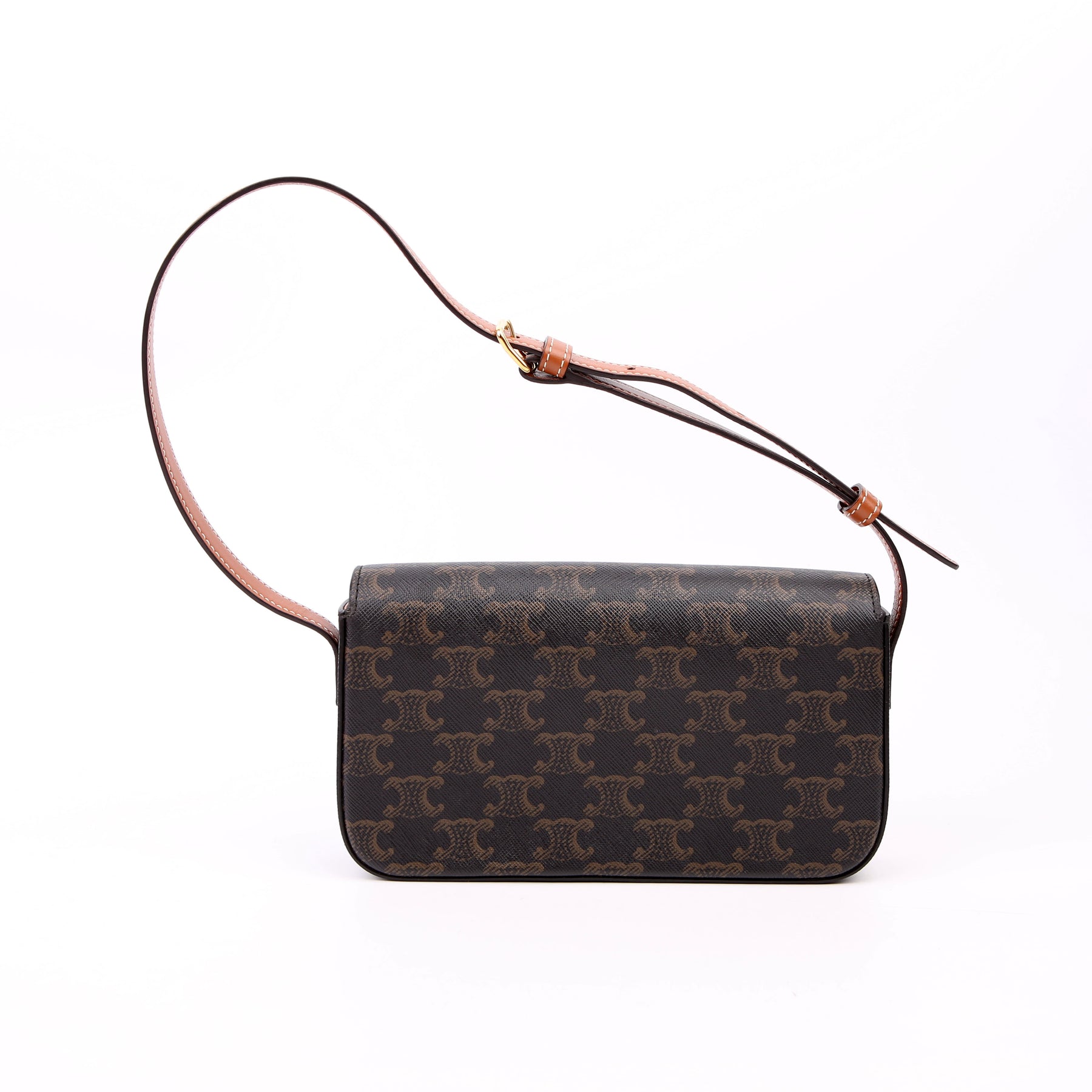 This pre-owned Celine Triomphe Canvas Flap Shoulder Bag is guaranteed 100% authentic.
