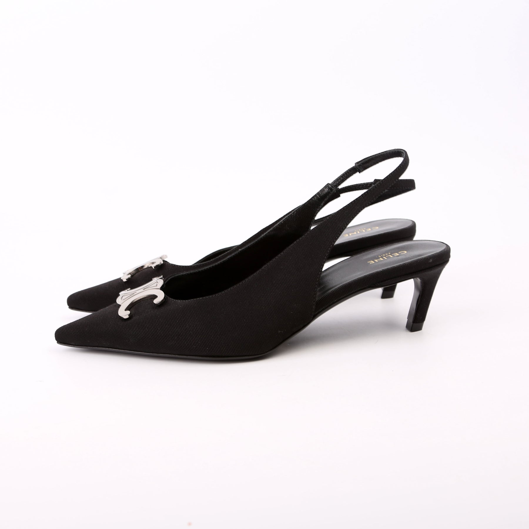 These pre-owned Celine Triomphe Slingback Kitten Heels are guaranteed 100% authentic.