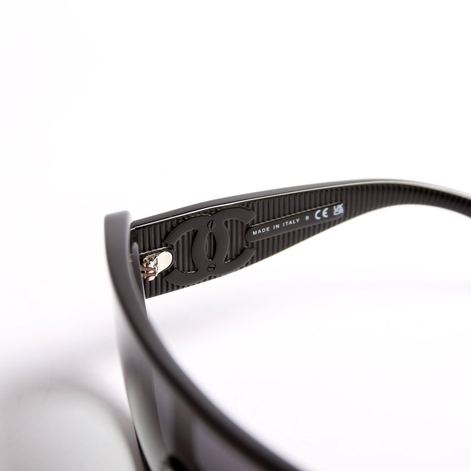 These pre-owned Chanel Shield Acetate Sunglasses are guaranteed 100% authentic.