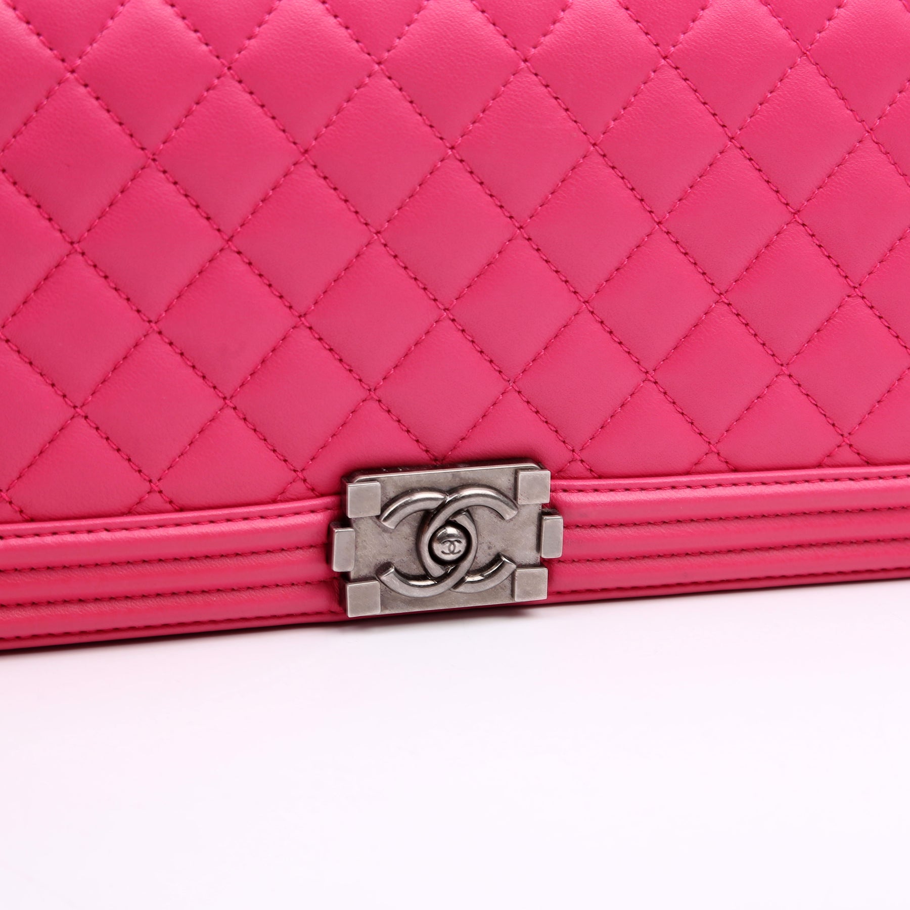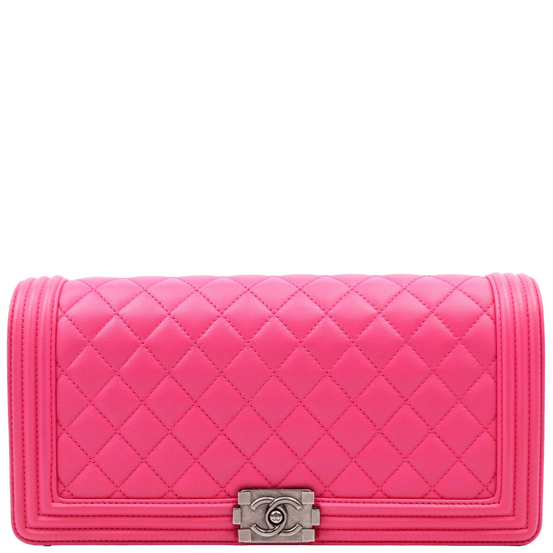 This pre-owned Chanel Boy Flap Clutch is guaranteed 100% authentic.