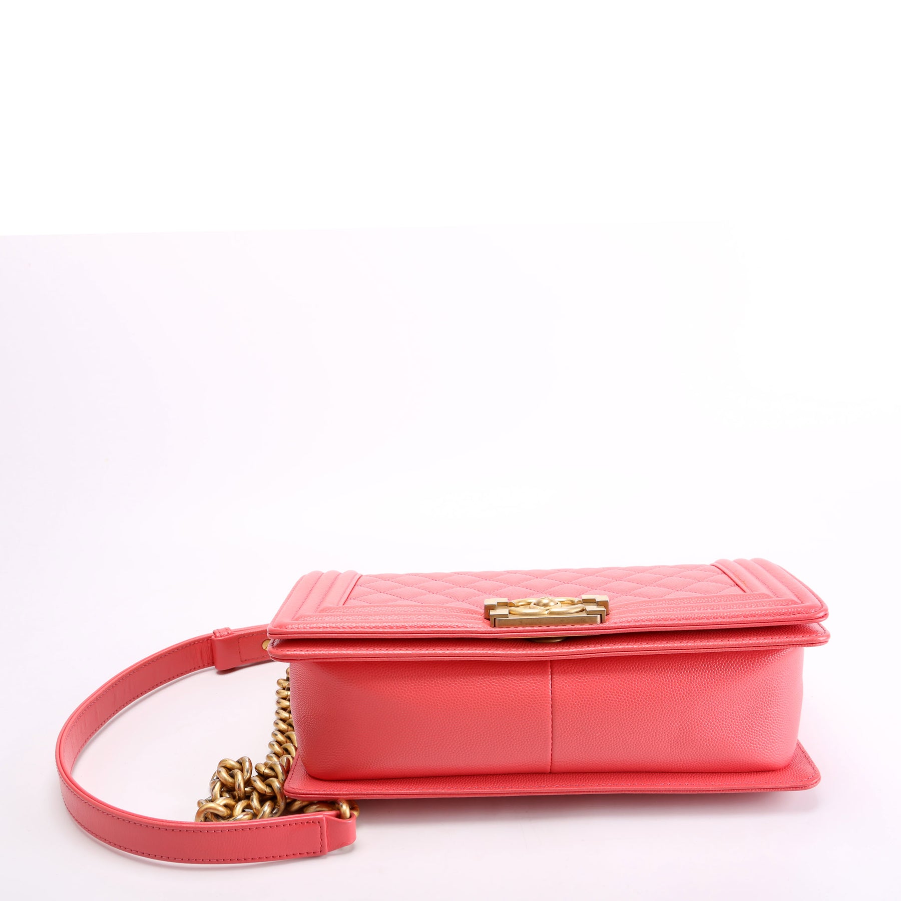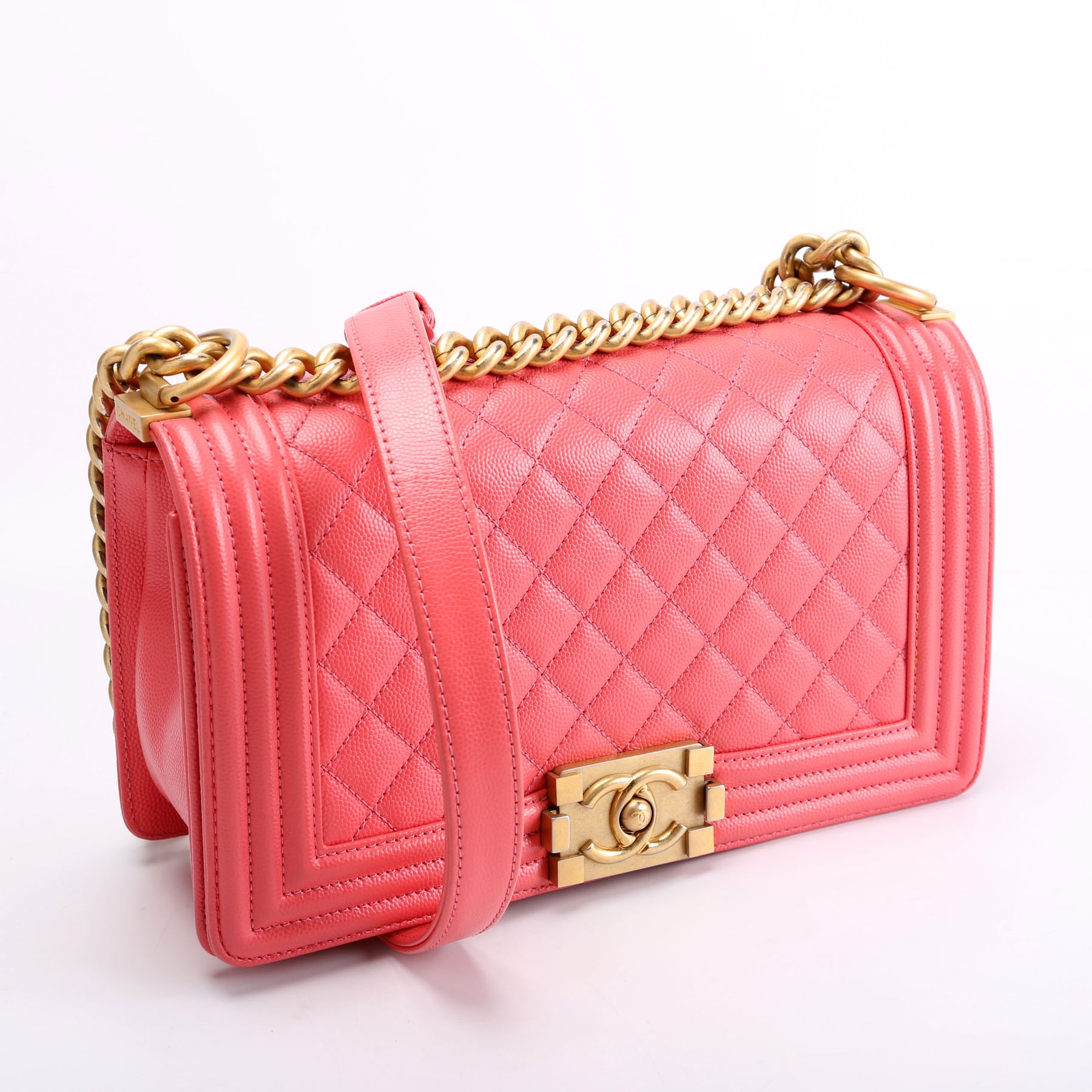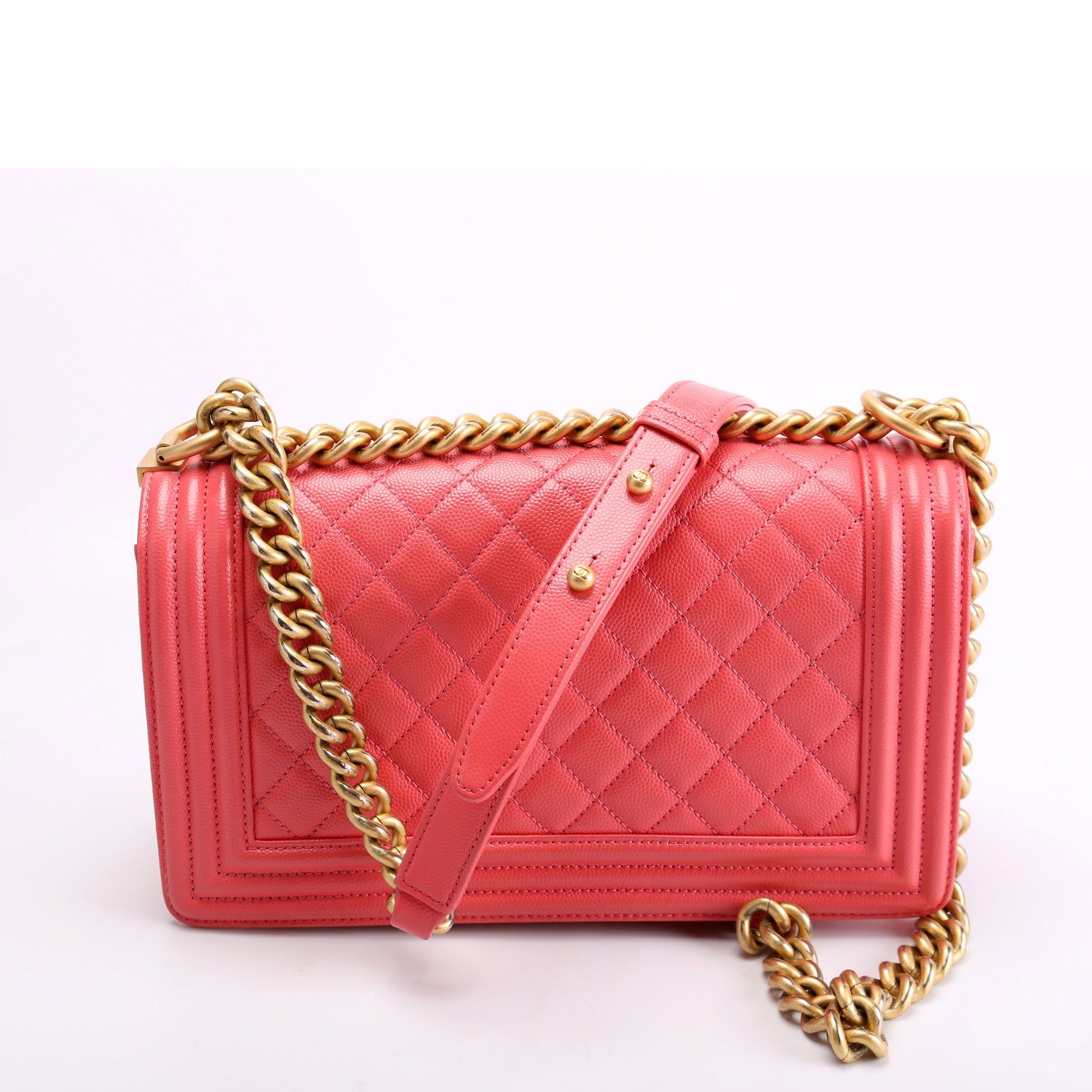 This pre-owned Chanel Boy Flap Medium Old Caviar 25M is guaranteed 100% authentic. The exterior is in the classic Chanel Caviar leather.