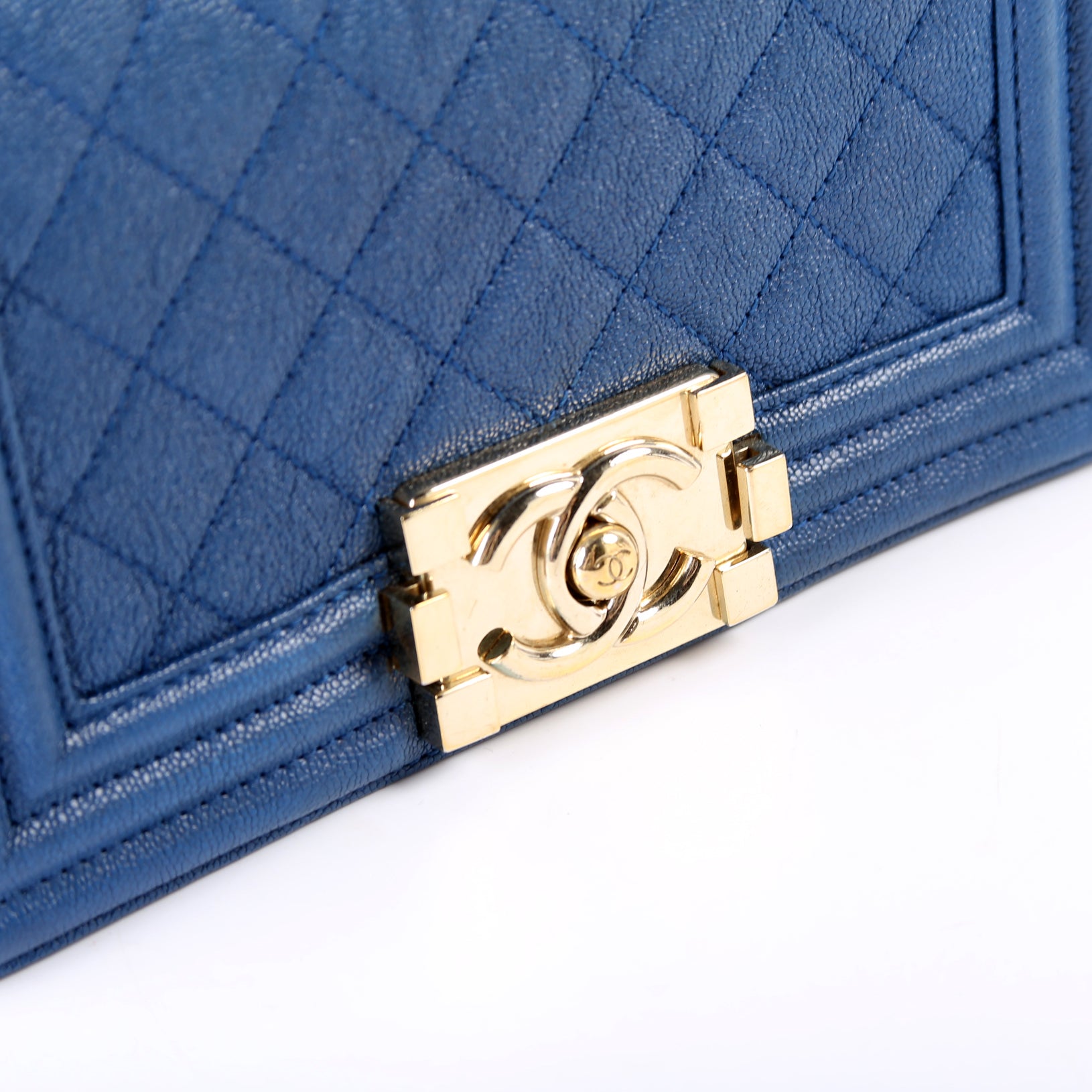 This pre-owned Chanel Boy Flap Small is guaranteed 100% authentic. The exterior is in the classic Chanel Caviar leather.