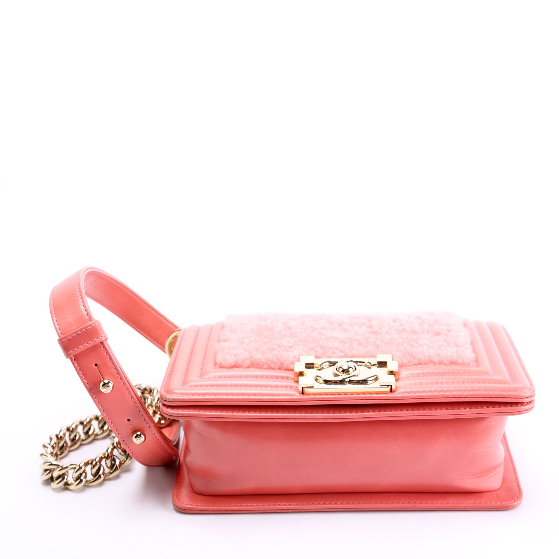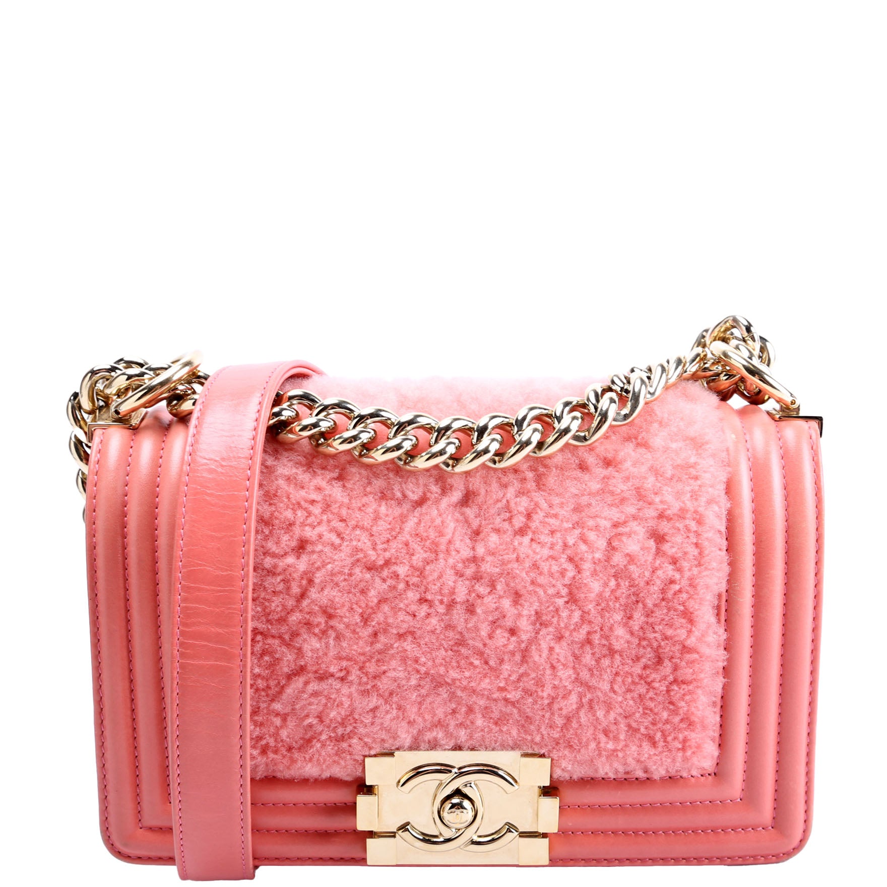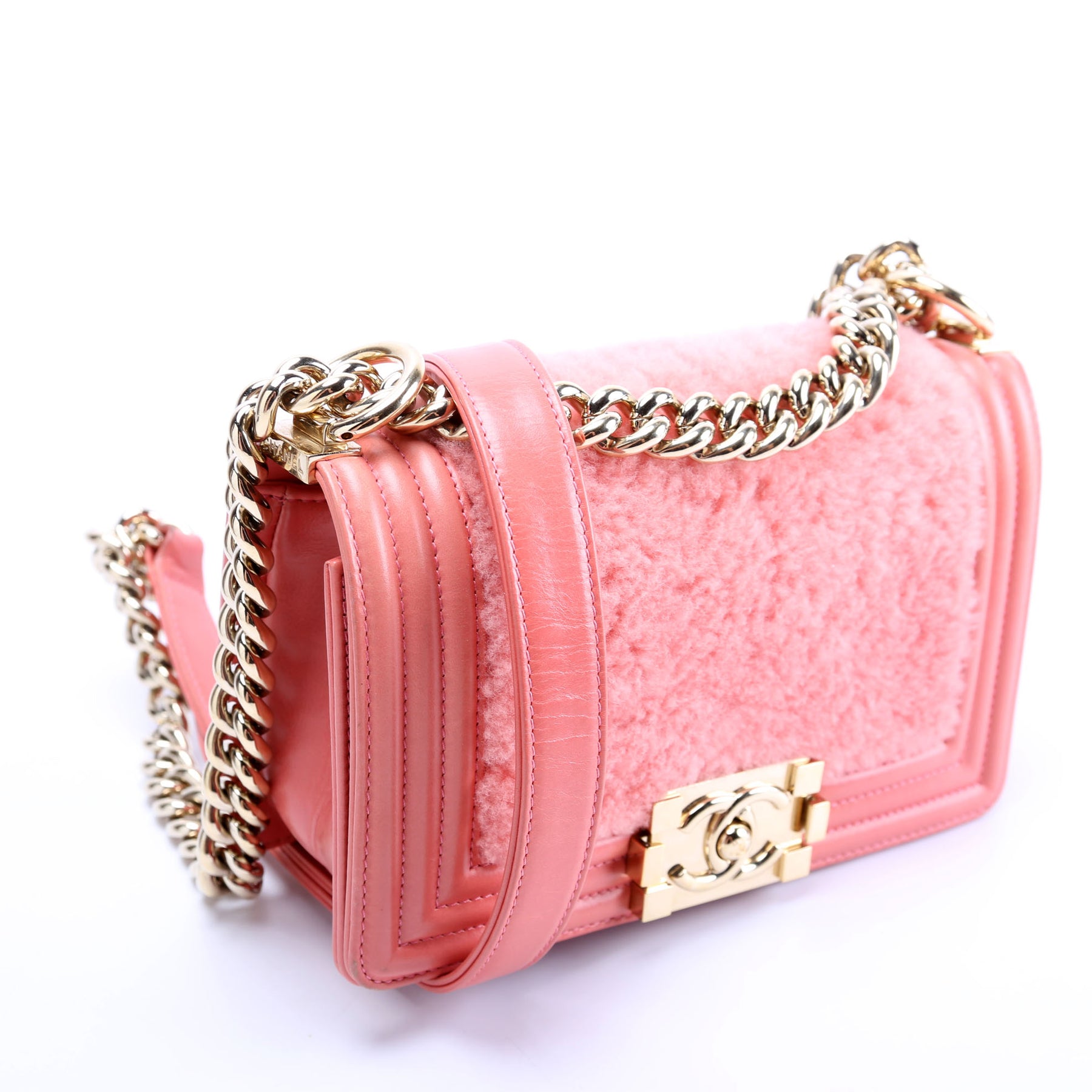 This pre-owned Chanel Small Boy Flap Shearling 23M is guaranteed 100% authentic.