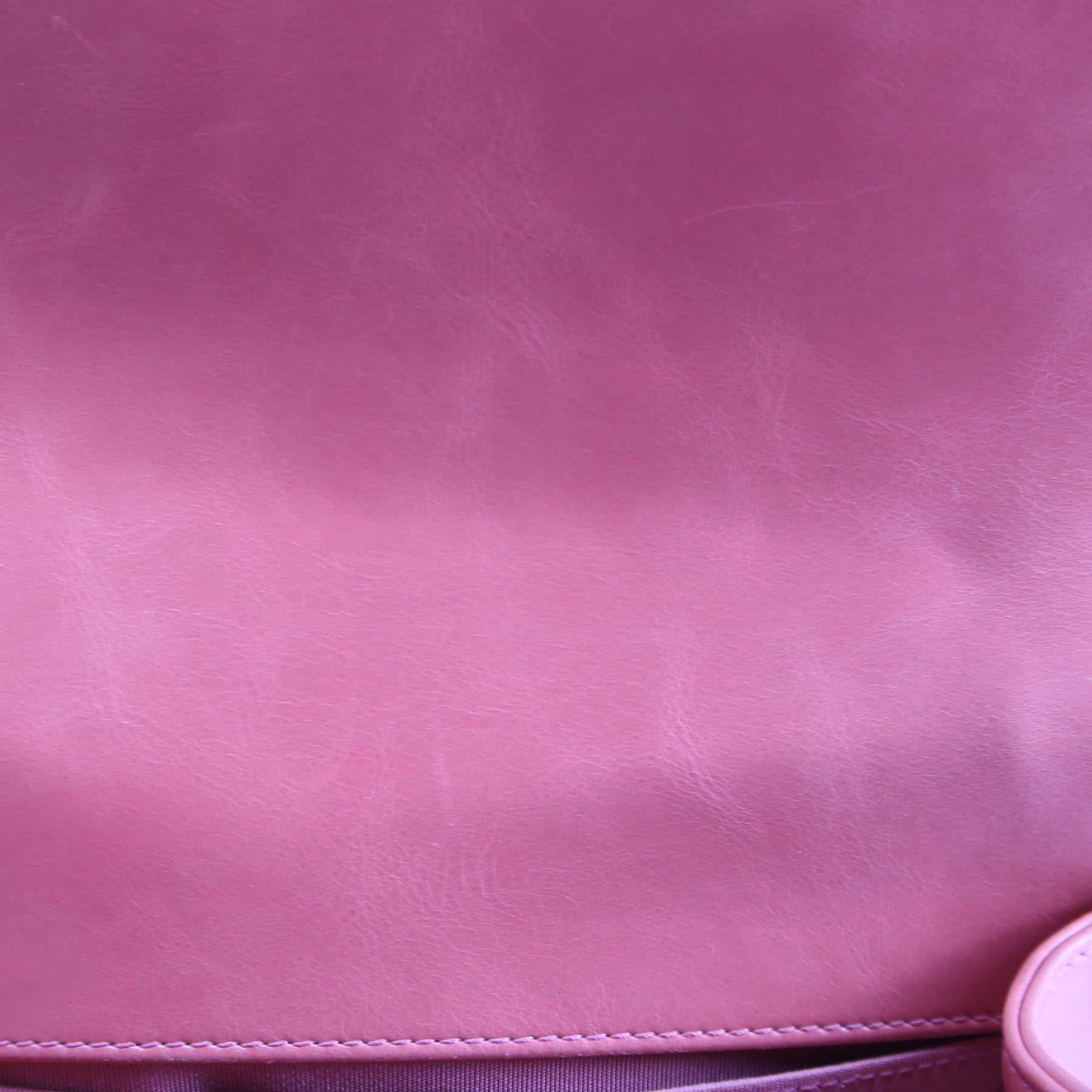 Interior: The interior flap and leather has scratching and marks. The interior features one open pocket.