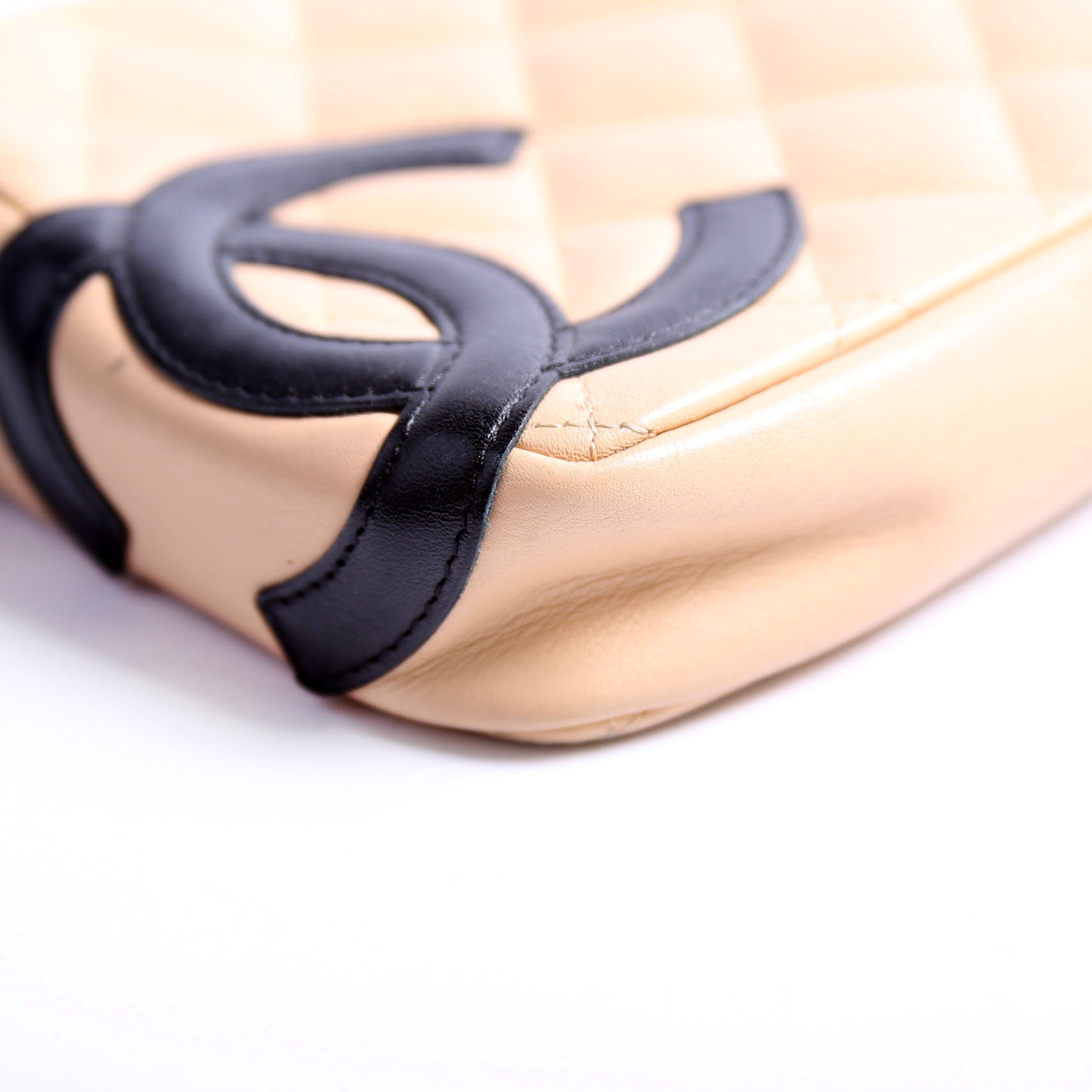 This pre-owned Chanel Cambon Linge Pochette is guaranteed 100% authentic.