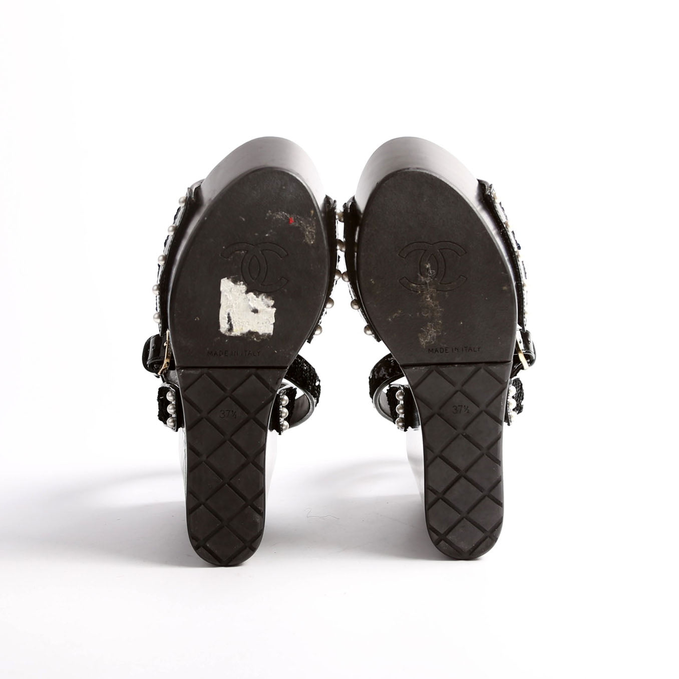 These pre-owned Chanel Flower Hinged Wedges are guaranteed 100% authentic.