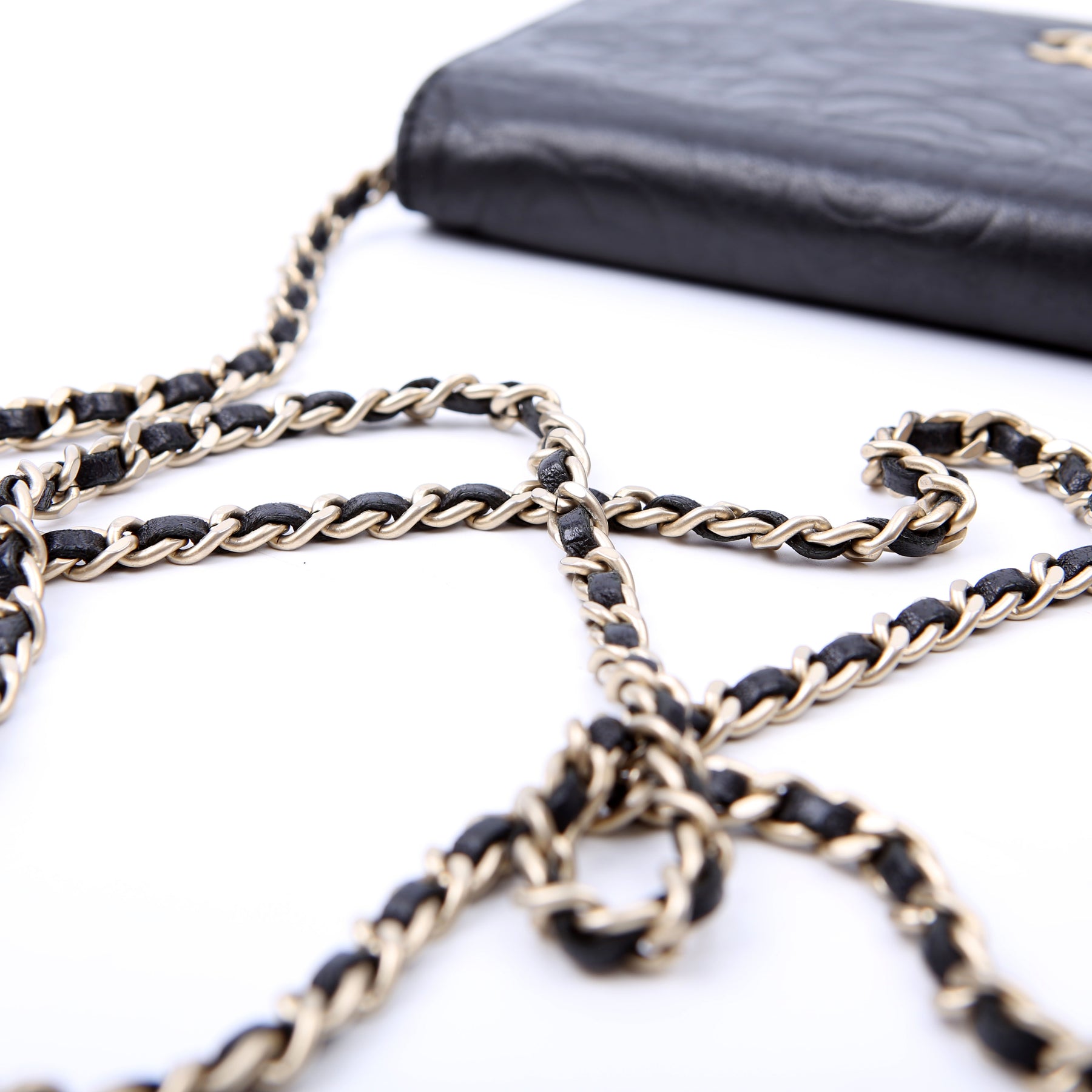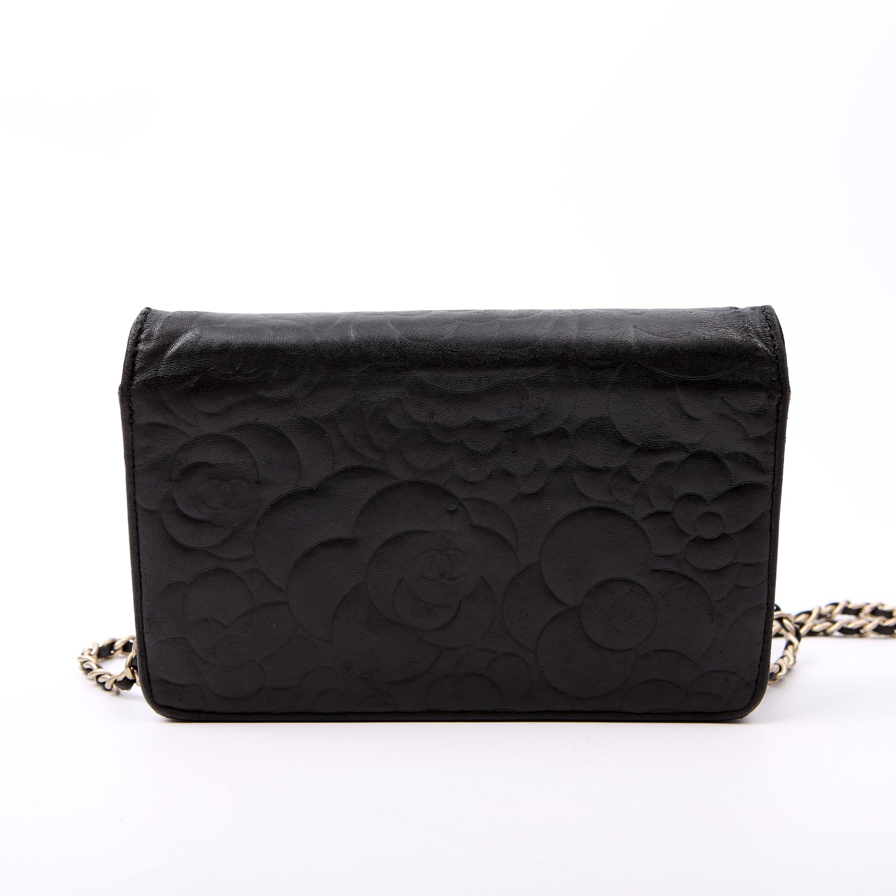 This pre-owned Chanel Camellia Embossed WOC is guaranteed 100% authentic.