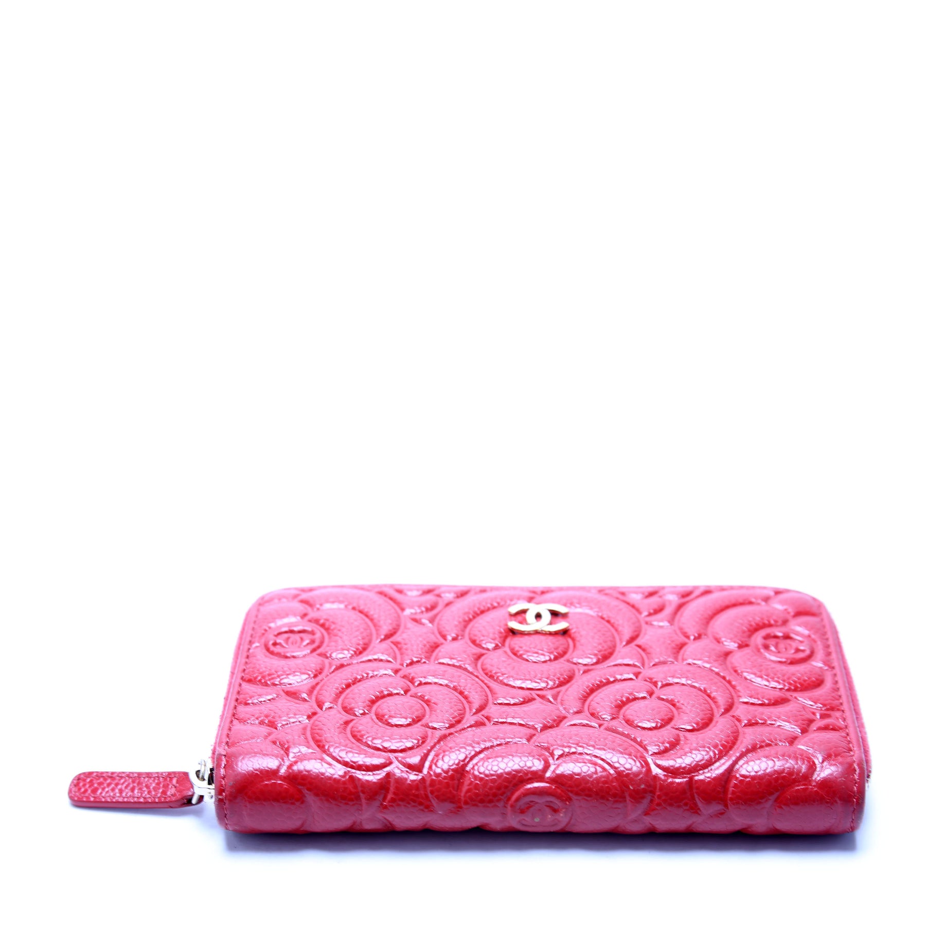 This pre-owned Chanel Camellia Zip Around Wallet is guaranteed 100% authentic. The exterior is in the classic Chanel Camellia Flower Lambskin leather.