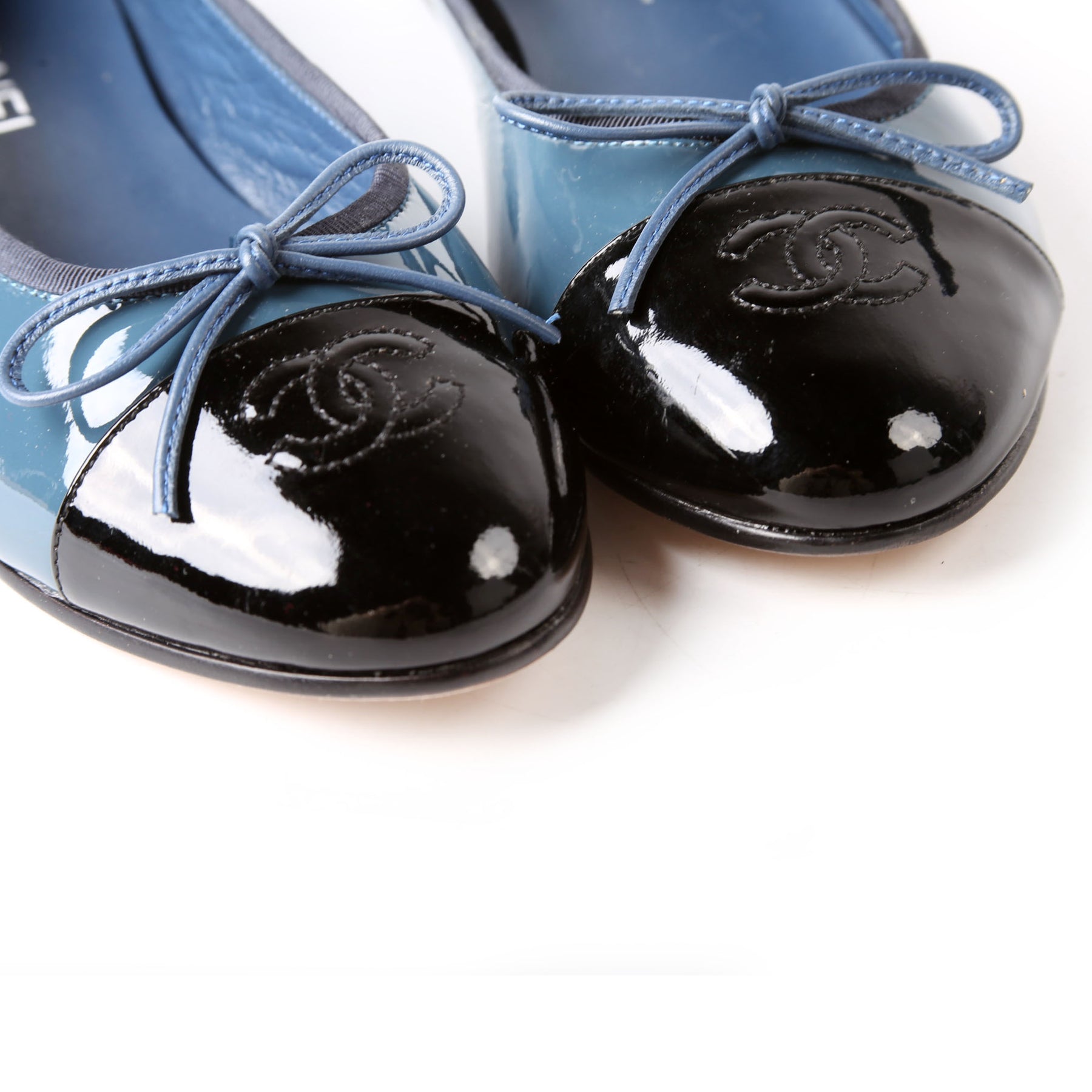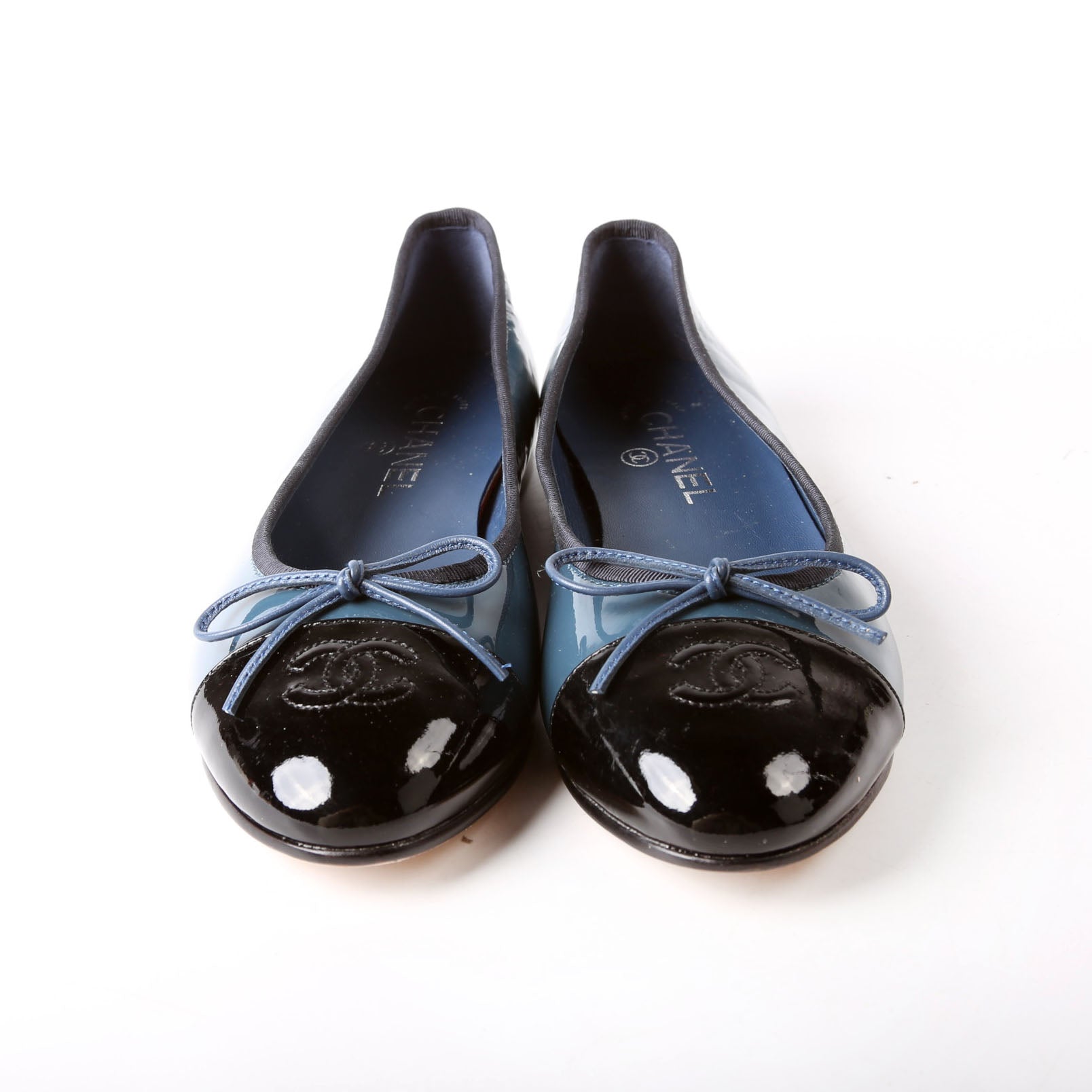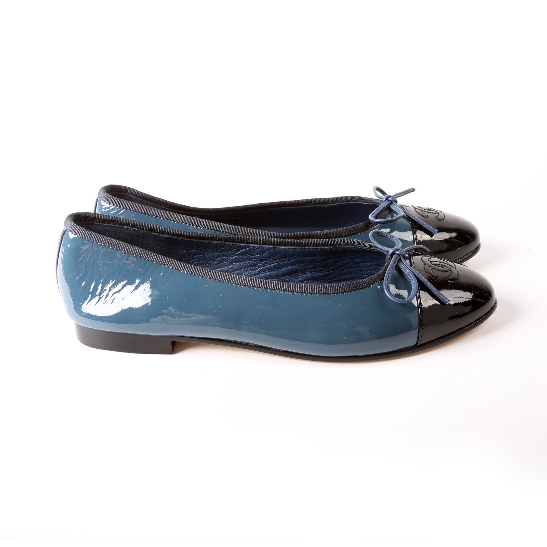 These pre-owned Chanel Cap Toe Ballet Flats are guaranteed 100% authentic.