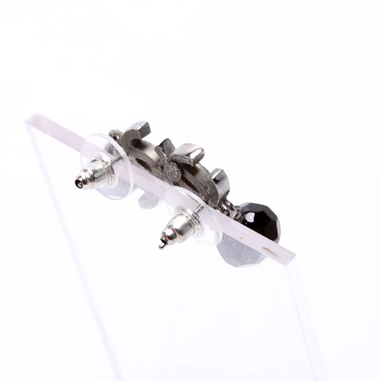 CC Bead Ruthenium Drop Earrings Silver/Black