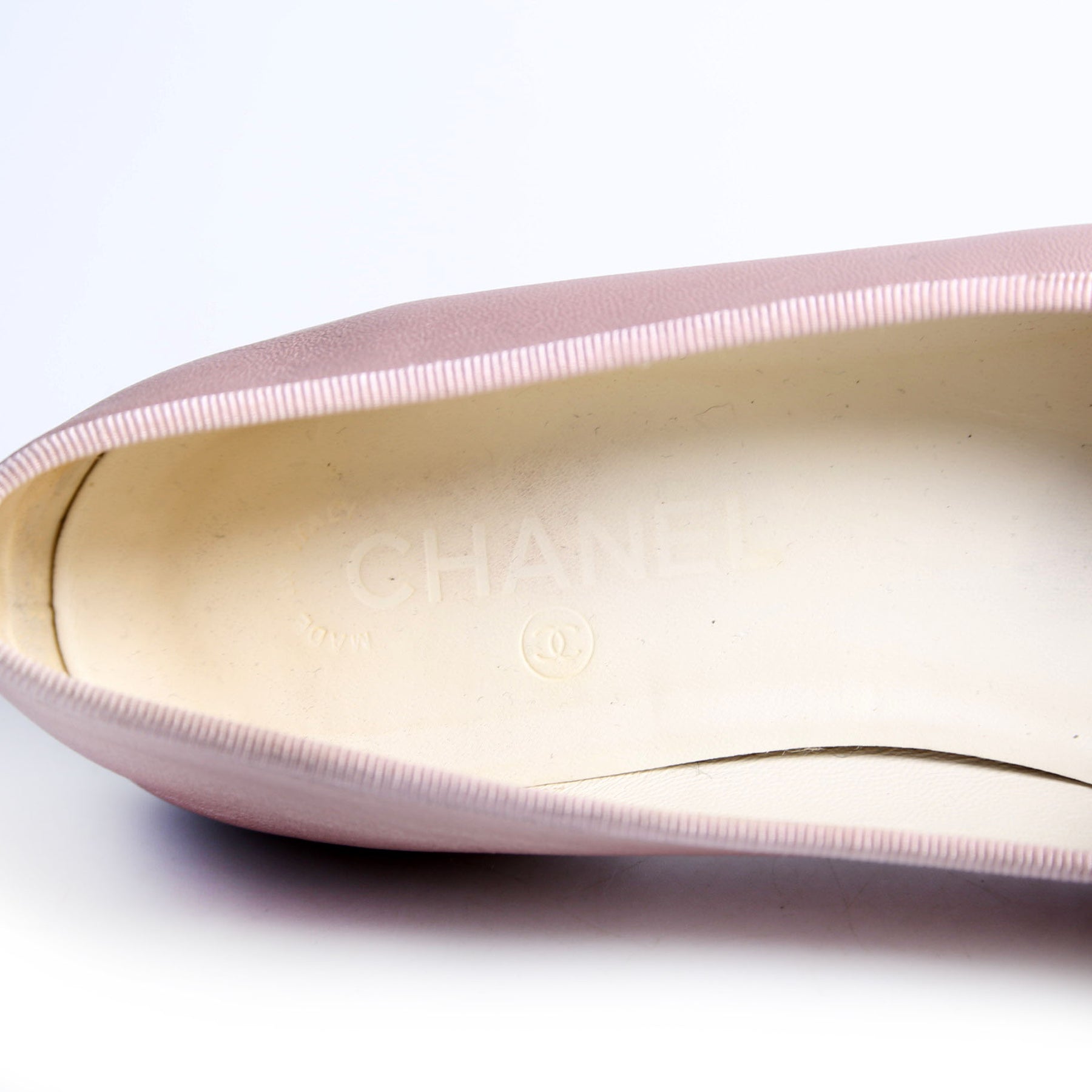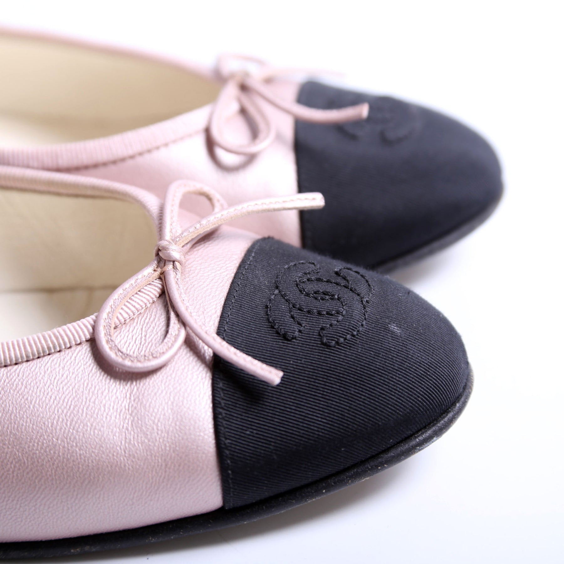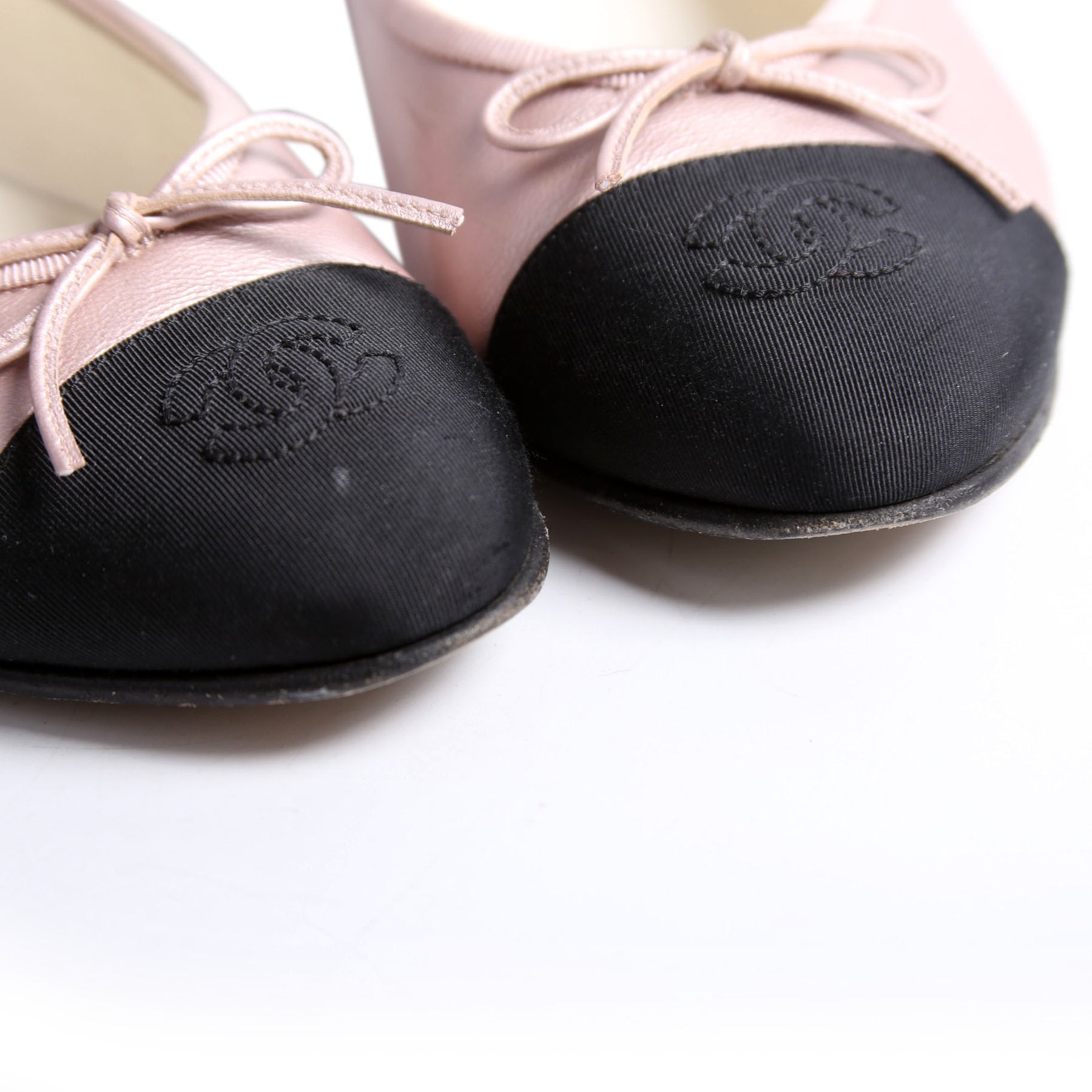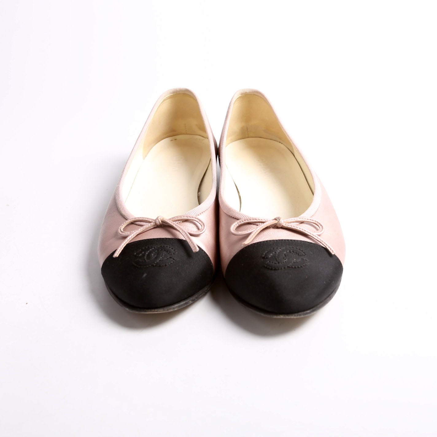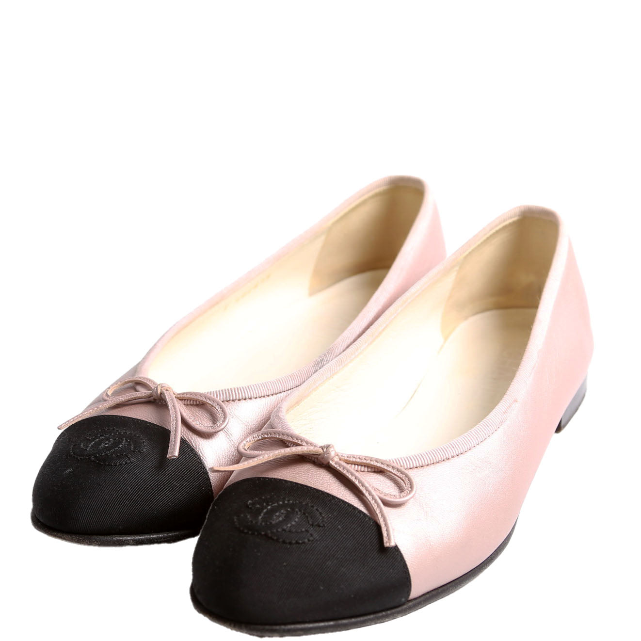 These pre-owned Chanel CC Cap Toe Ballet Flats are guaranteed 100% authentic.
