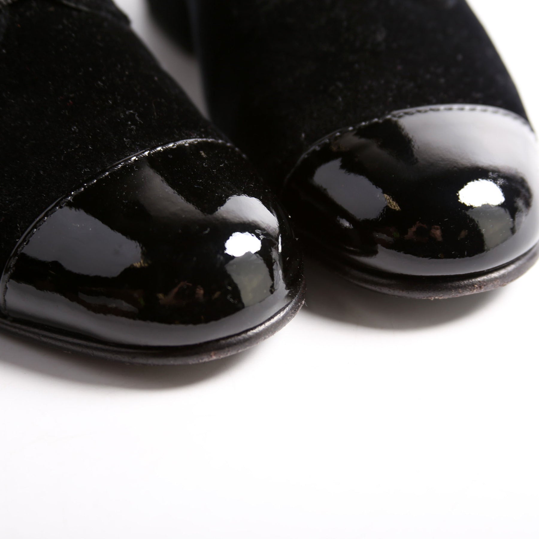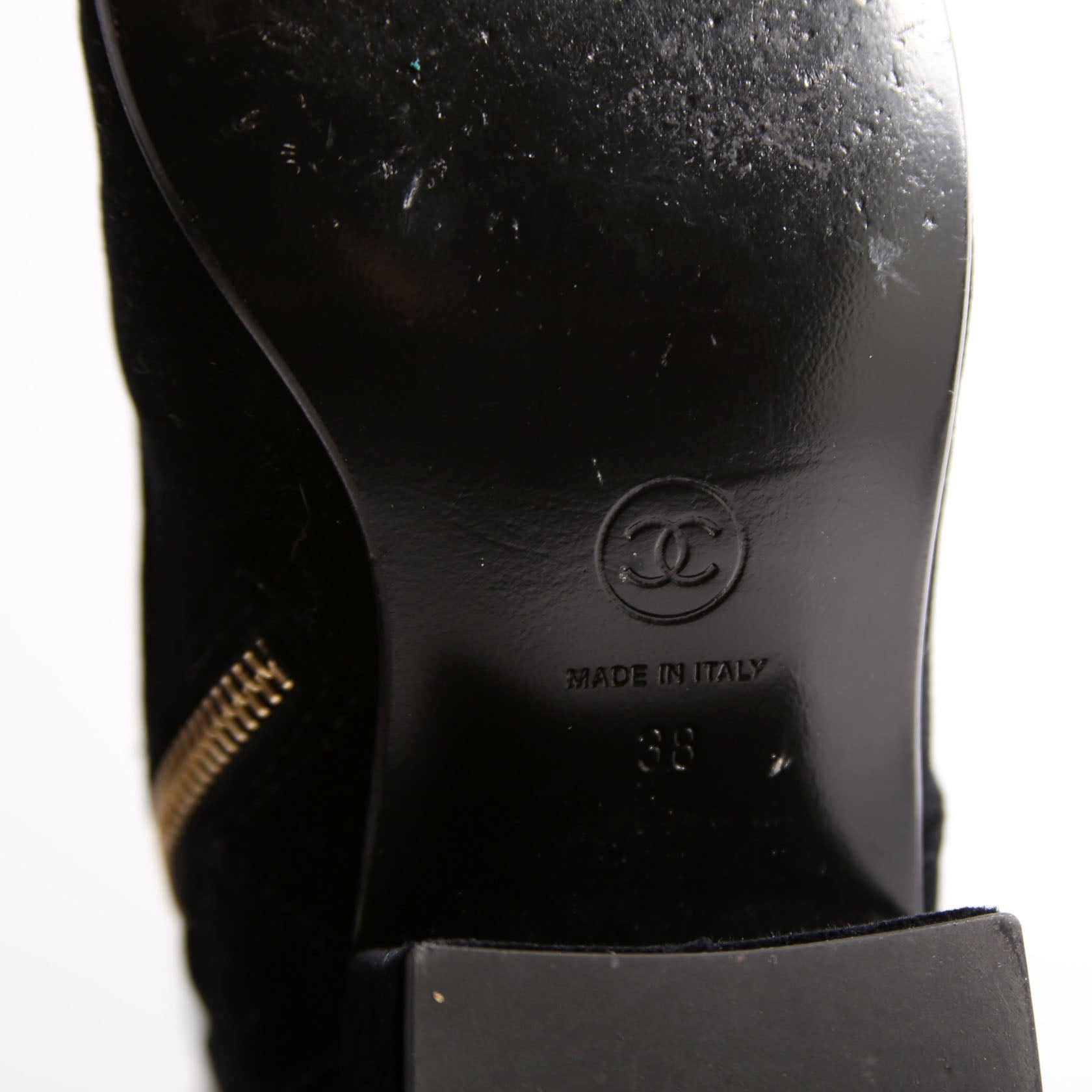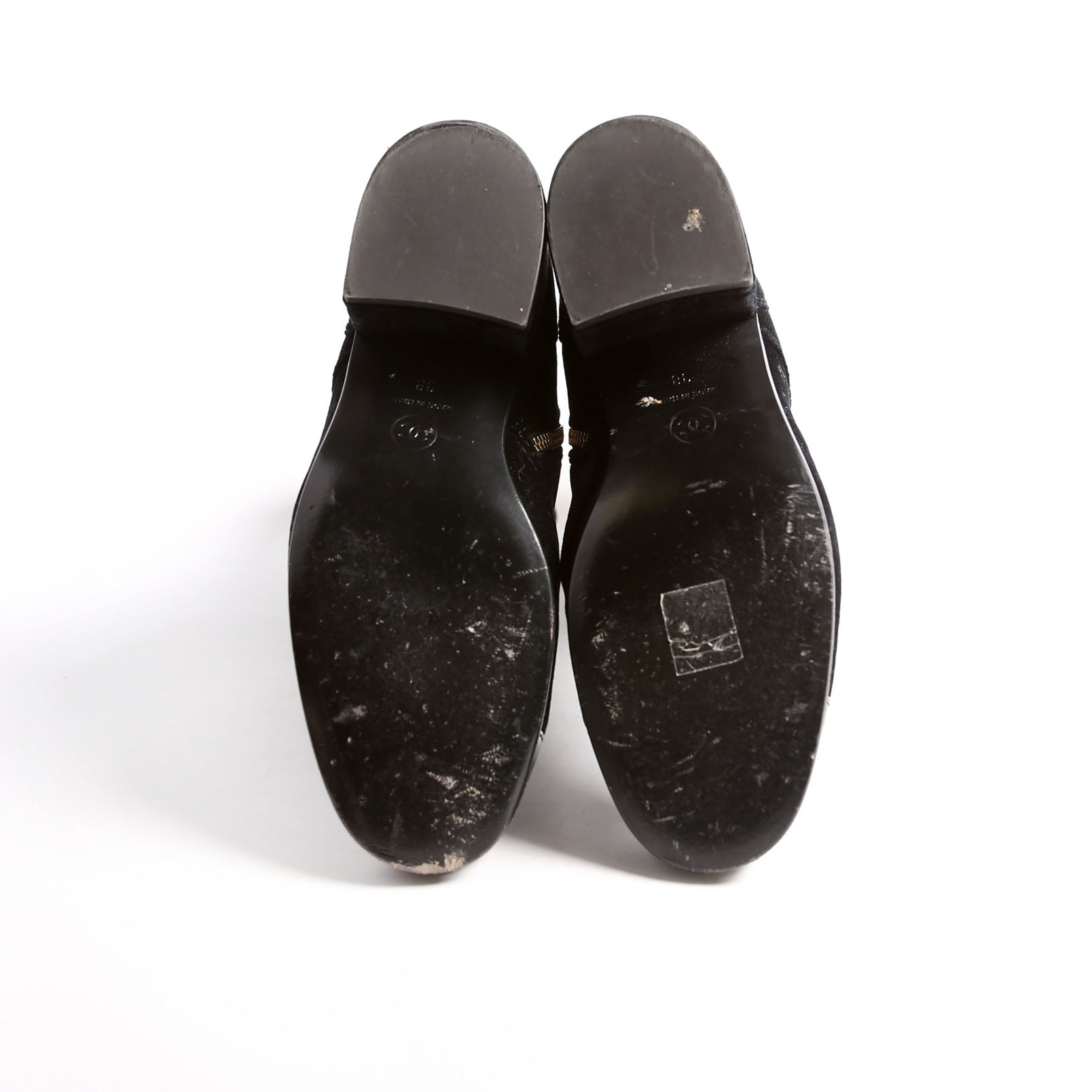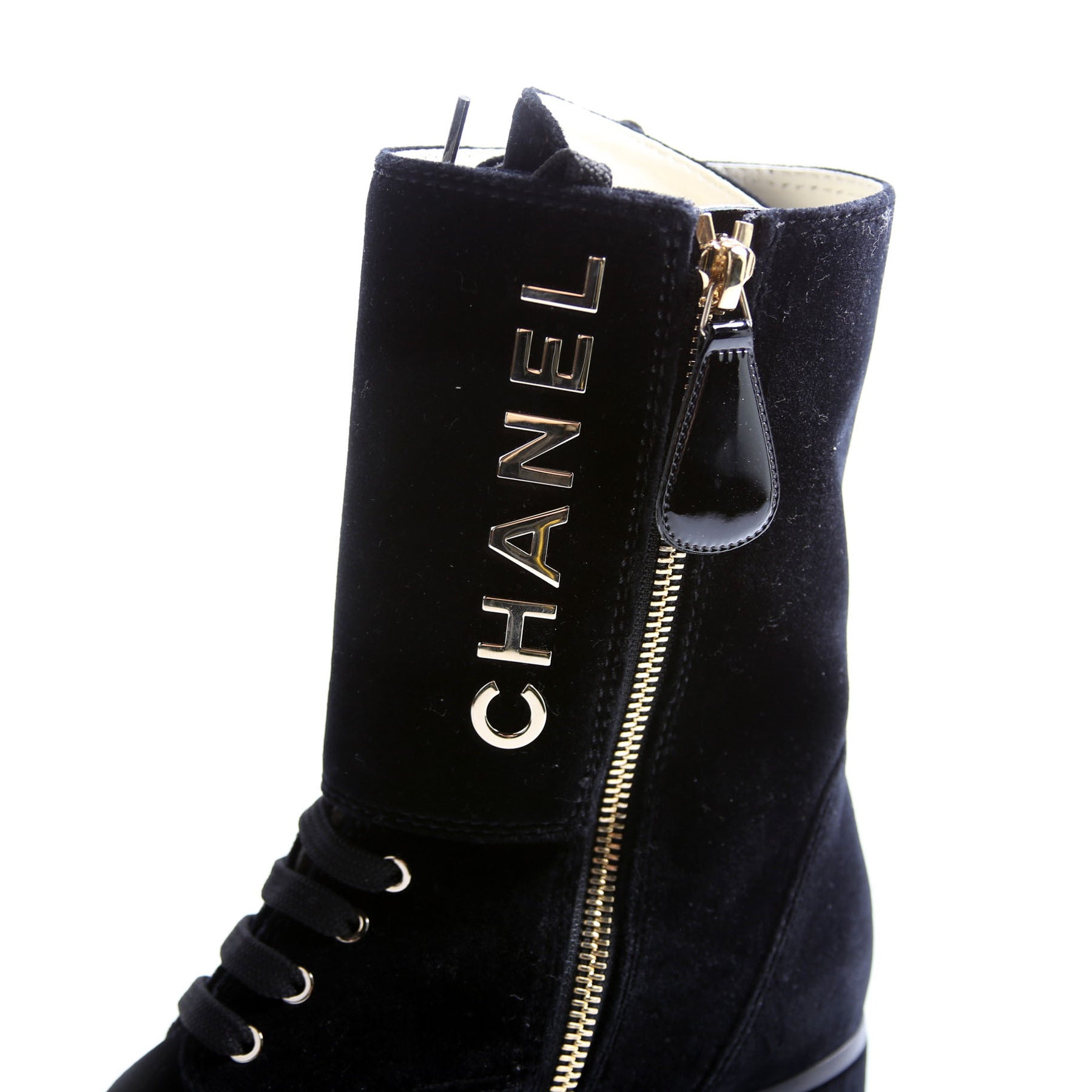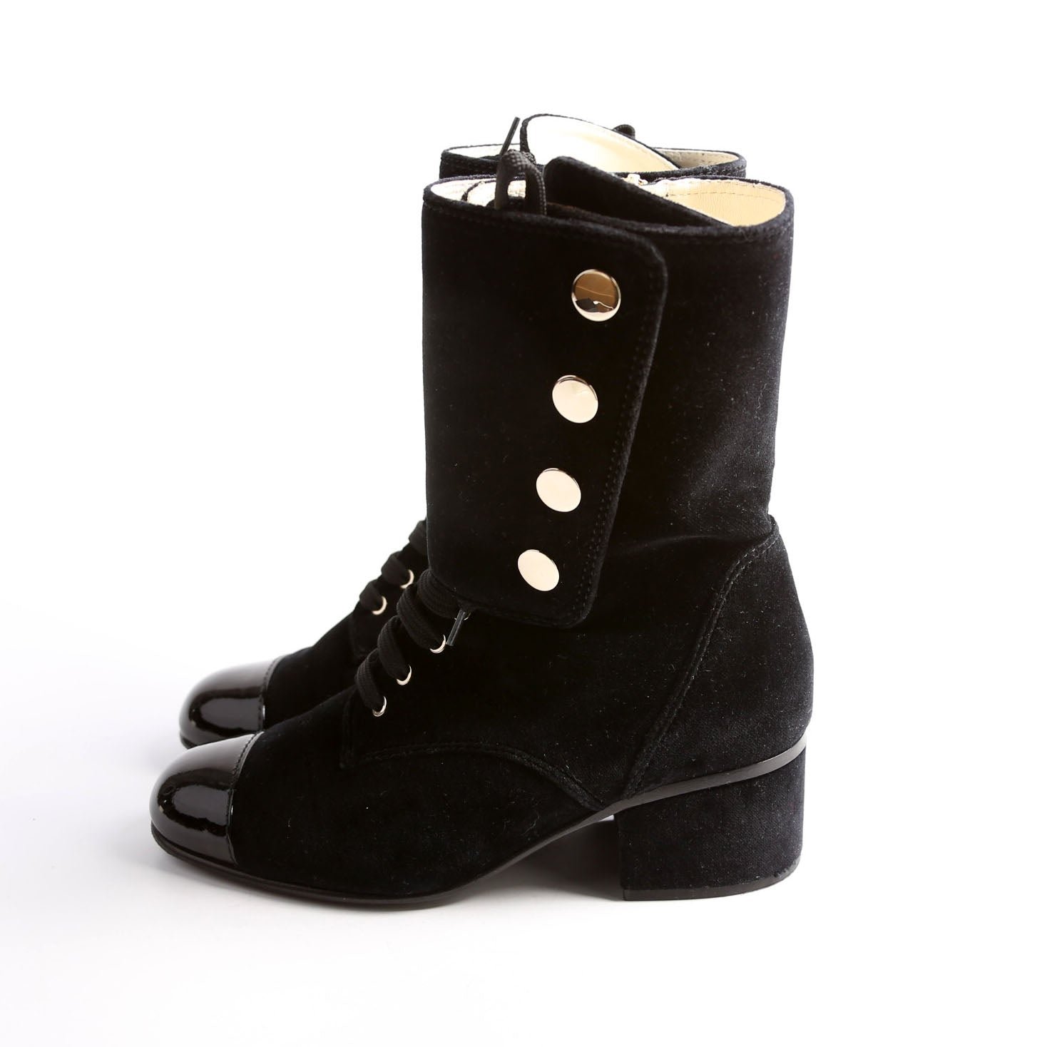 These pre-owned Chanel CC Cap Toe Velvet Lace-Up Boots are guaranteed 100% authentic.
