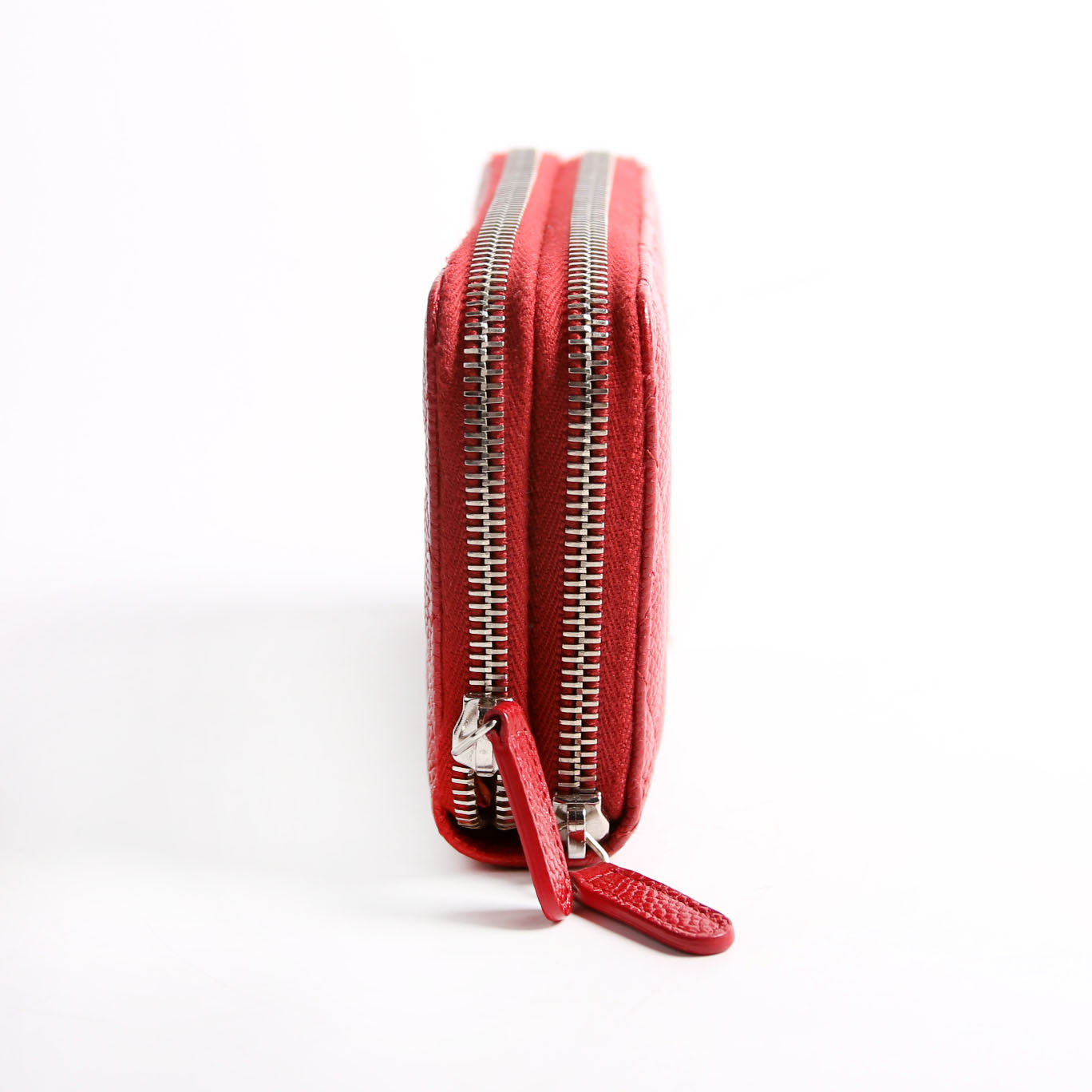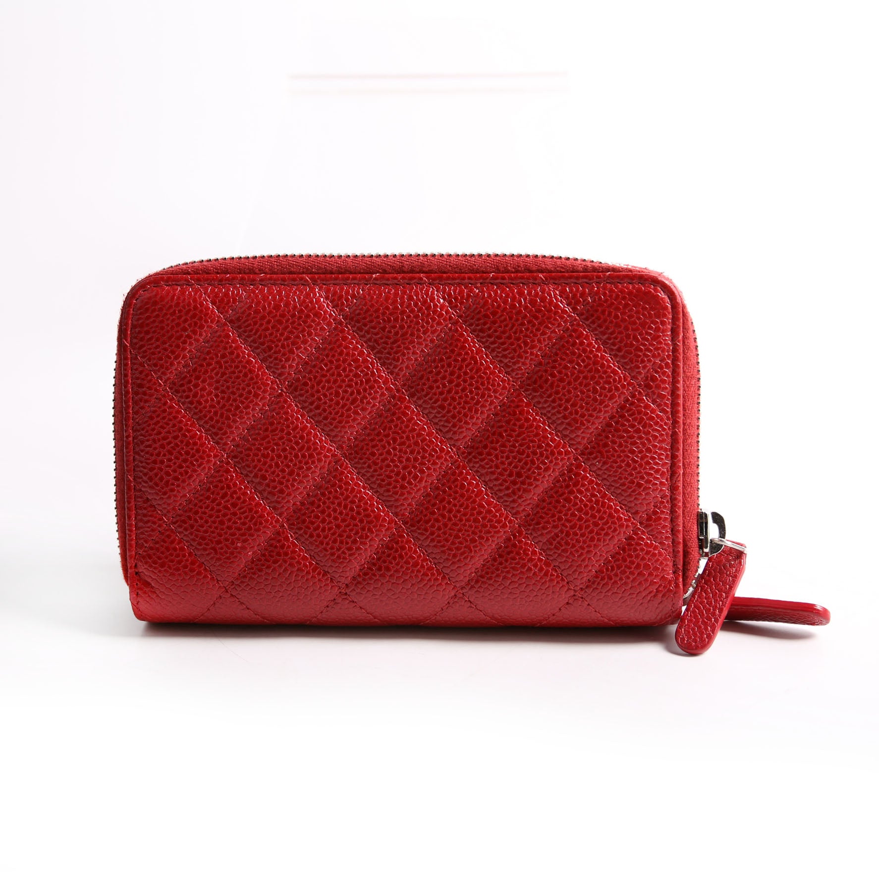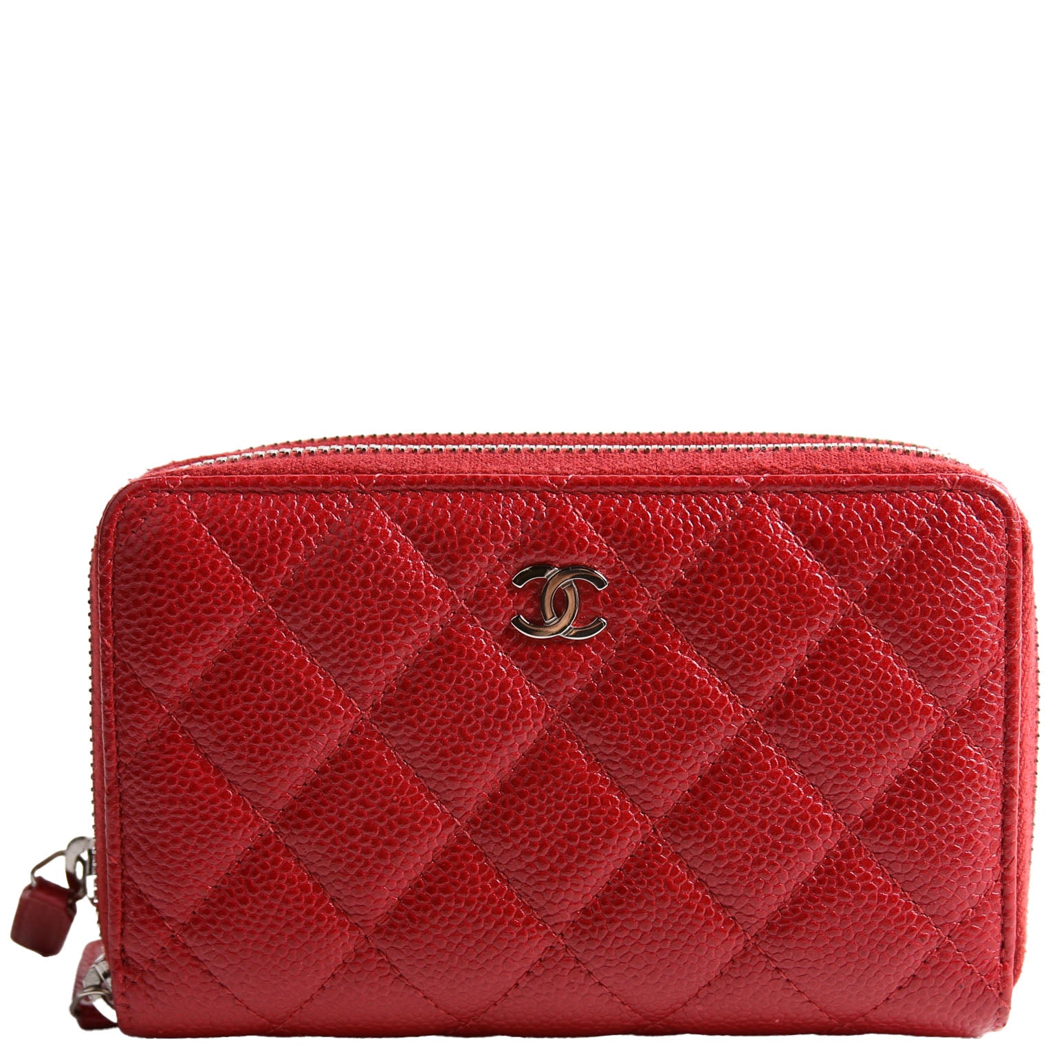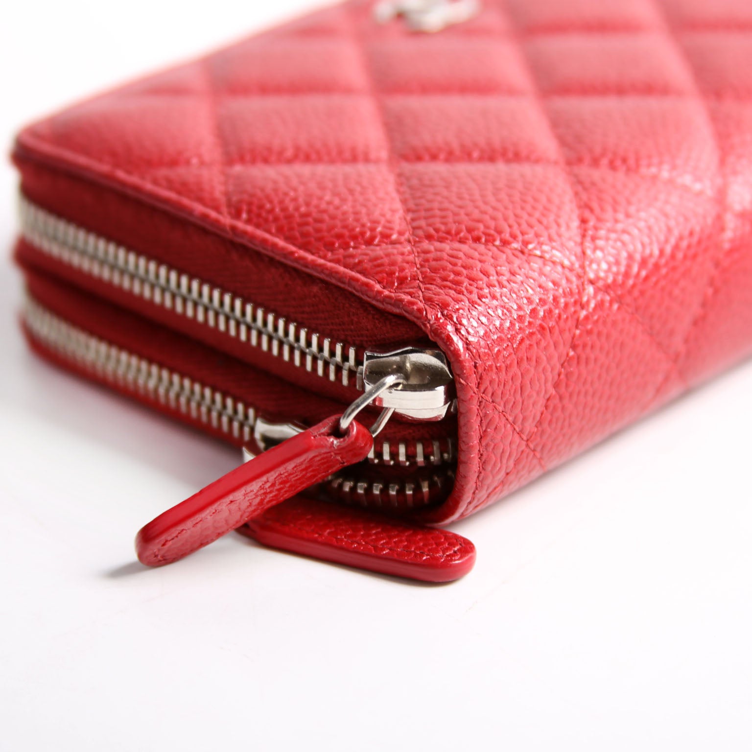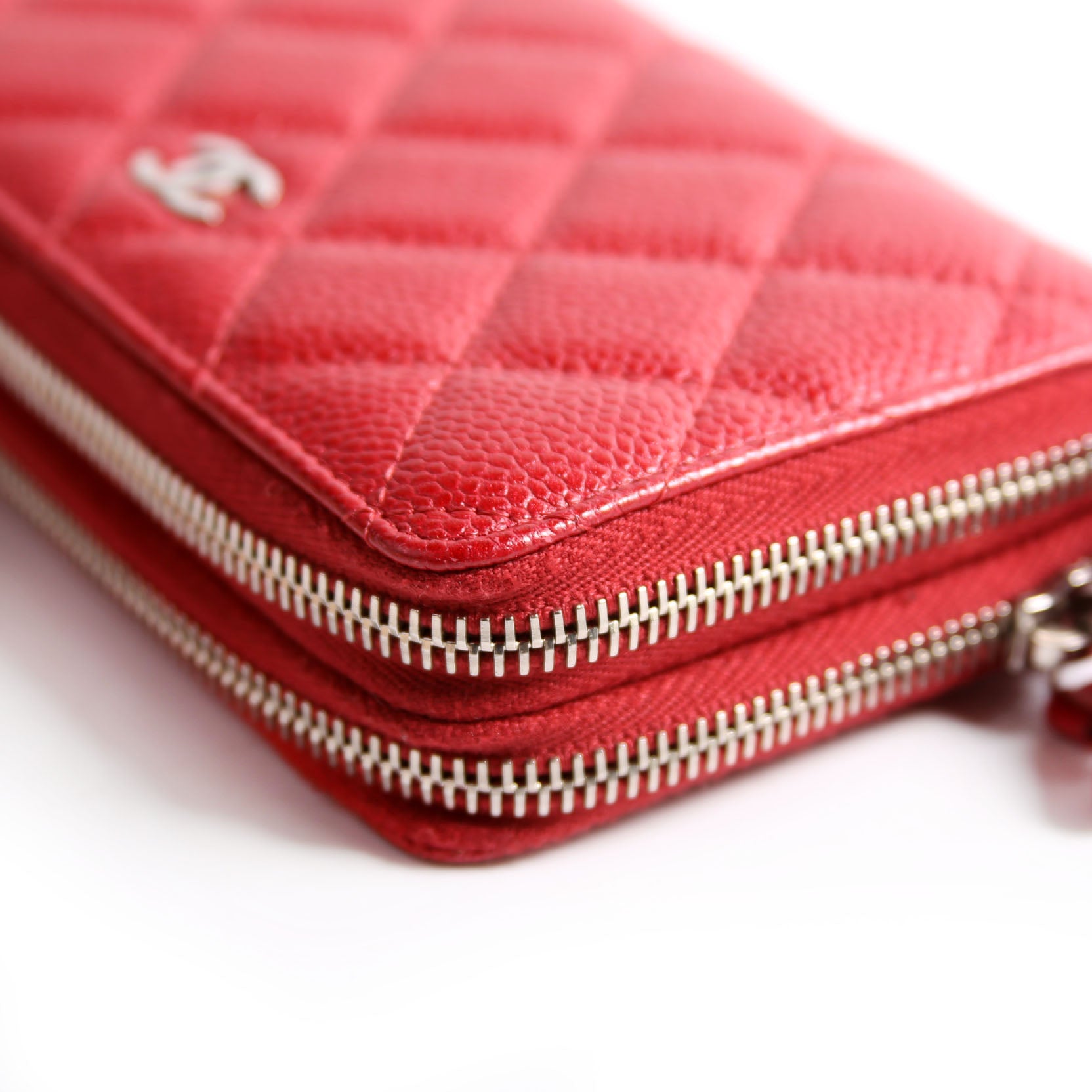 CC Double Zip Around Wallet Quilted Caviar 20M Red