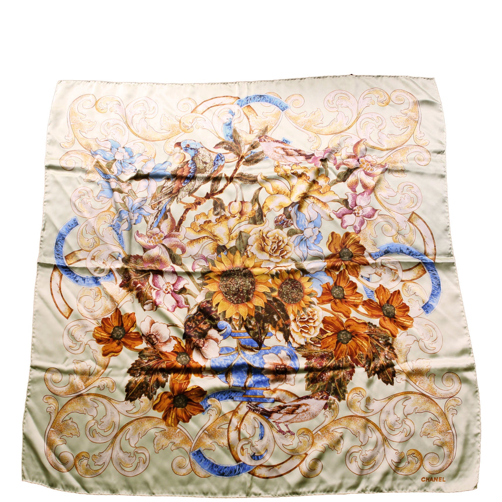 This pre-owned Chanel CC Floral 90CM Silk Scarf is guaranteed 100% authentic.