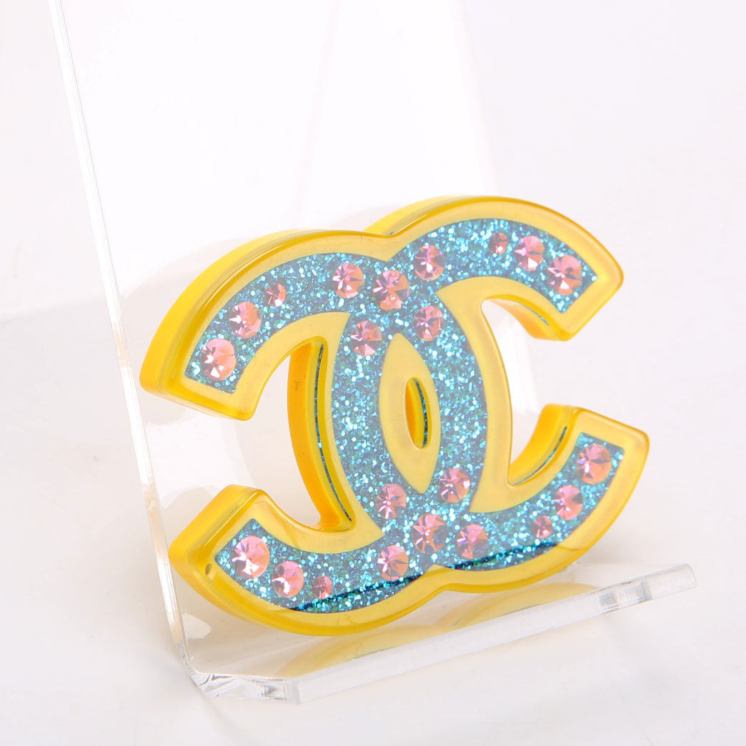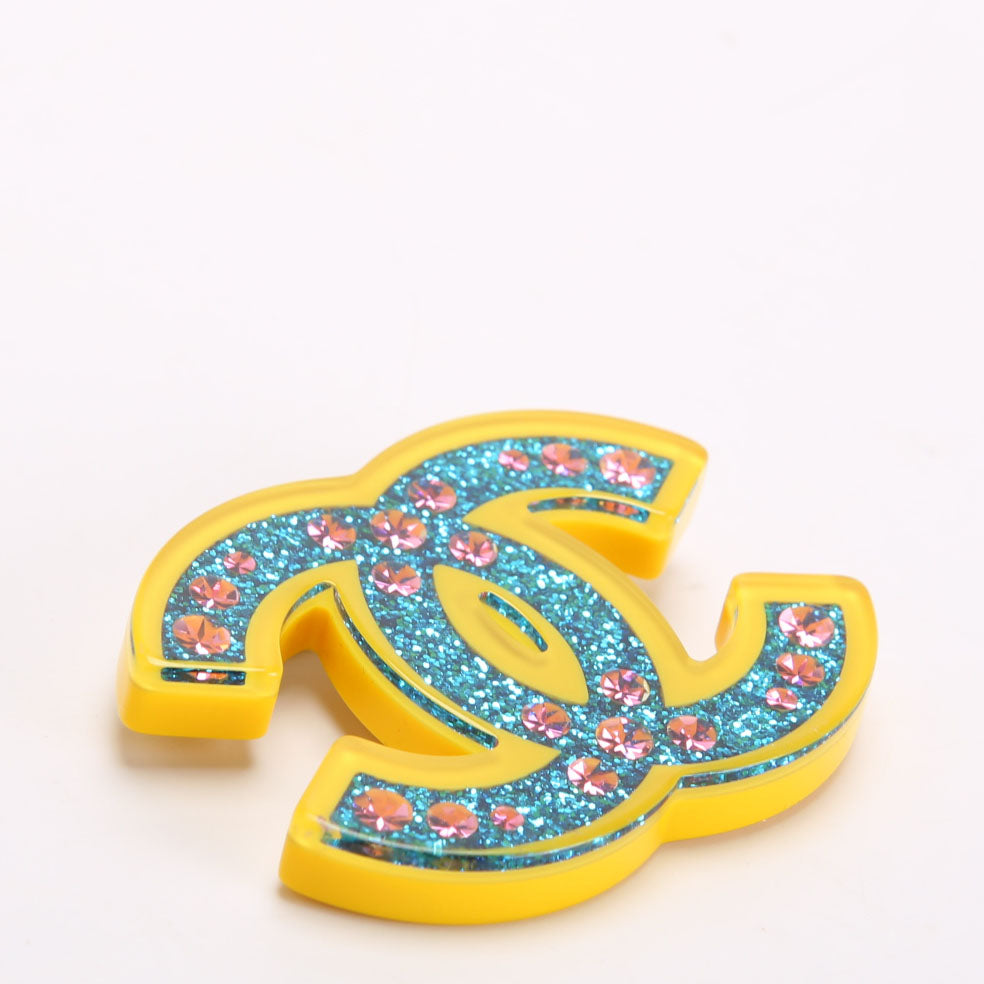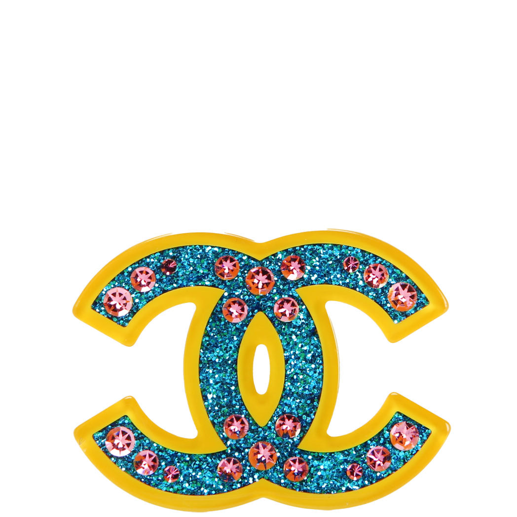 This pre-owned Chanel CC Glitter Resin With Crystals Brooch is guaranteed 100% authentic.