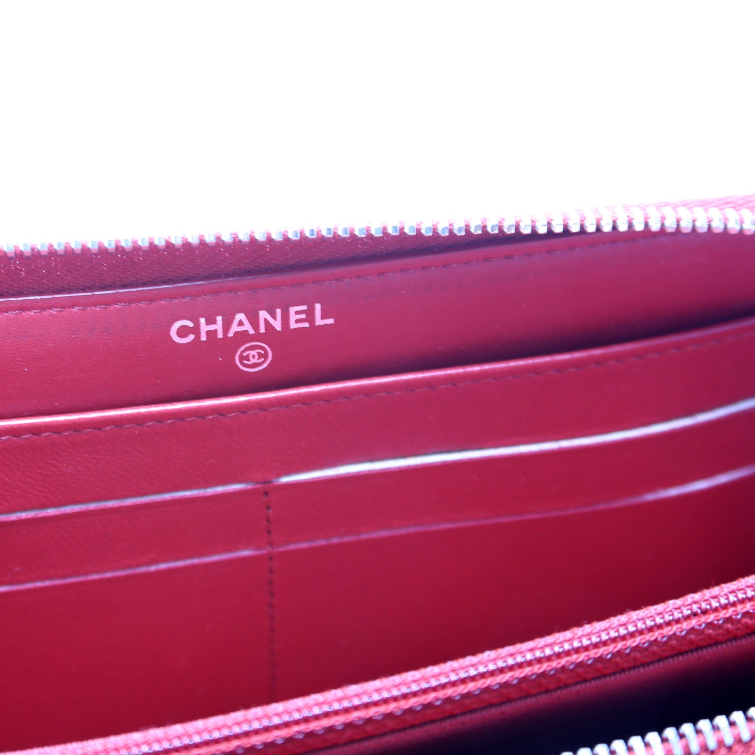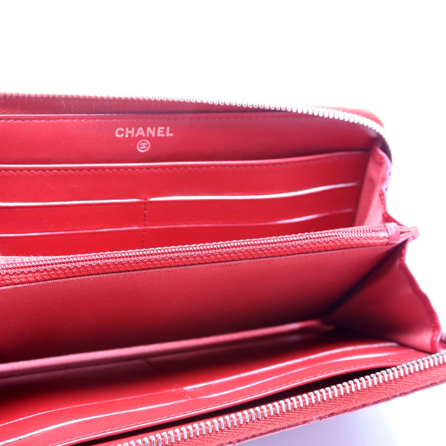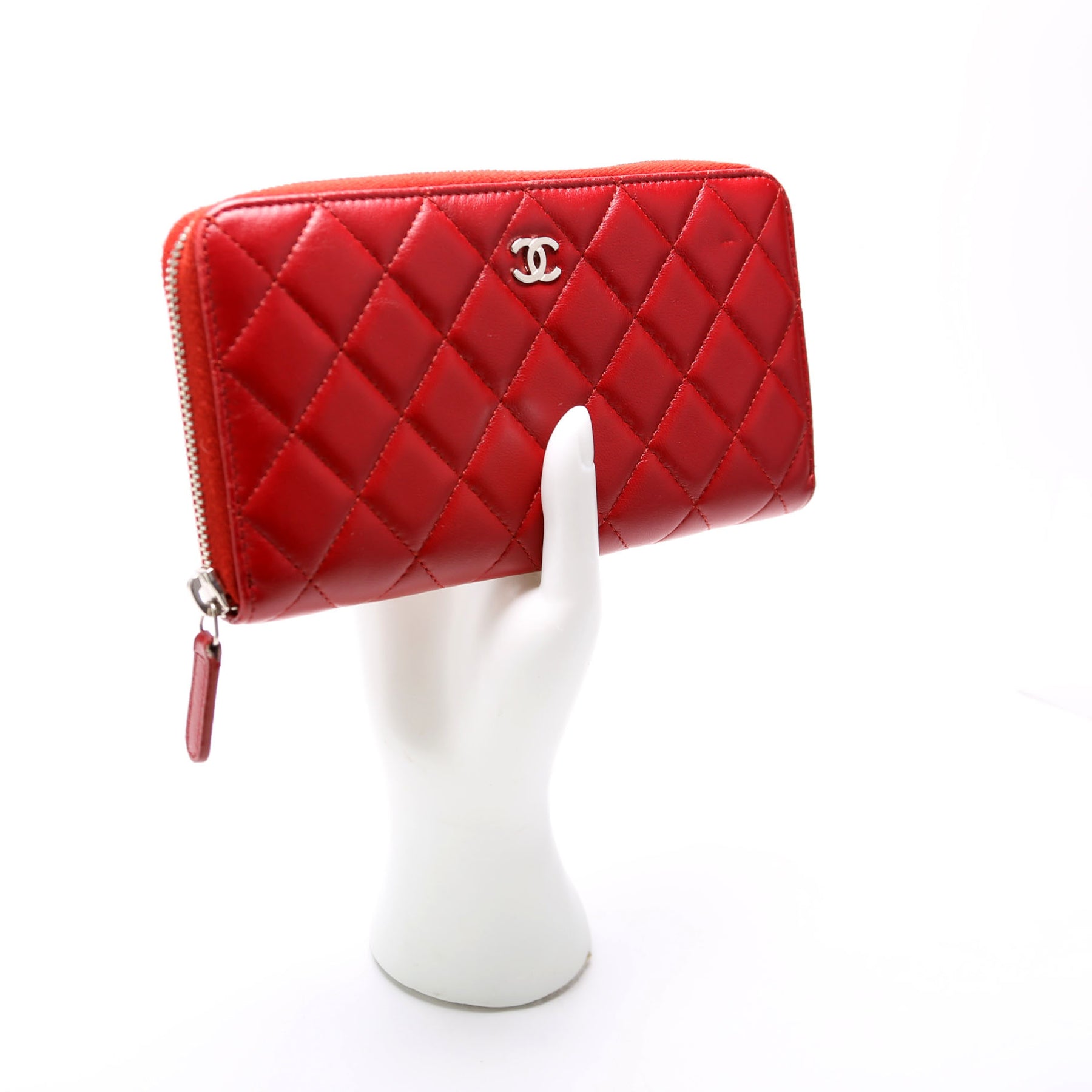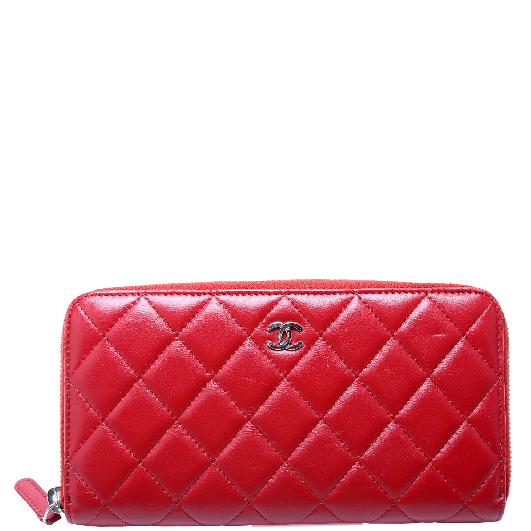 CC Long Zip Around Wallet Lambskin Red