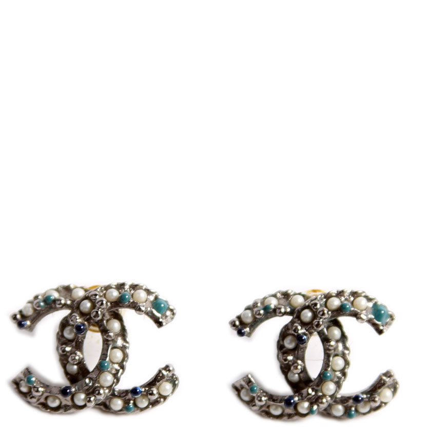 These pre-owned Chanel Pearl CC Pearl/Enamel Stud Earrings are guaranteed 100% authentic.