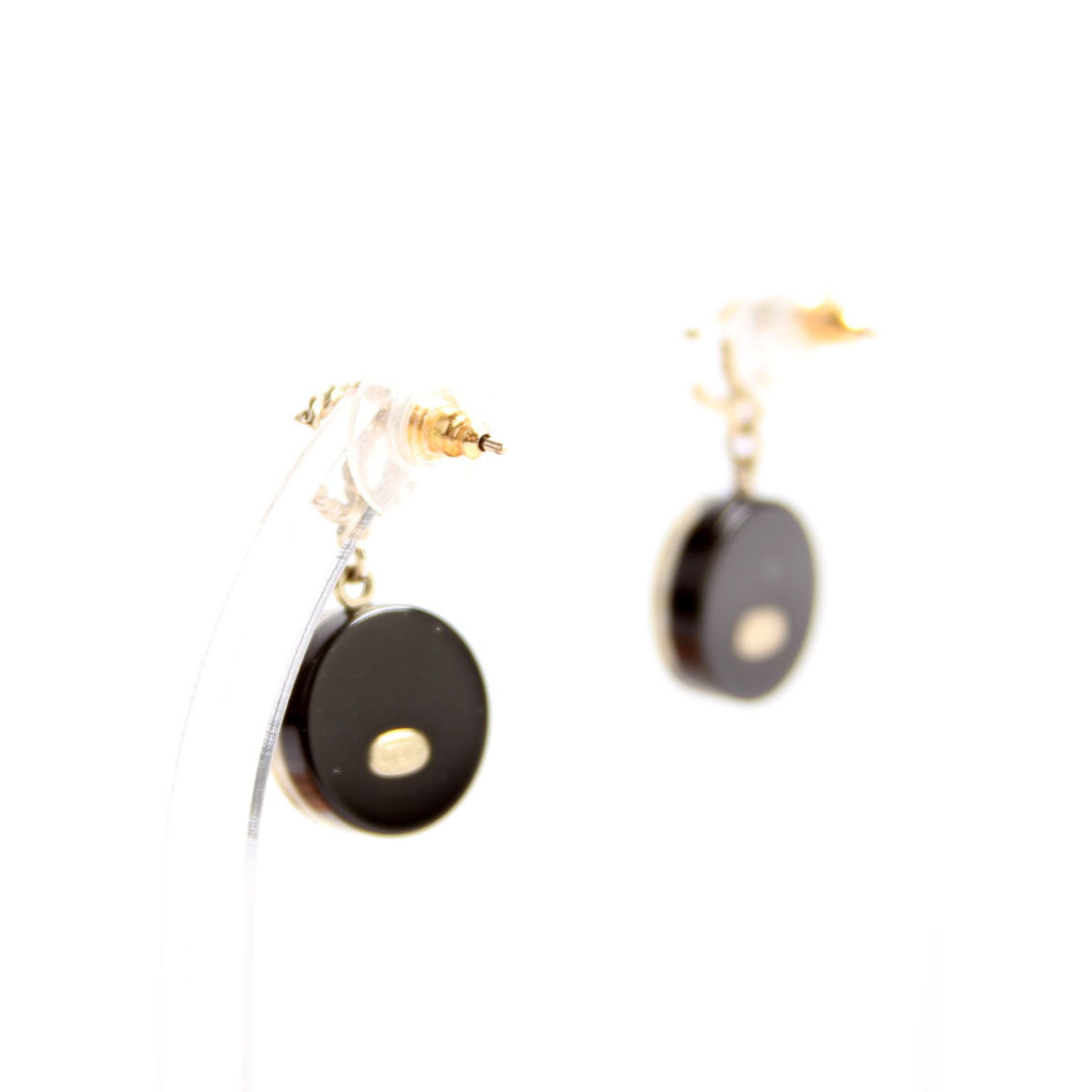 These pre-owned Chanel CC Round Camellia Flower Resin Drop Earrings are guaranteed 100% authentic.