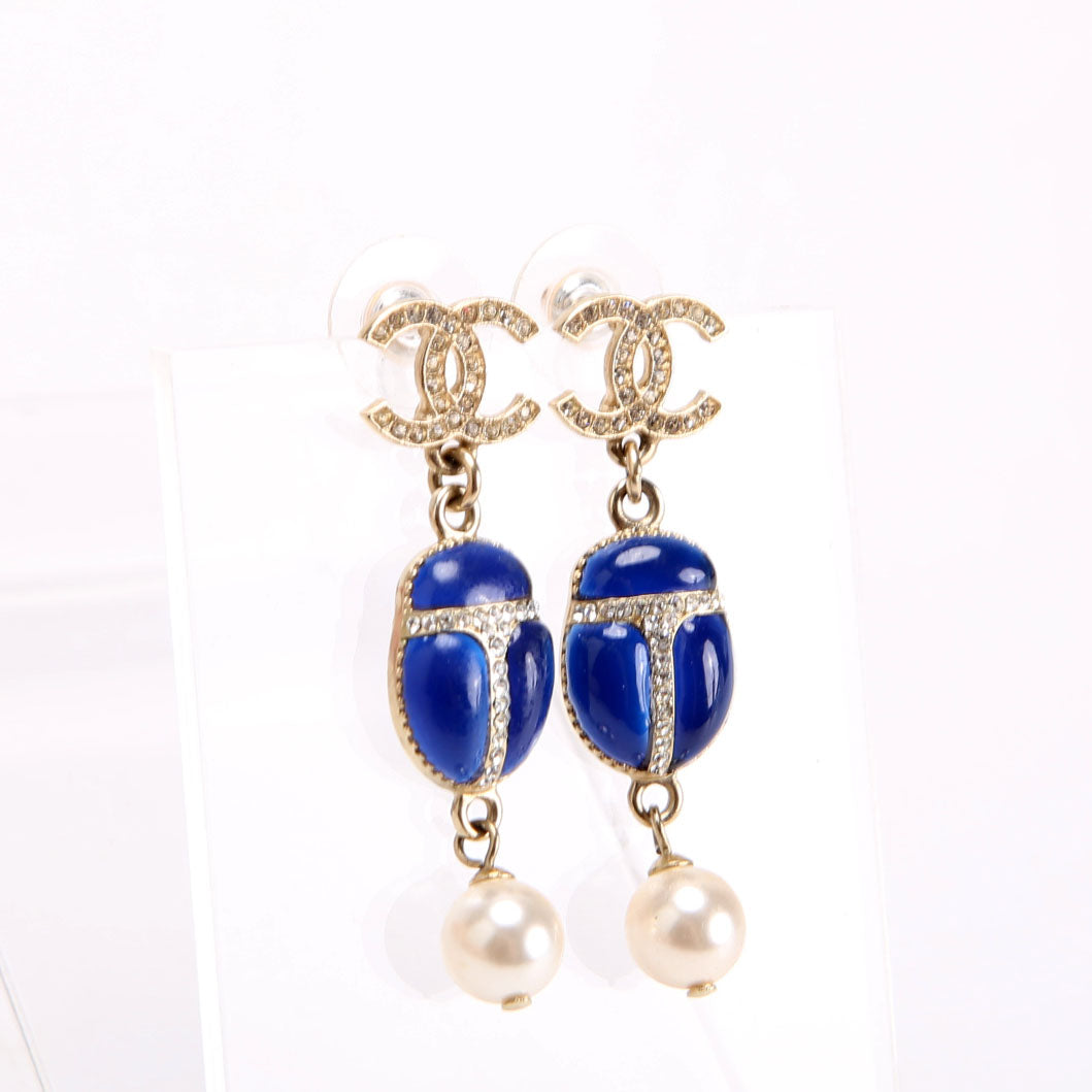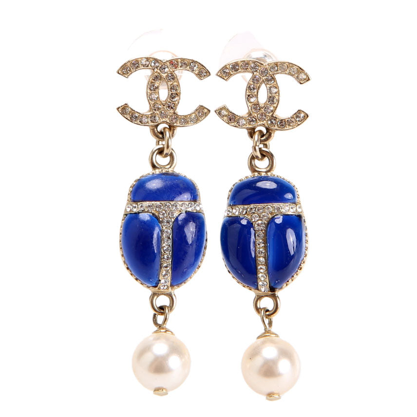 These pre-owned Chanel CC Scarab Pearl Drop Earrings are guaranteed 100% authentic.