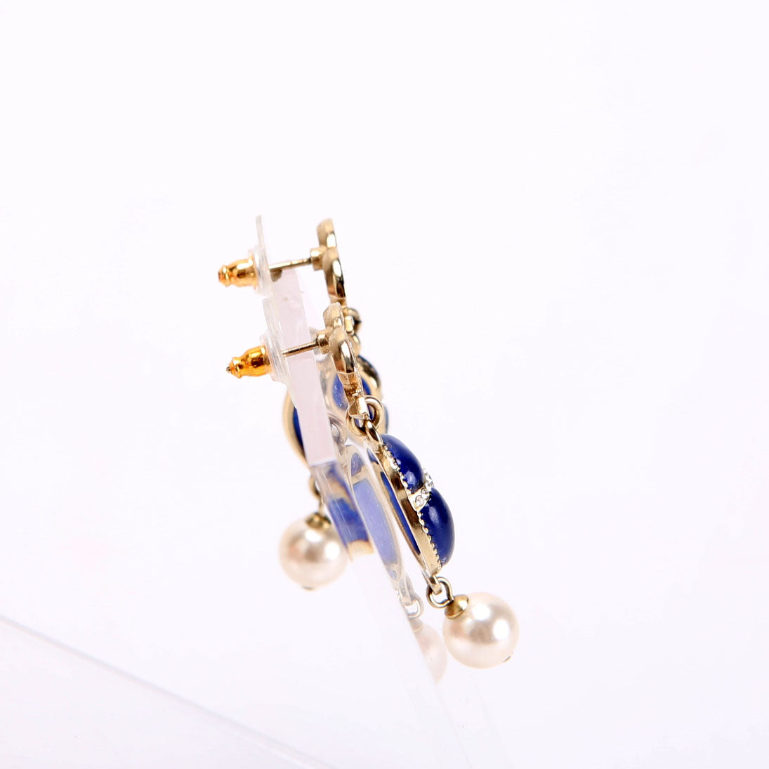CC Scarab Pearl Drop Earrings Navy/Gold