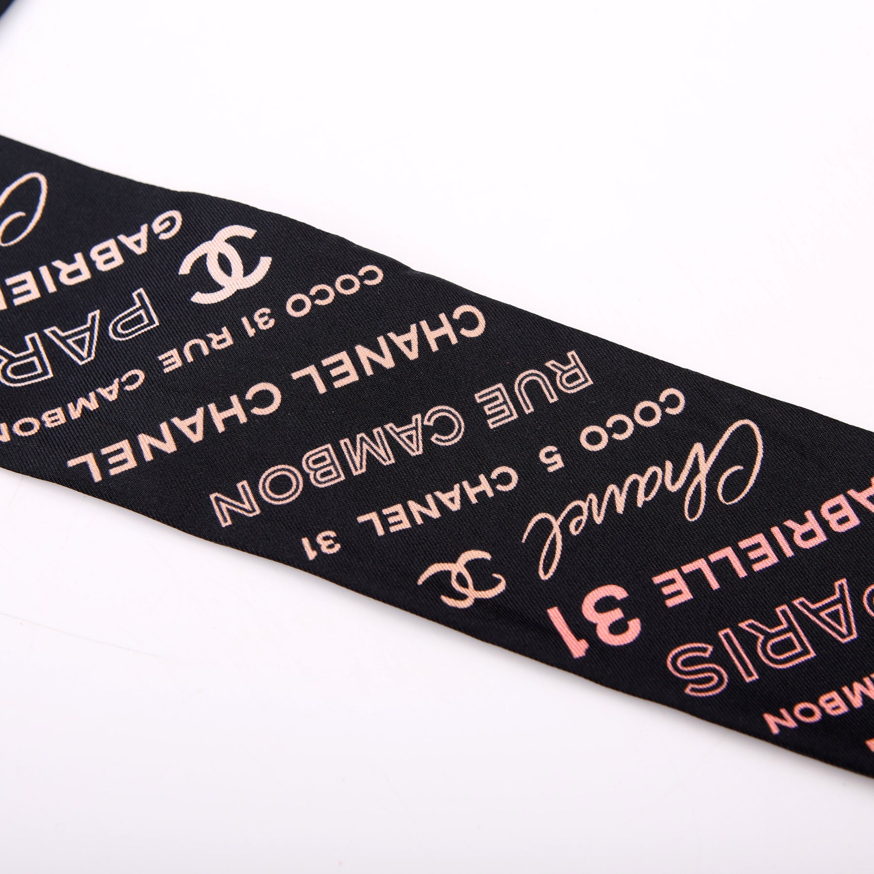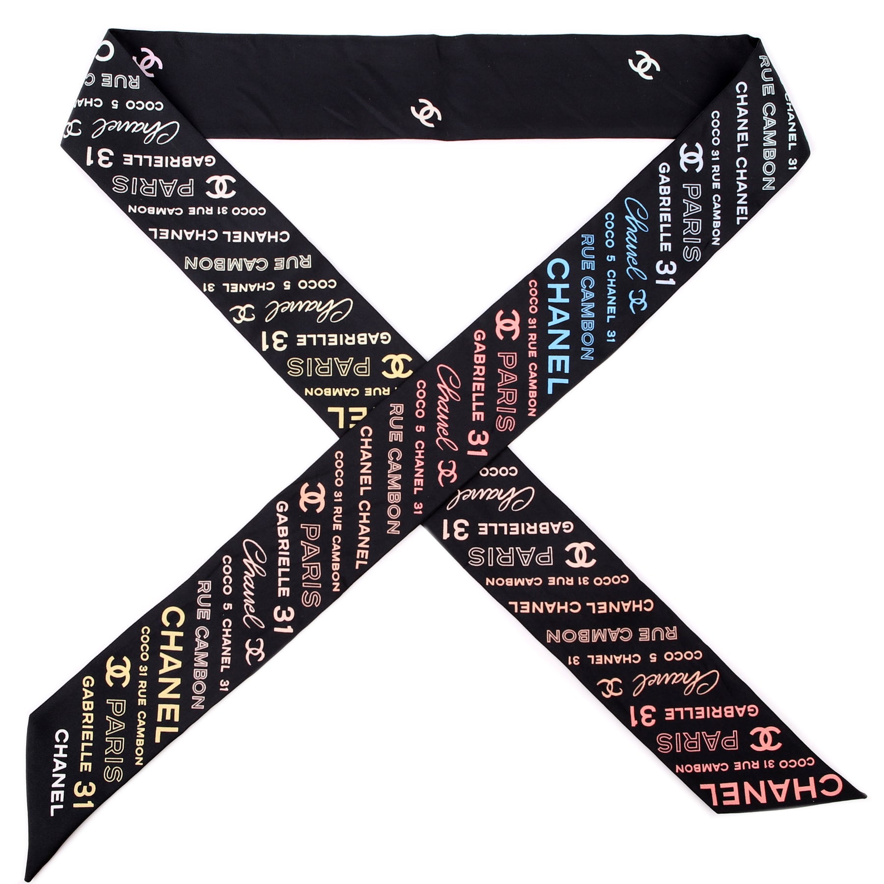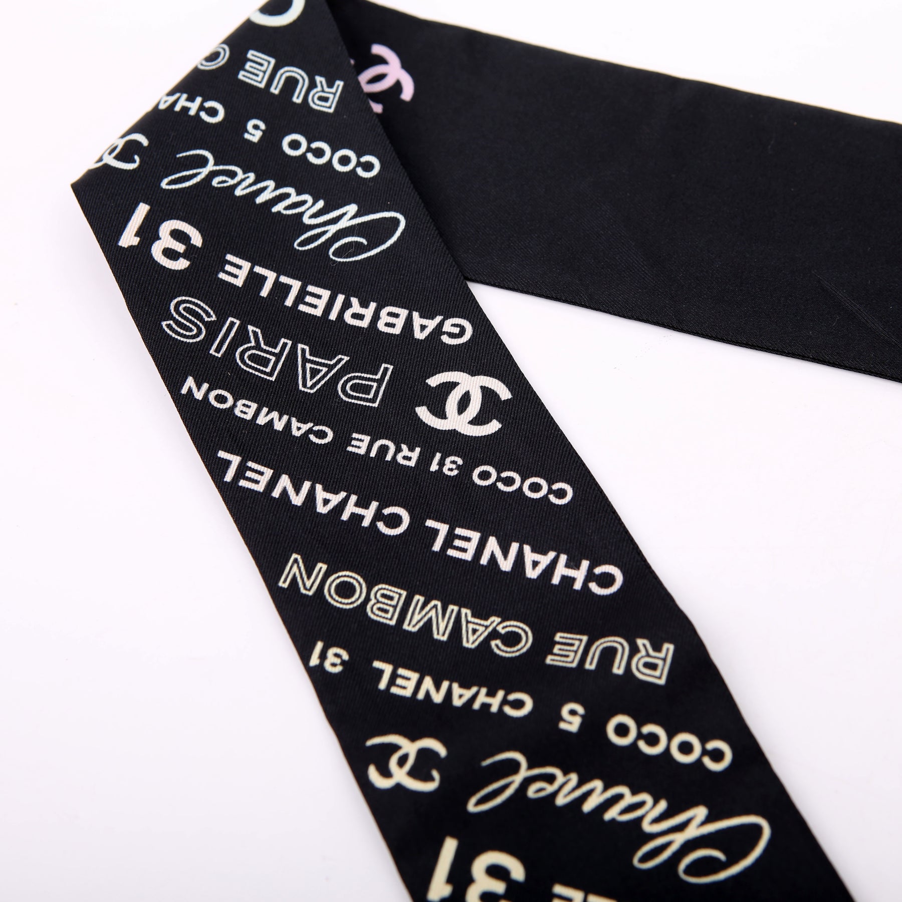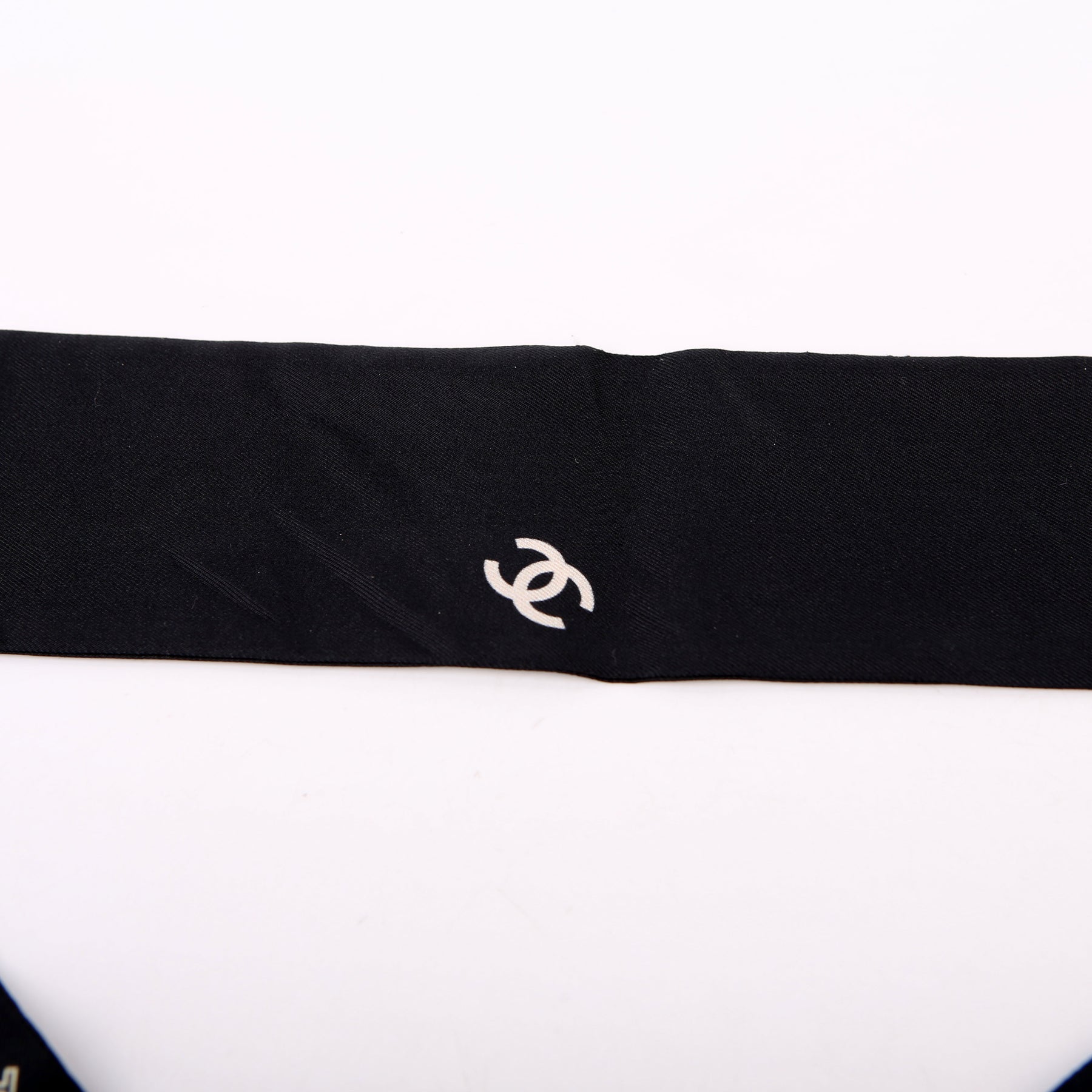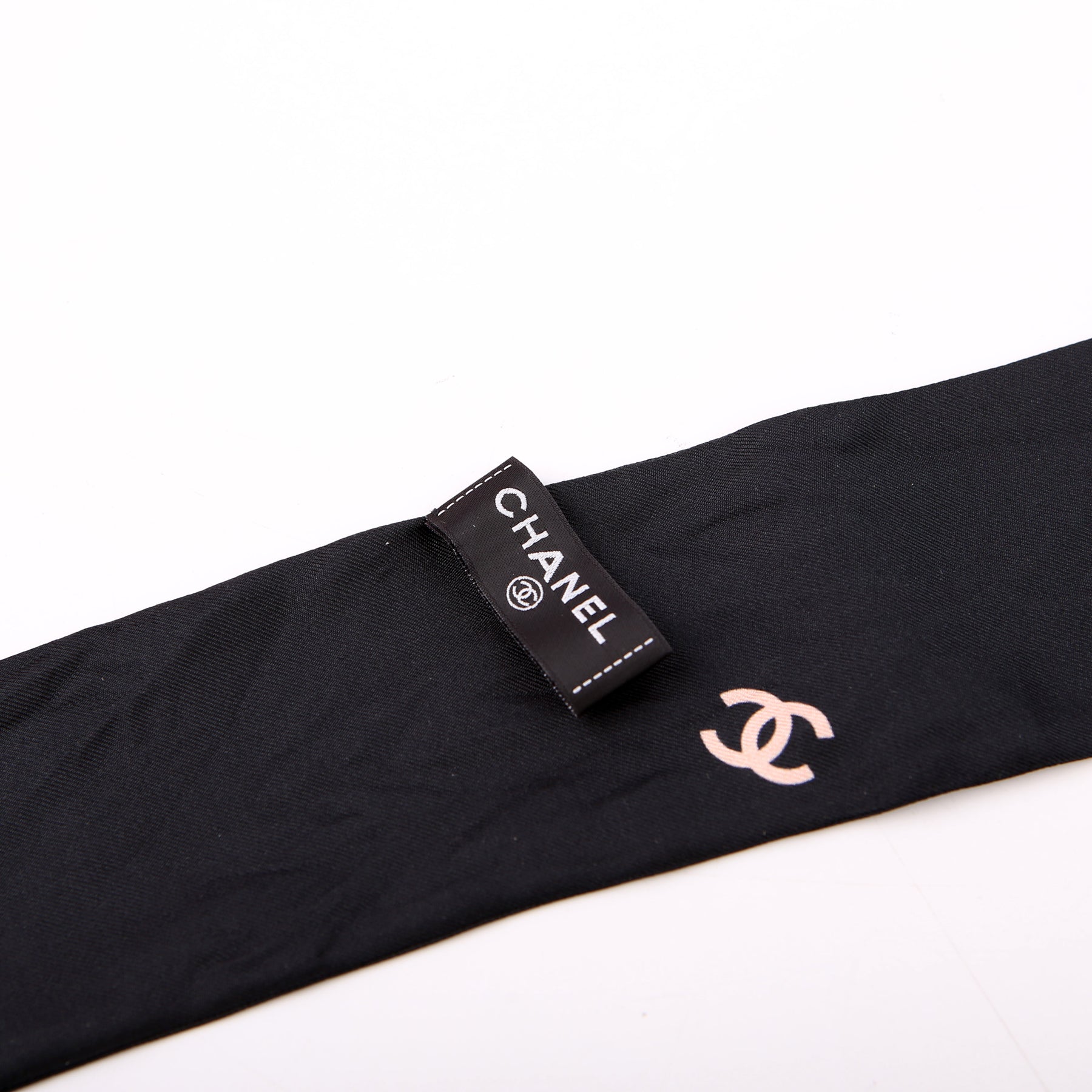This pre-owned Chanel CC Slim Bandeau Silk Scarf is guaranteed 100% authentic.