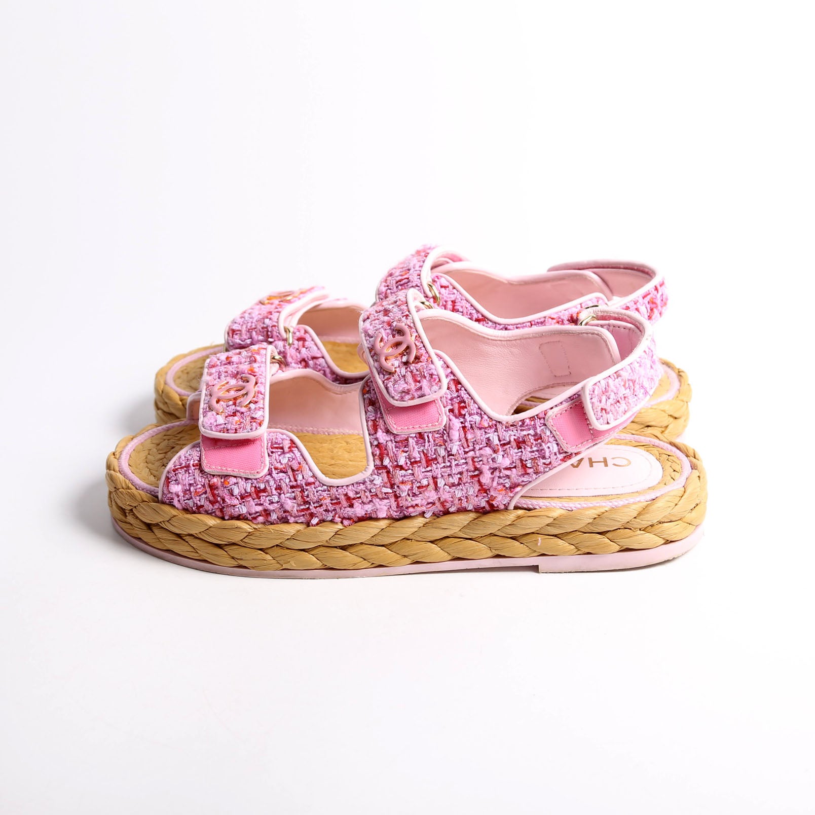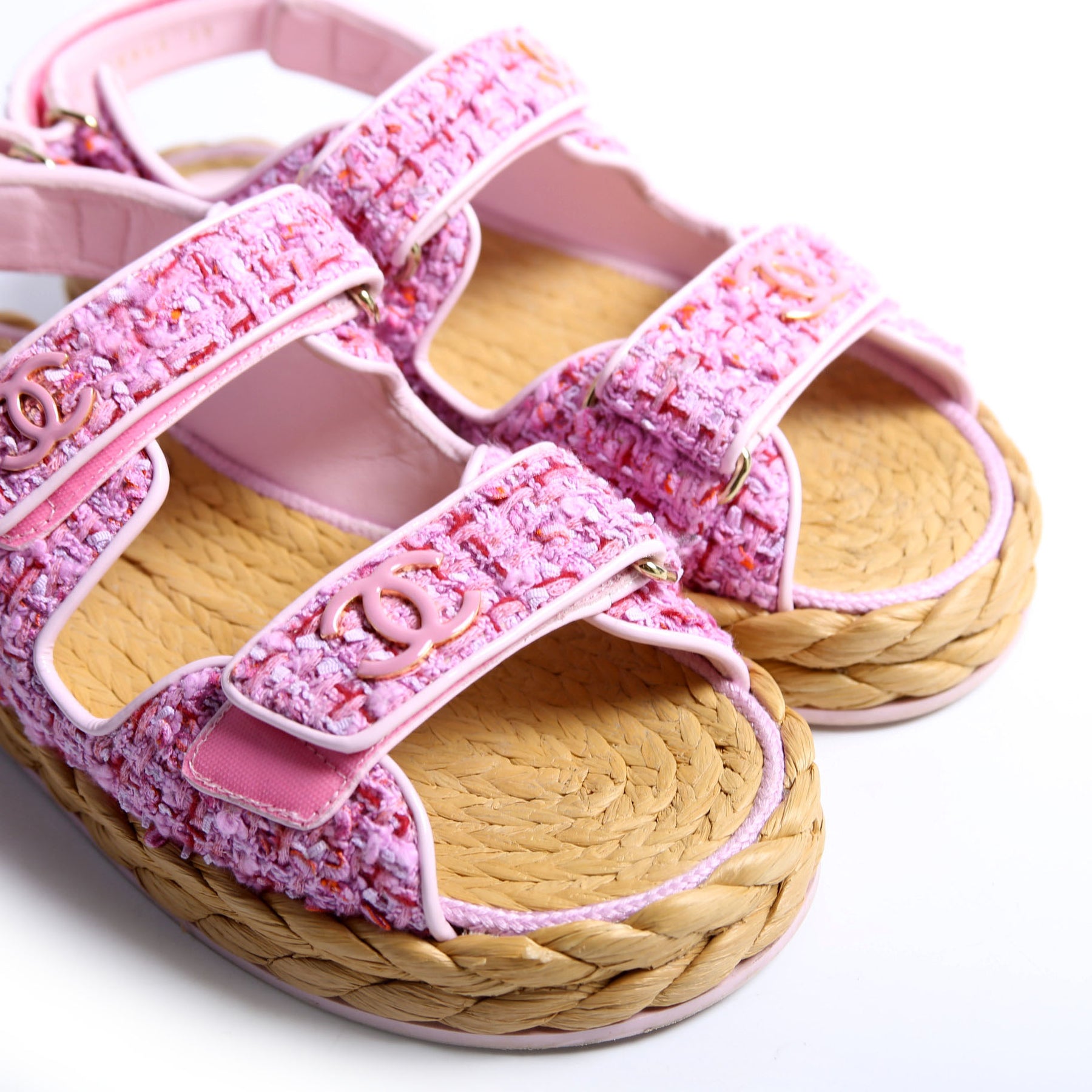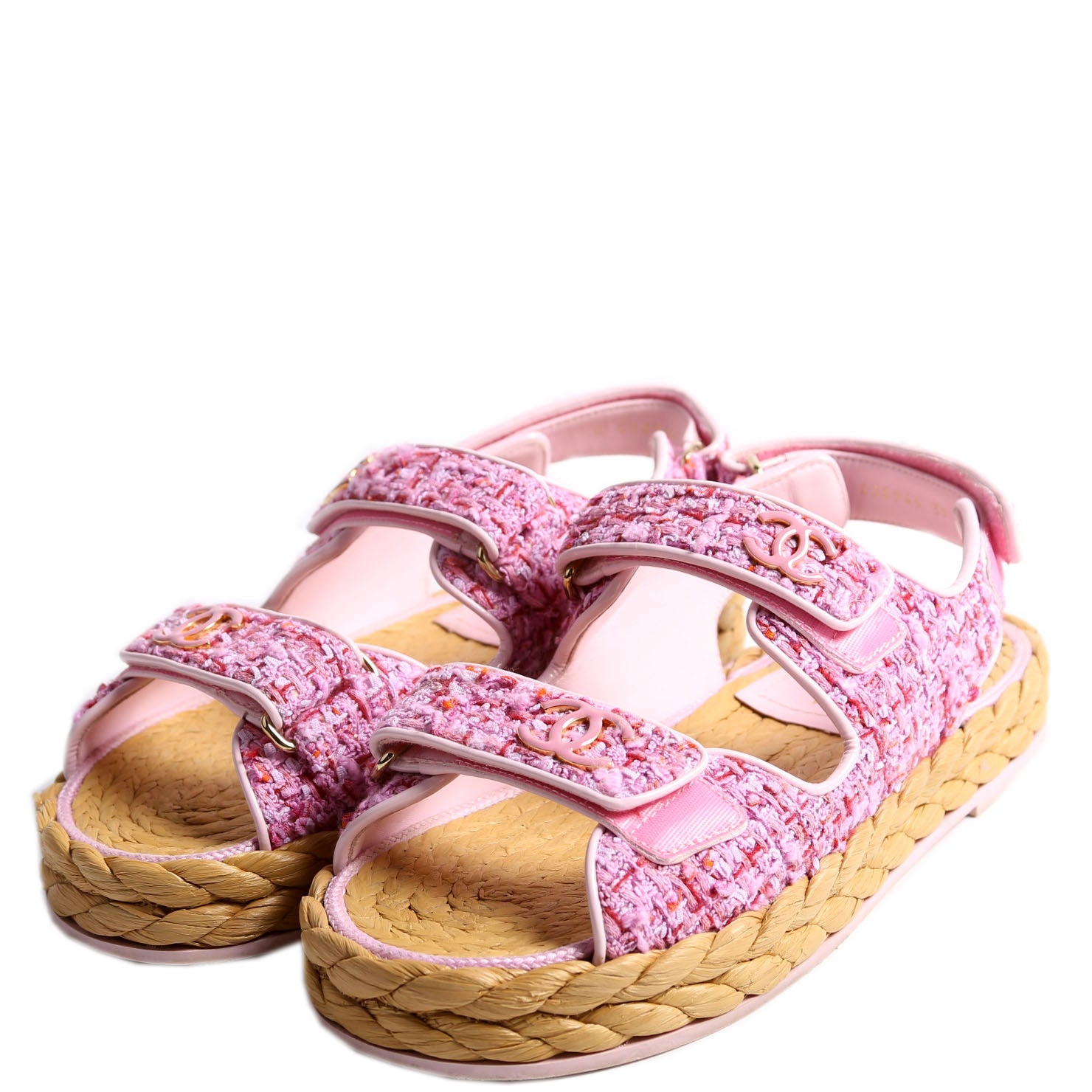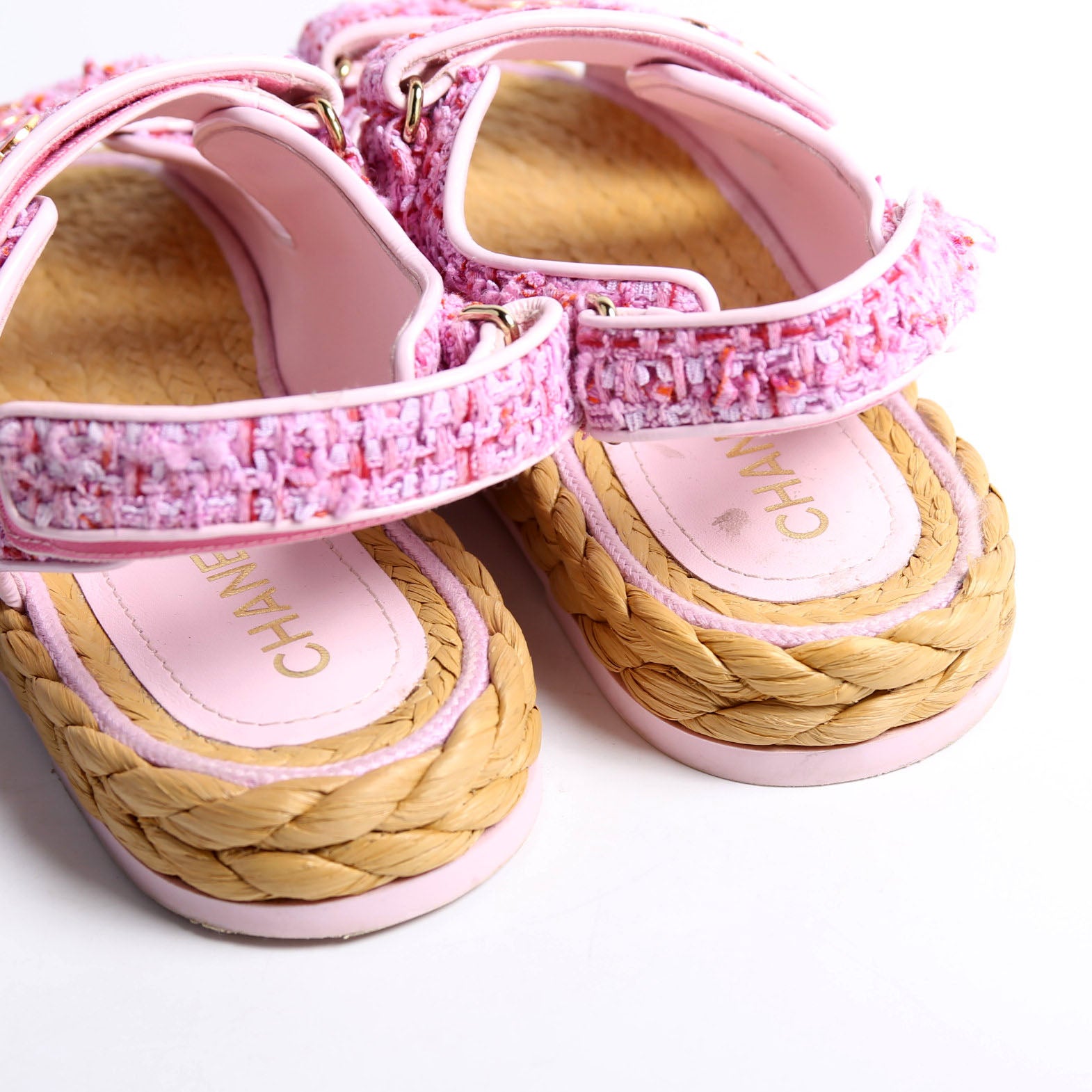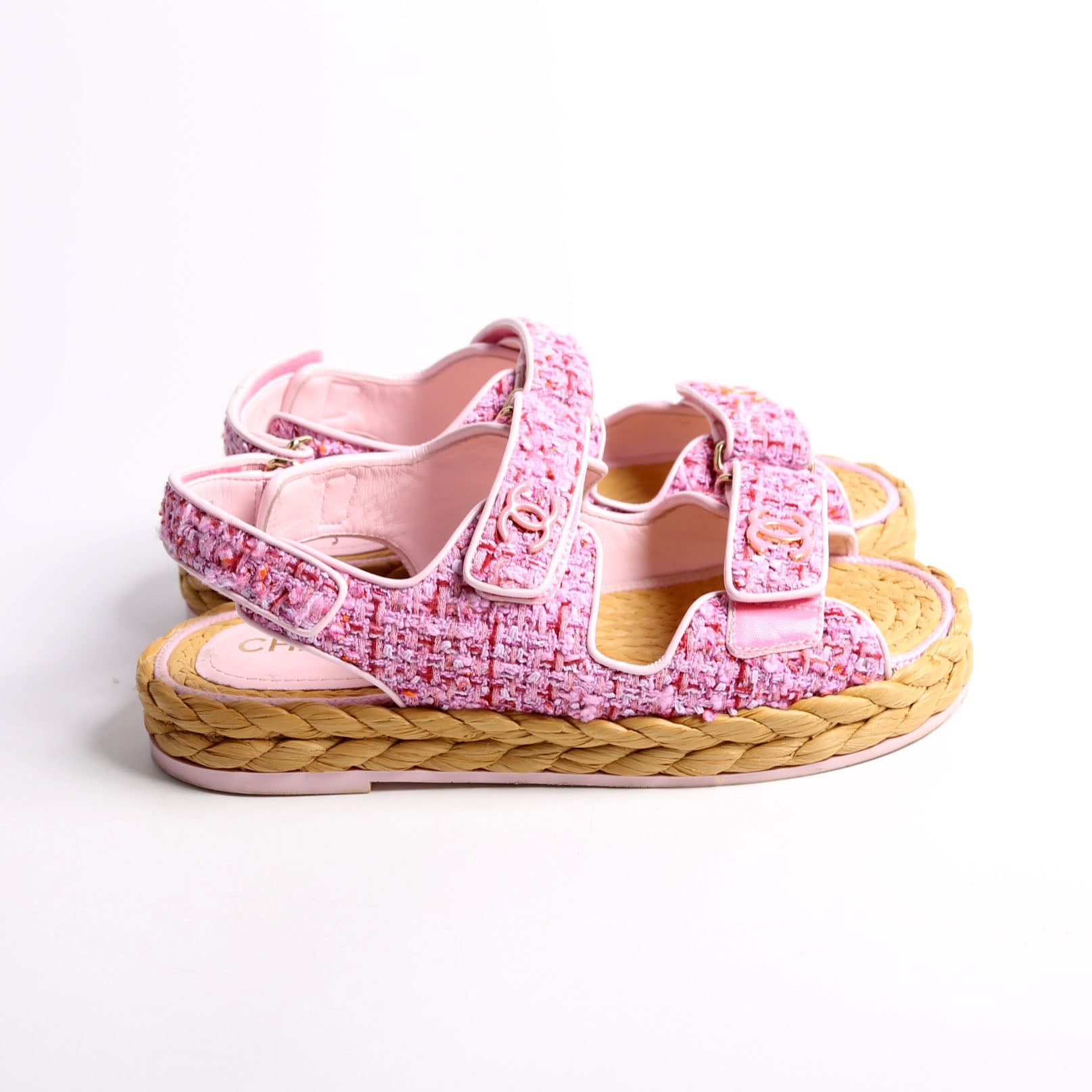 These pre-owned Chanel CC Tweed Dad Sandals are guaranteed 100% authentic.