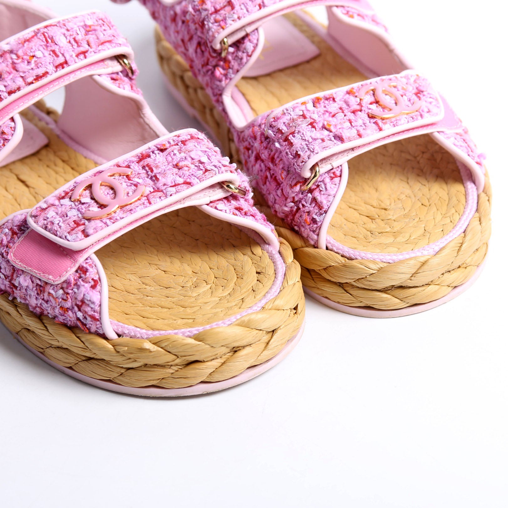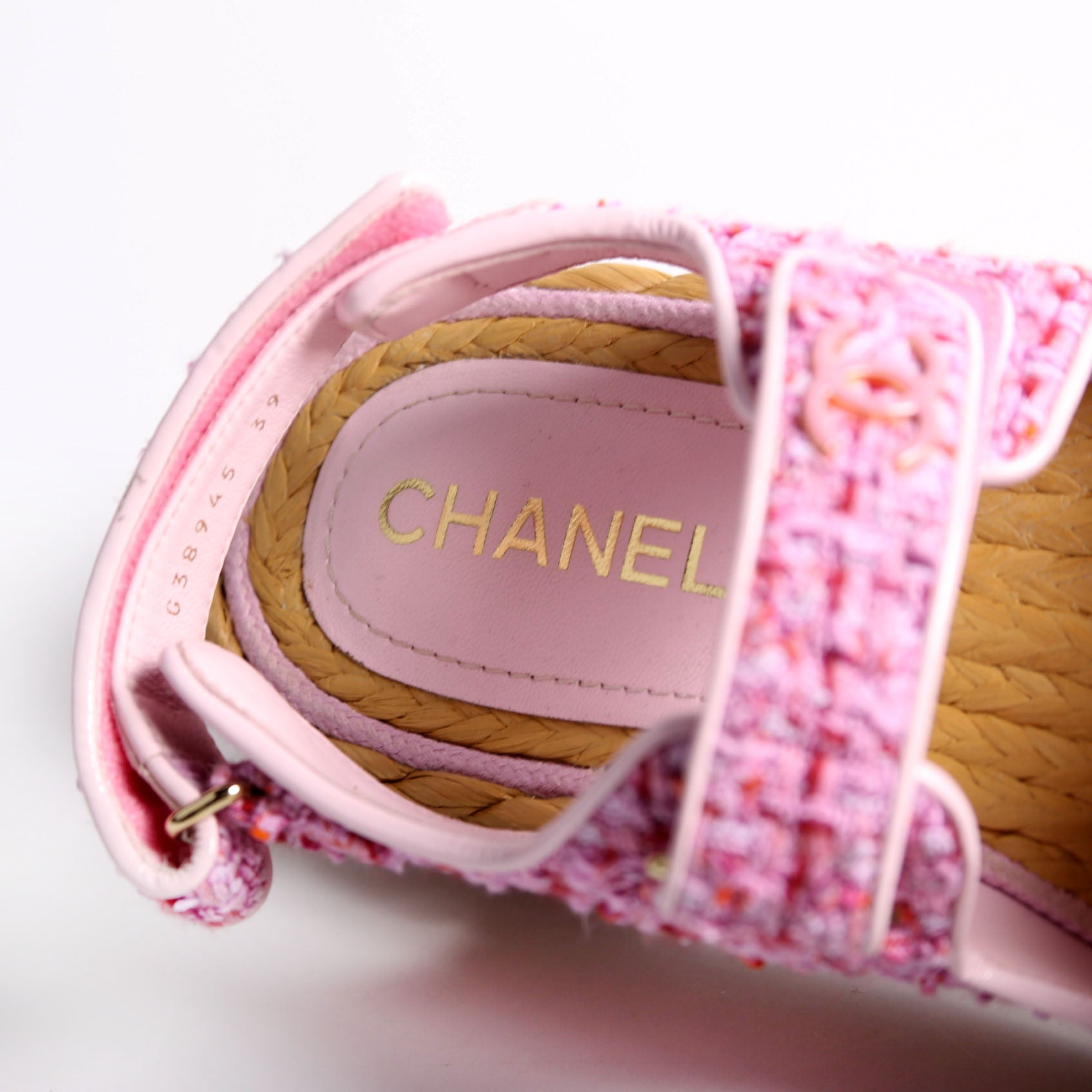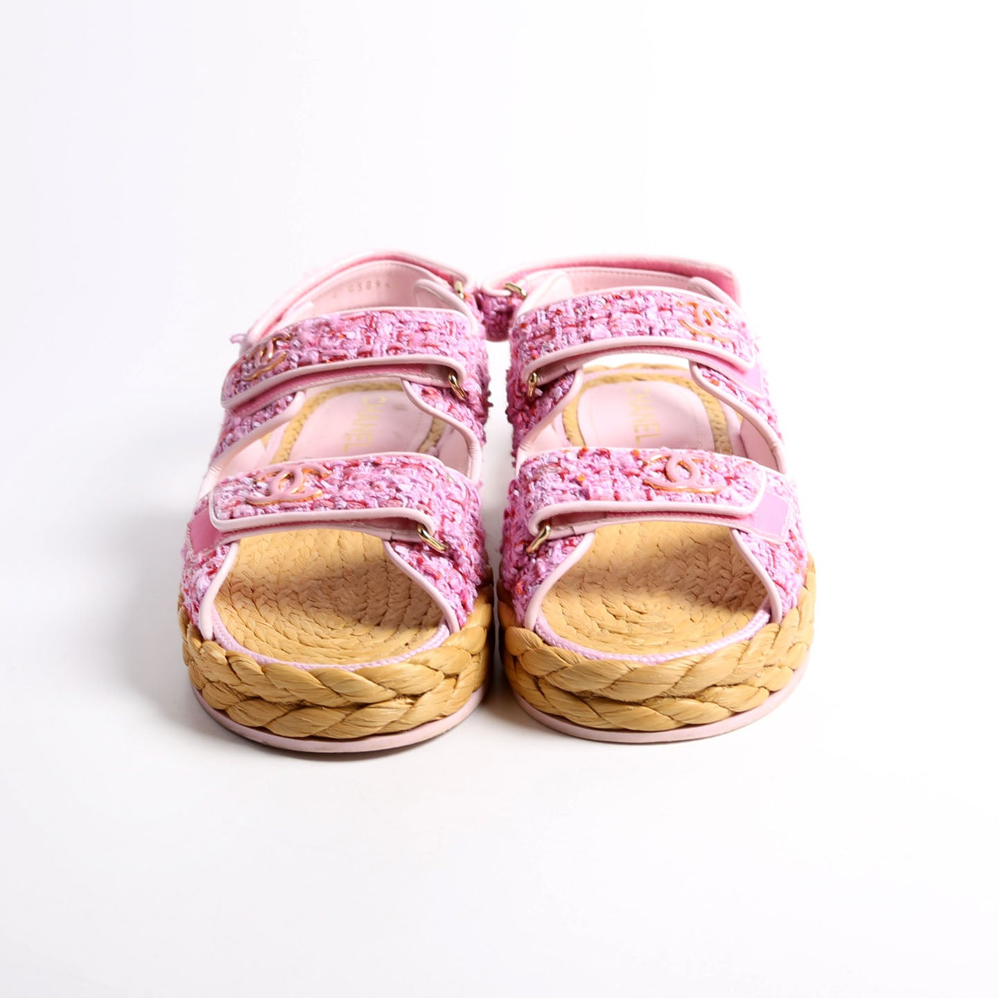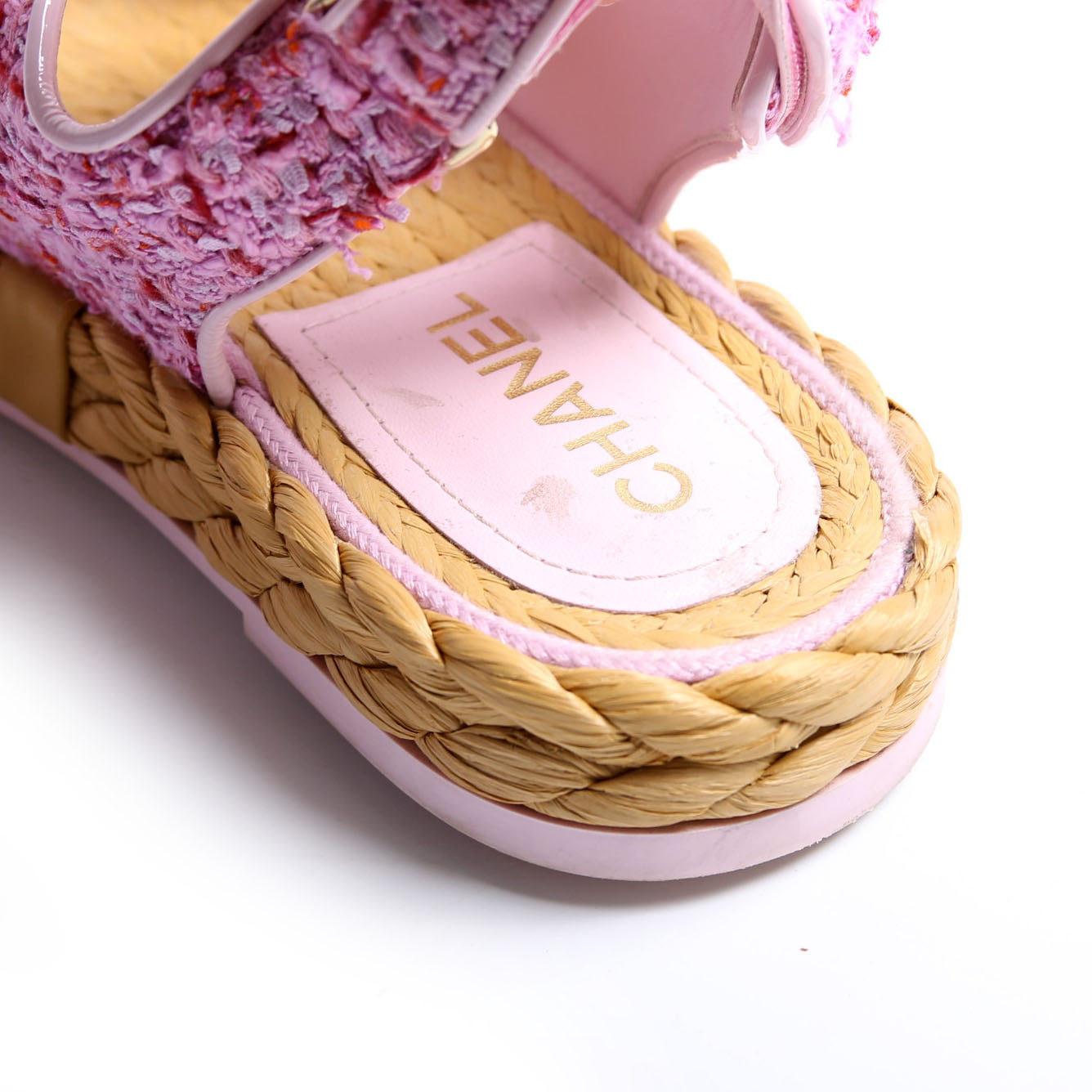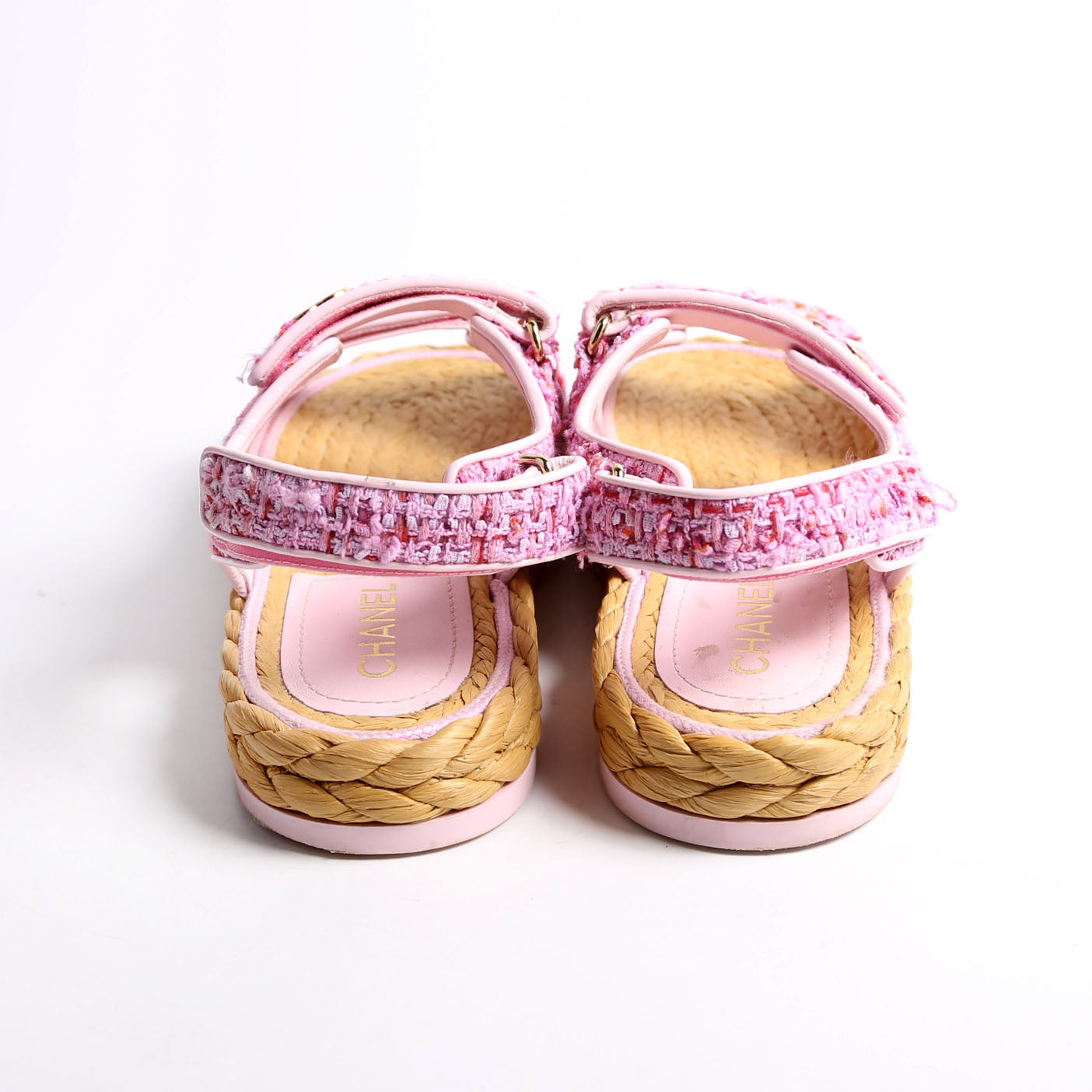 These pre-owned Chanel CC Tweed Dad Sandals are guaranteed 100% authentic.