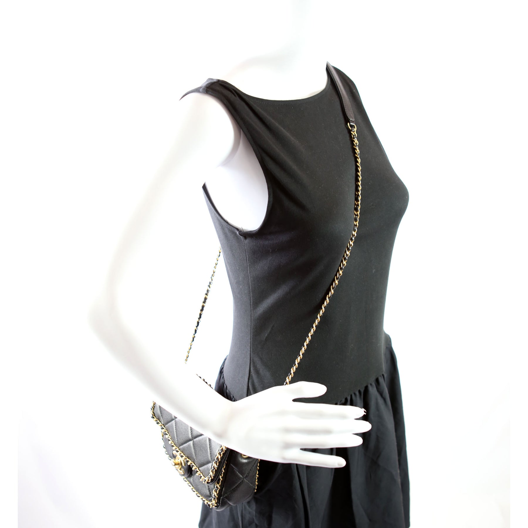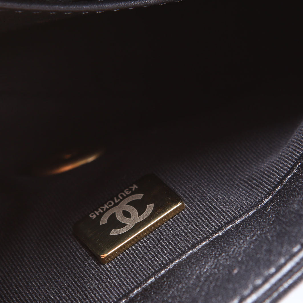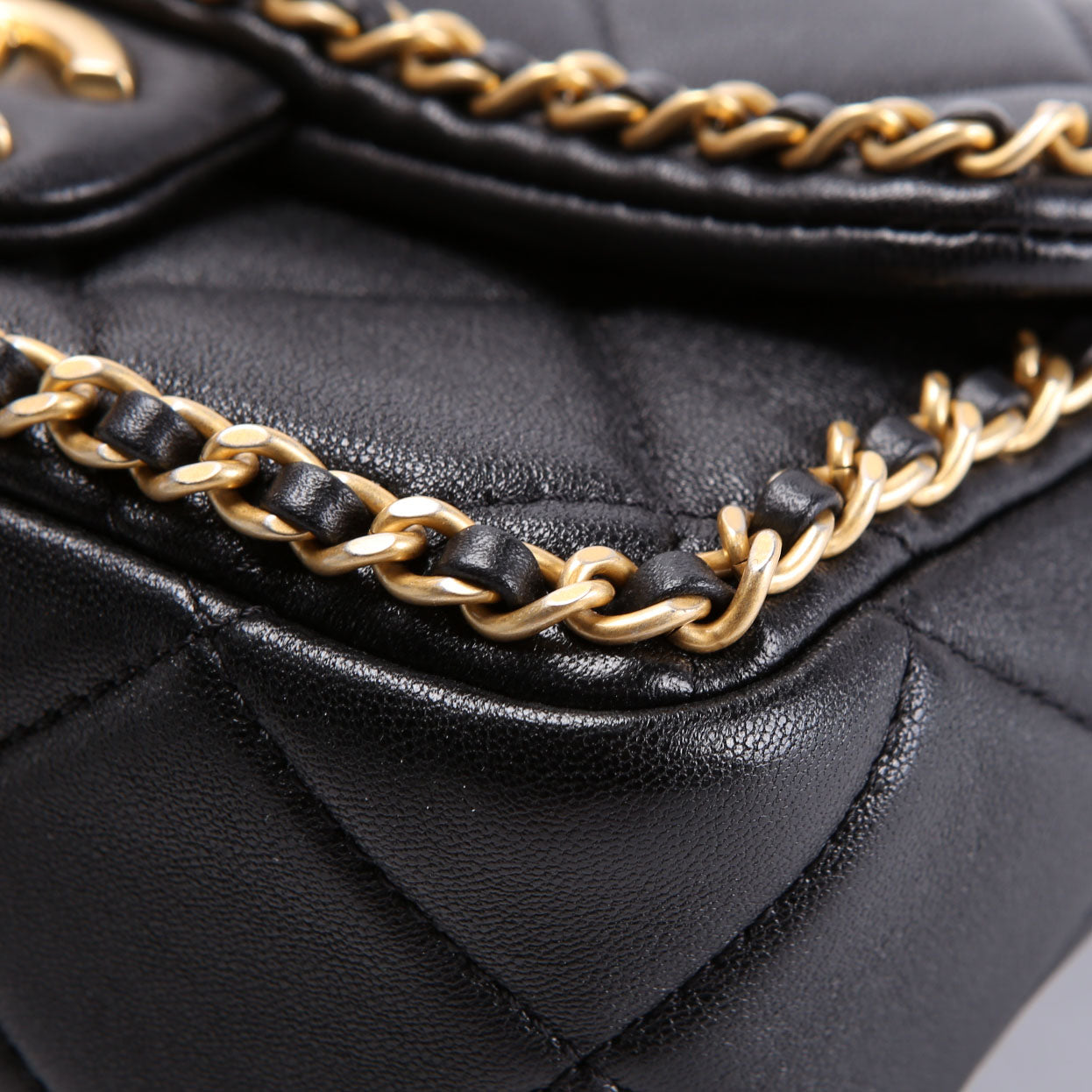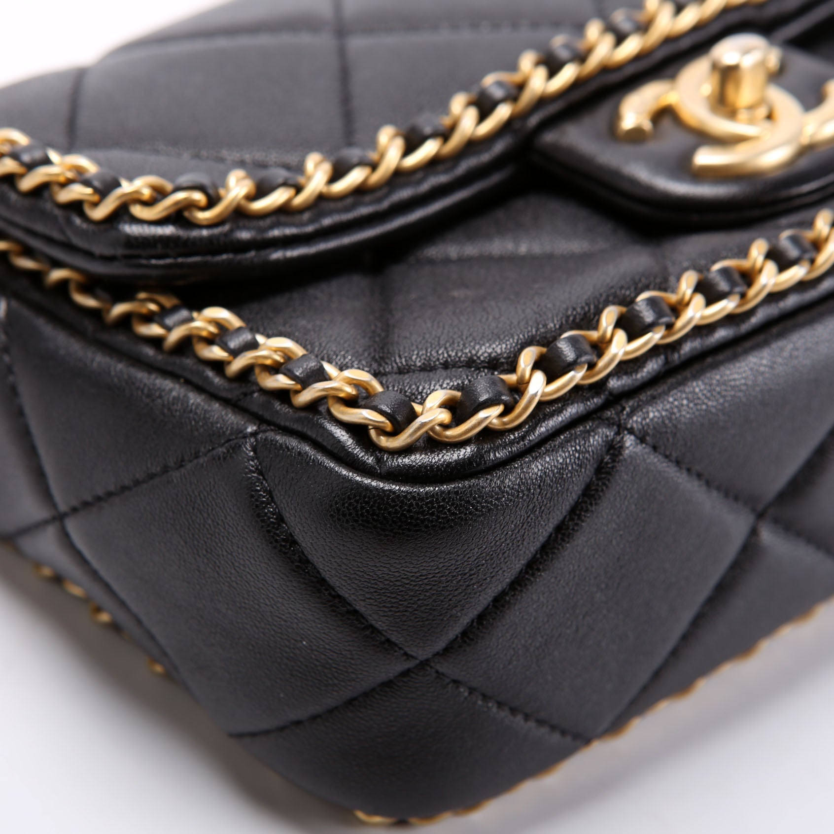 This pre-owned Chanel Chain Me Flap Small is guaranteed 100% authentic. The exterior is in the classic Chanel Lambskin Leather