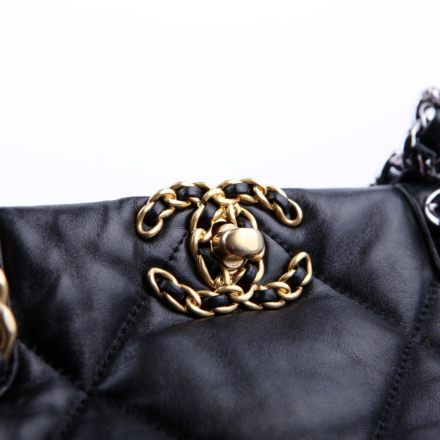 Chanel 19 Quilted Goatskin N/S Shopping Tote Black