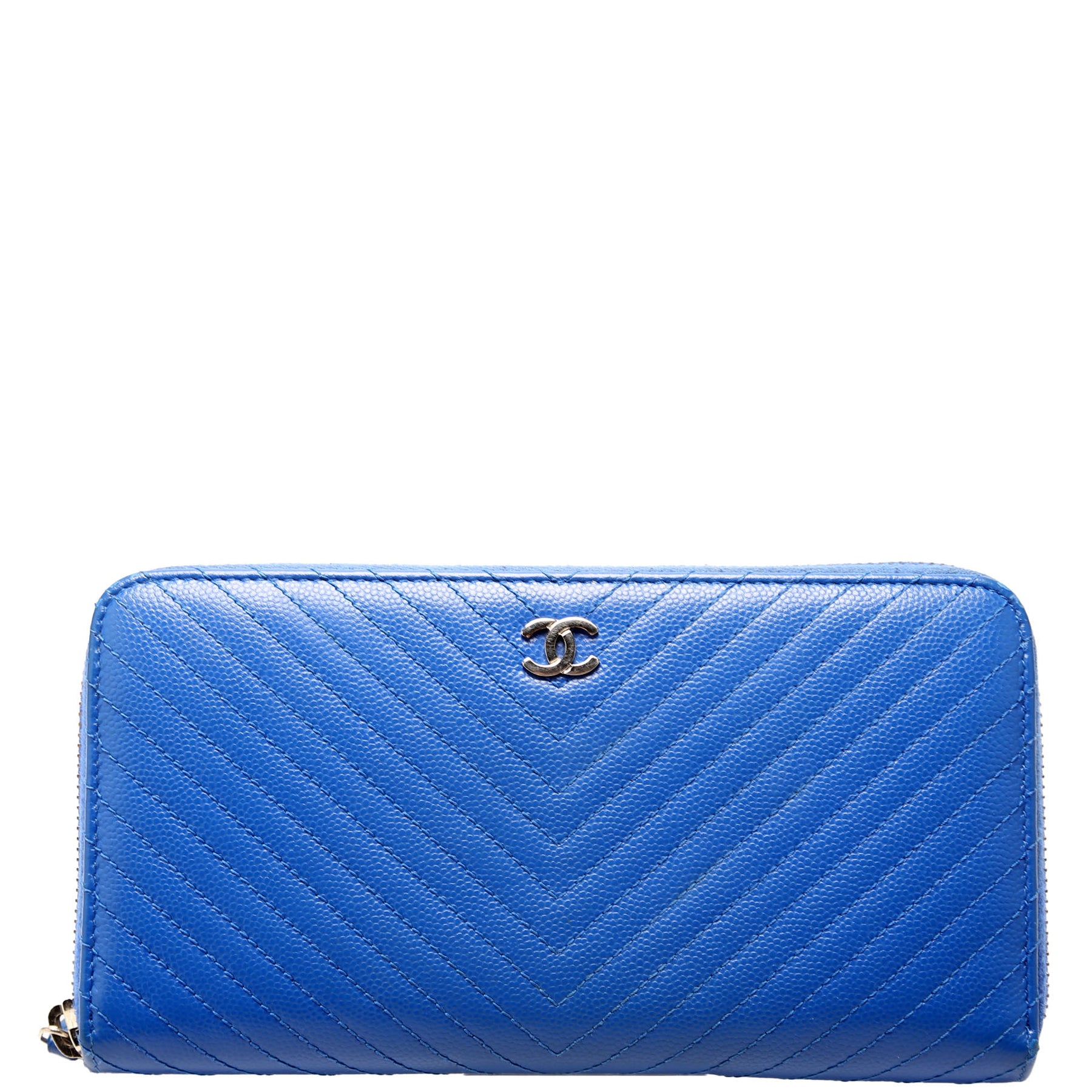 This pre-owned Chanel Chevron Zip Around Wallet is guaranteed 100% authentic. The exterior is in the classic Caviar leather.
