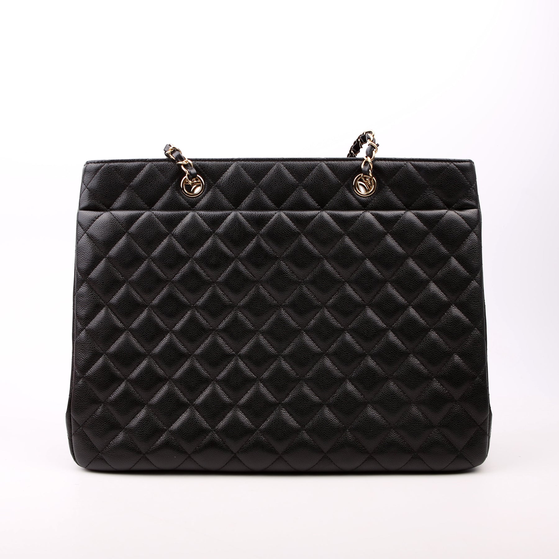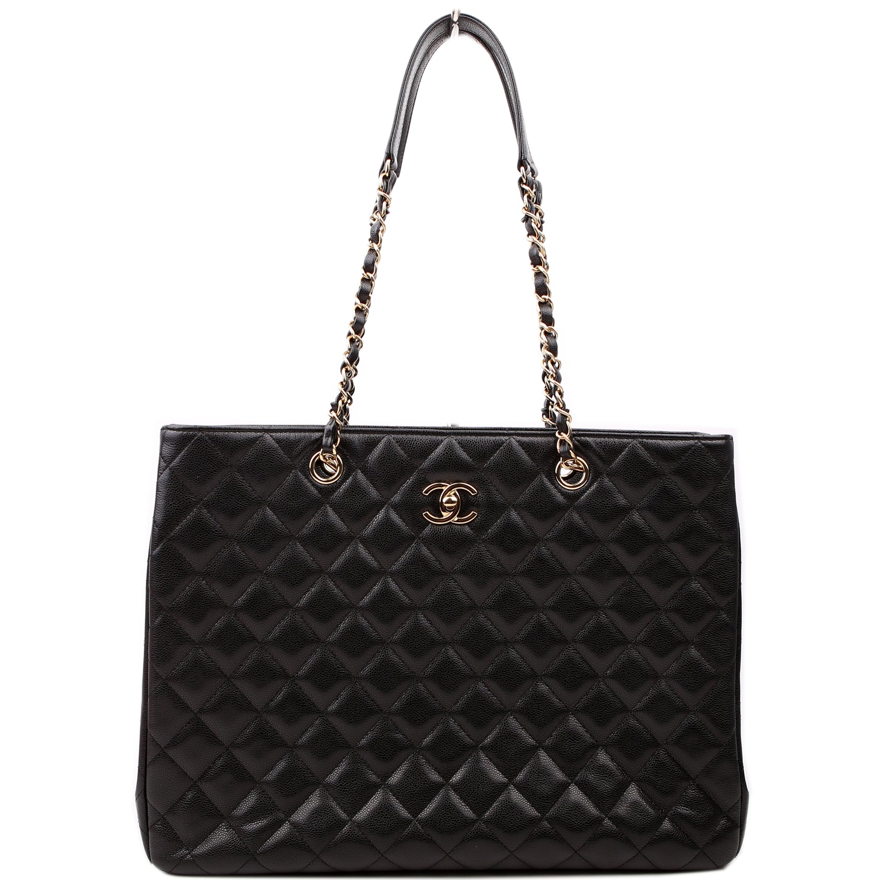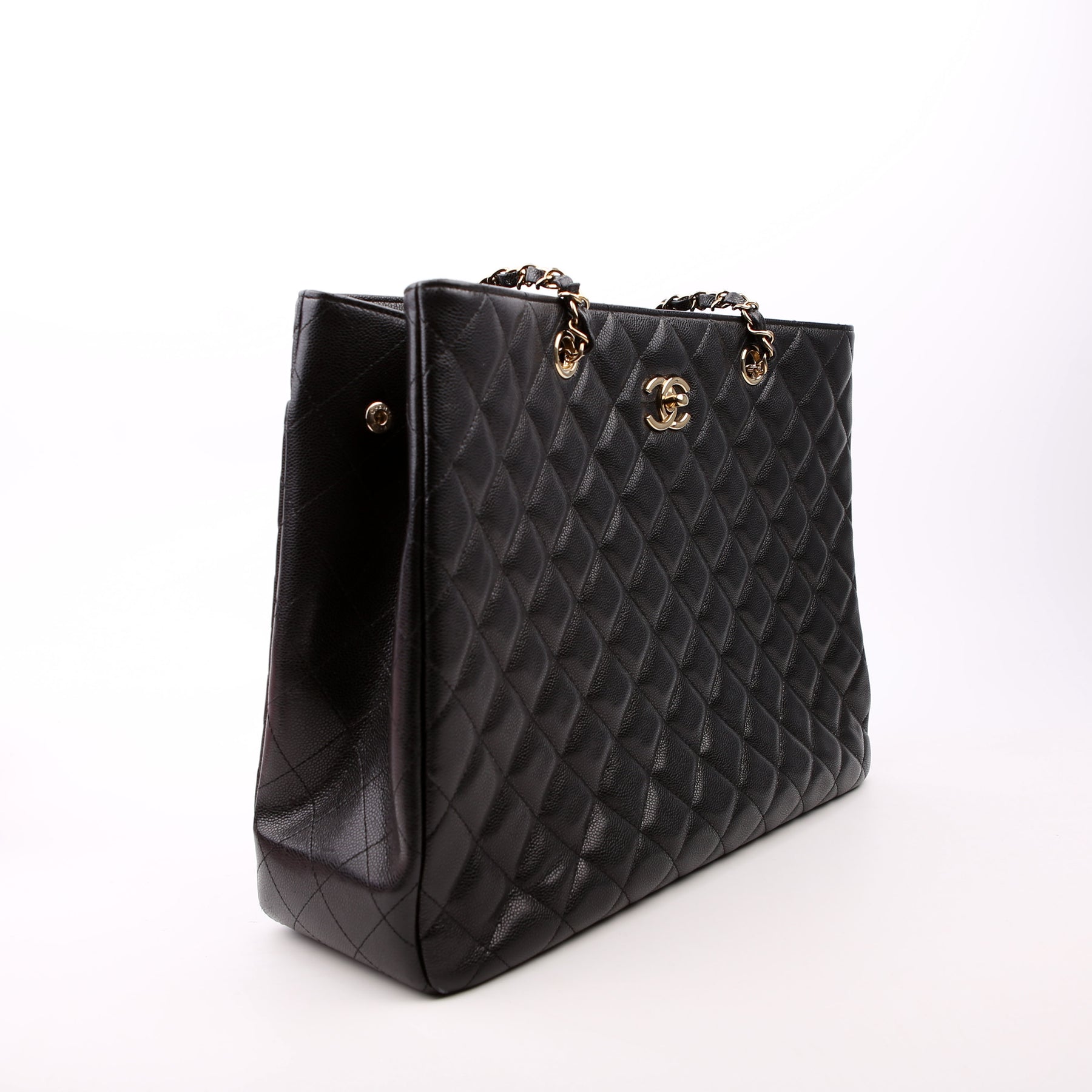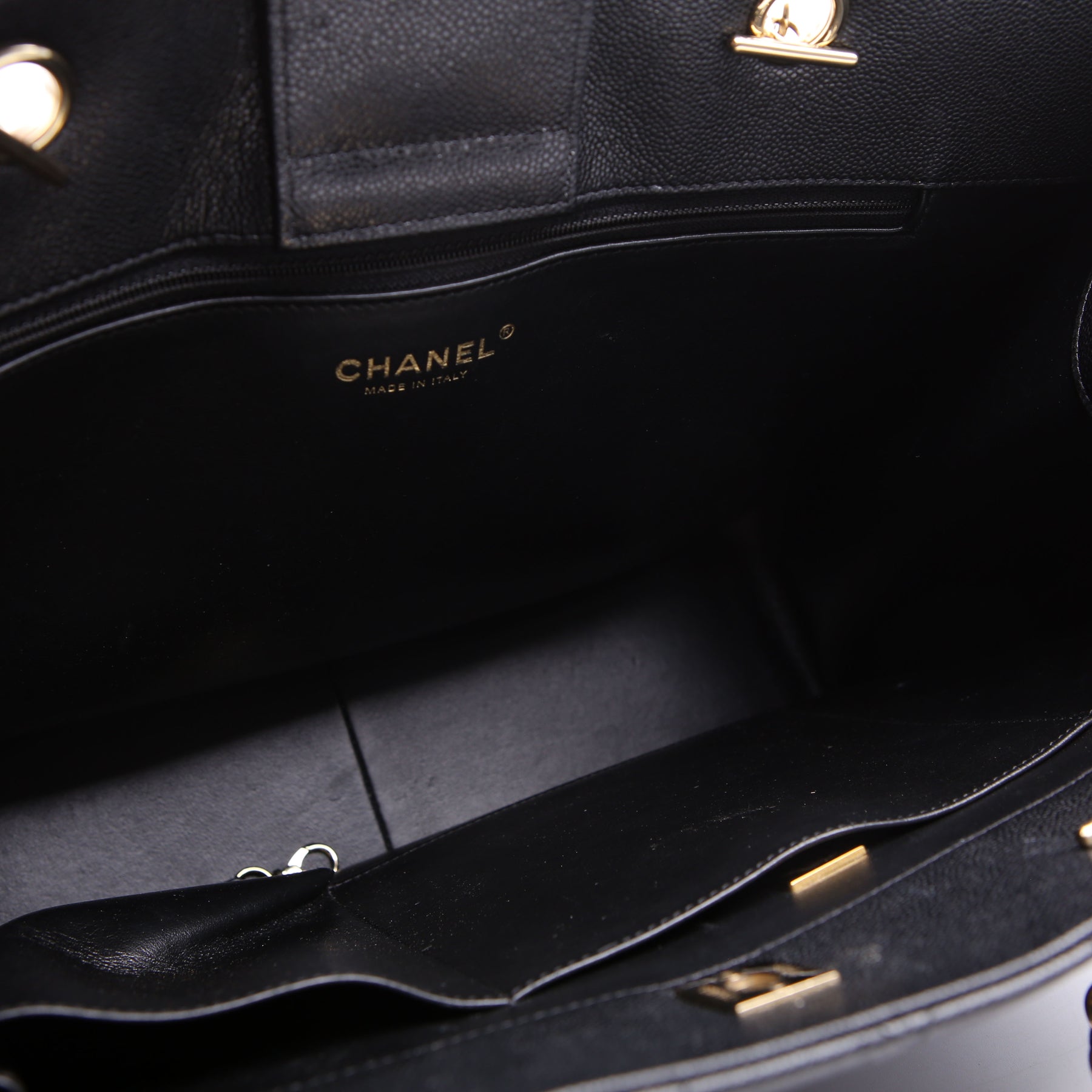 This pre-owned Chanel Classic CC Shopping Tote is guaranteed 100% authentic. The exterior is in the classic Chanel Caviar Leather.