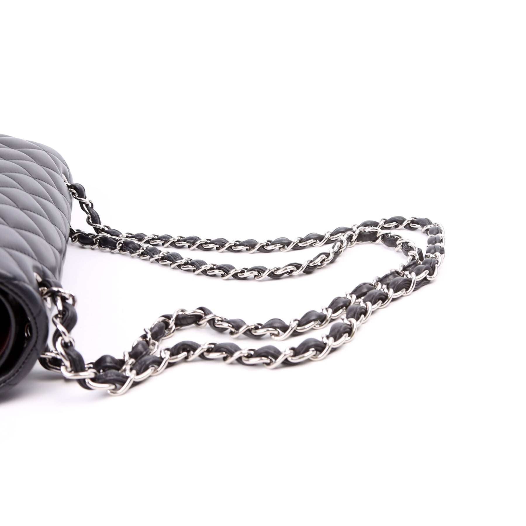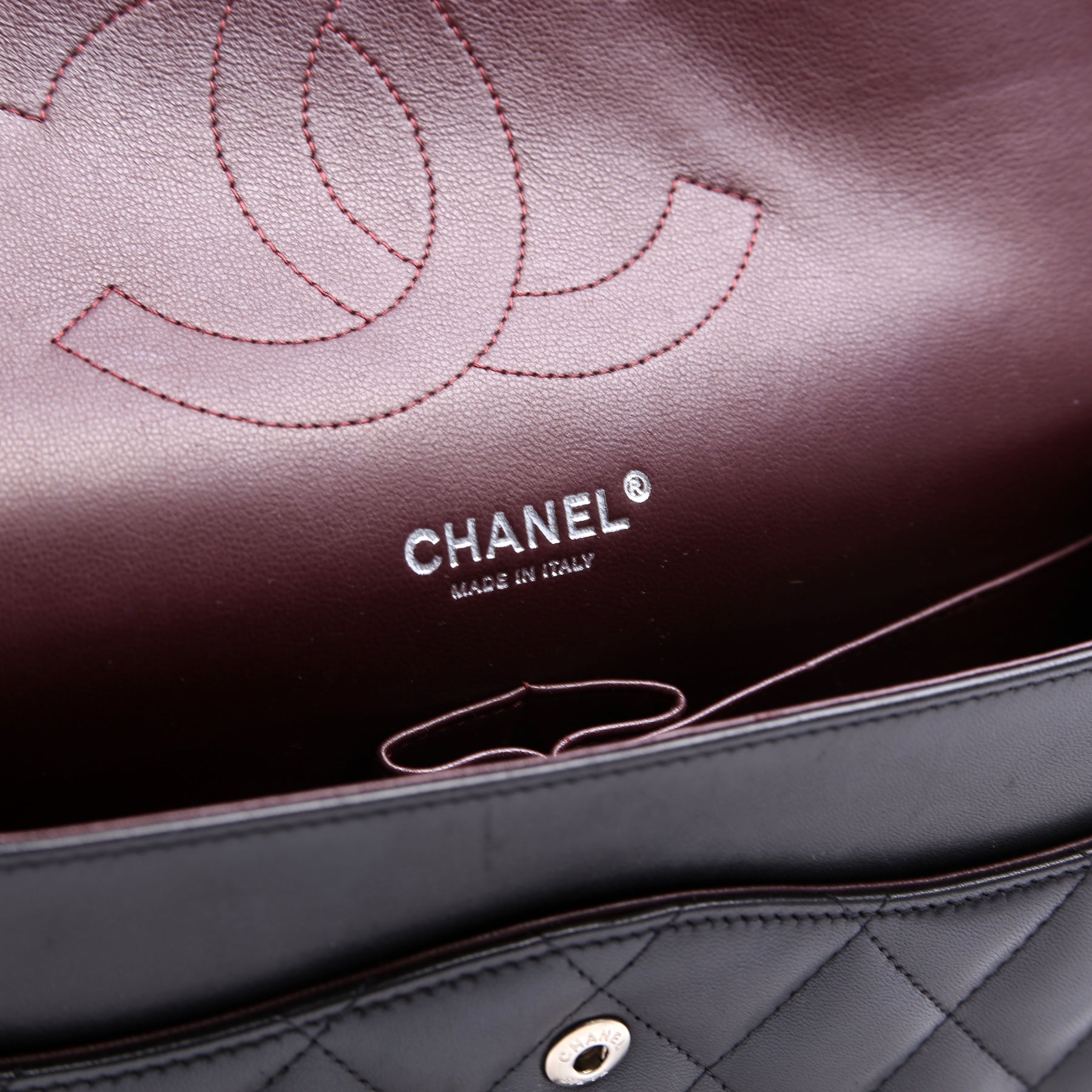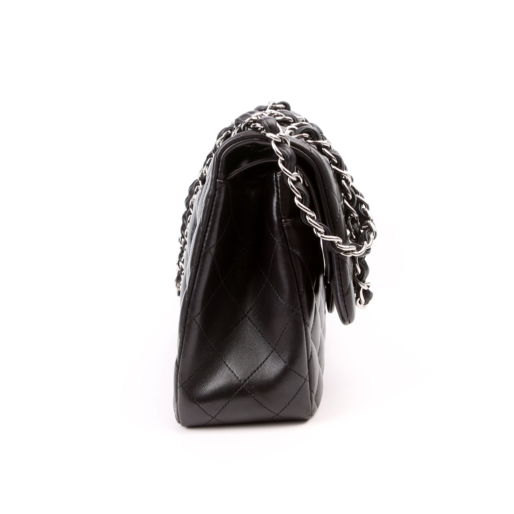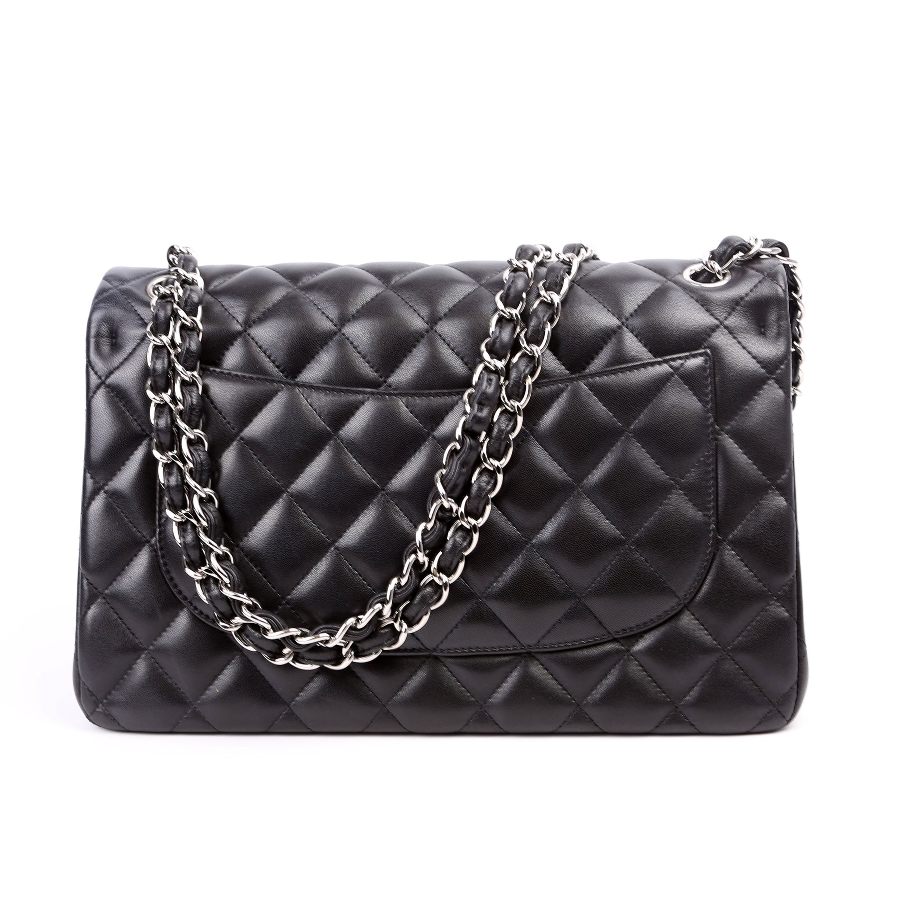 This pre-owned Chanel Classic Flap Jumbo is guaranteed 100% authentic. The exterior is in the classic Chanel Lambskin Leather.