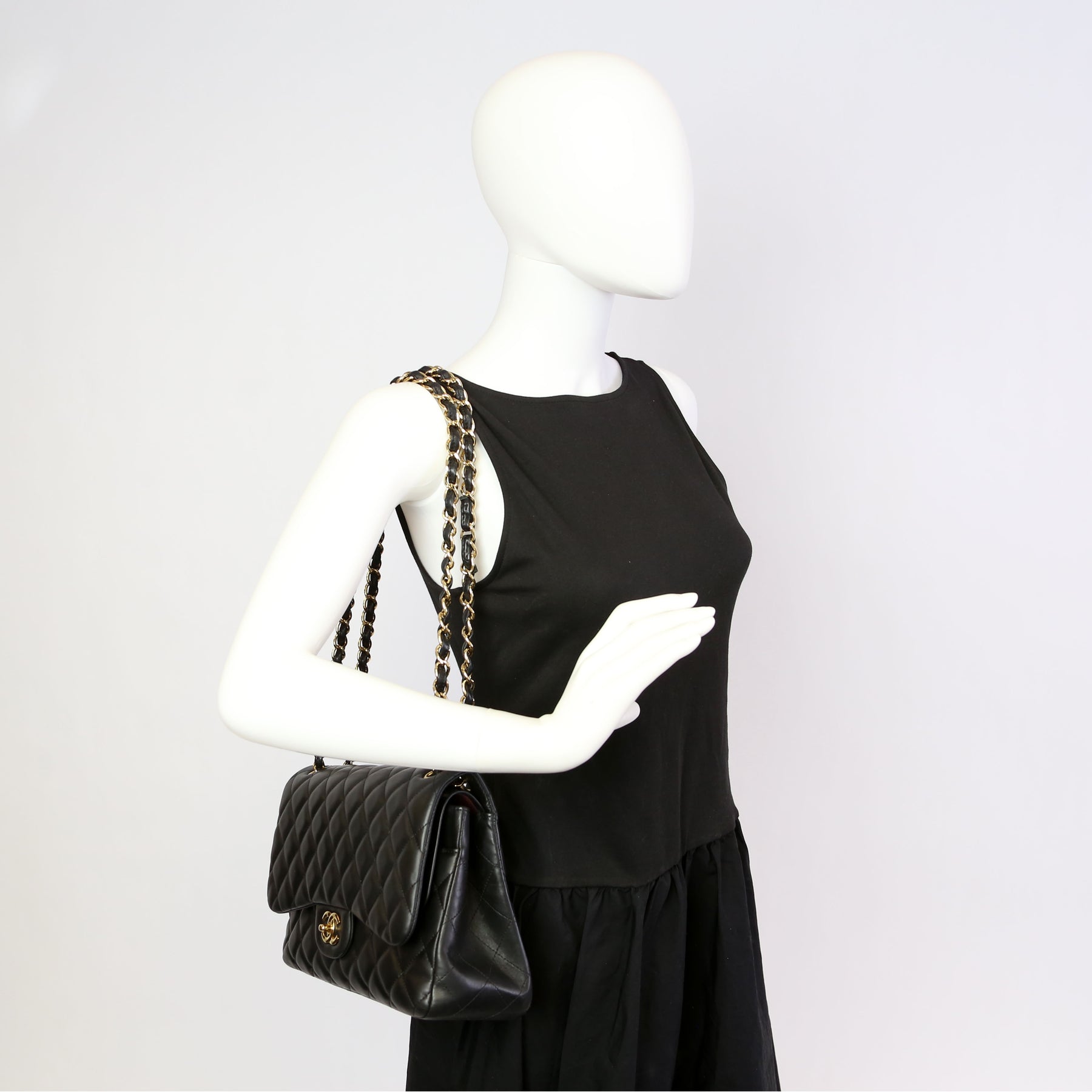 This pre-owned Chanel Classic Flap Jumbo is guaranteed 100% authentic. The exterior is in the classic Chanel Caviar leather.