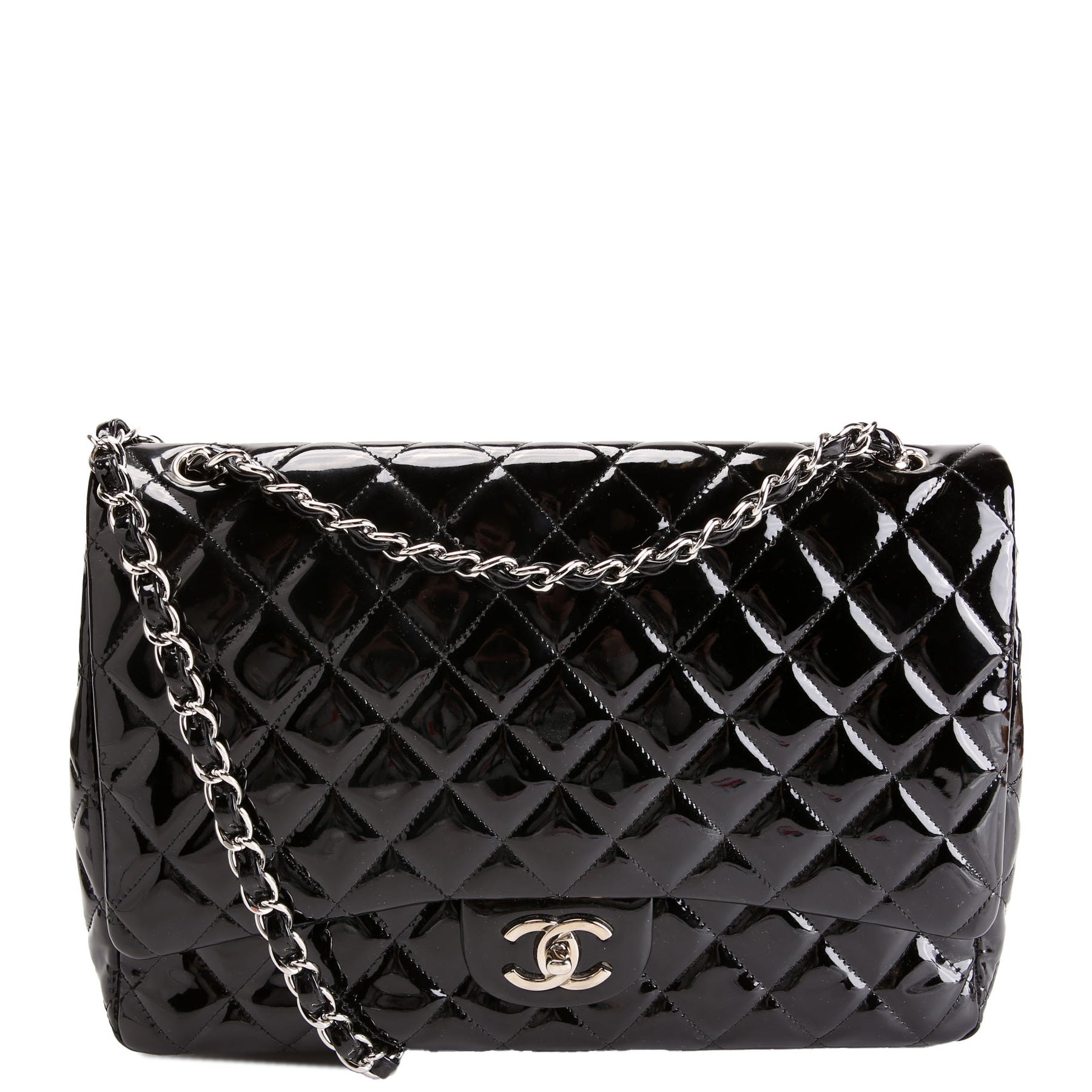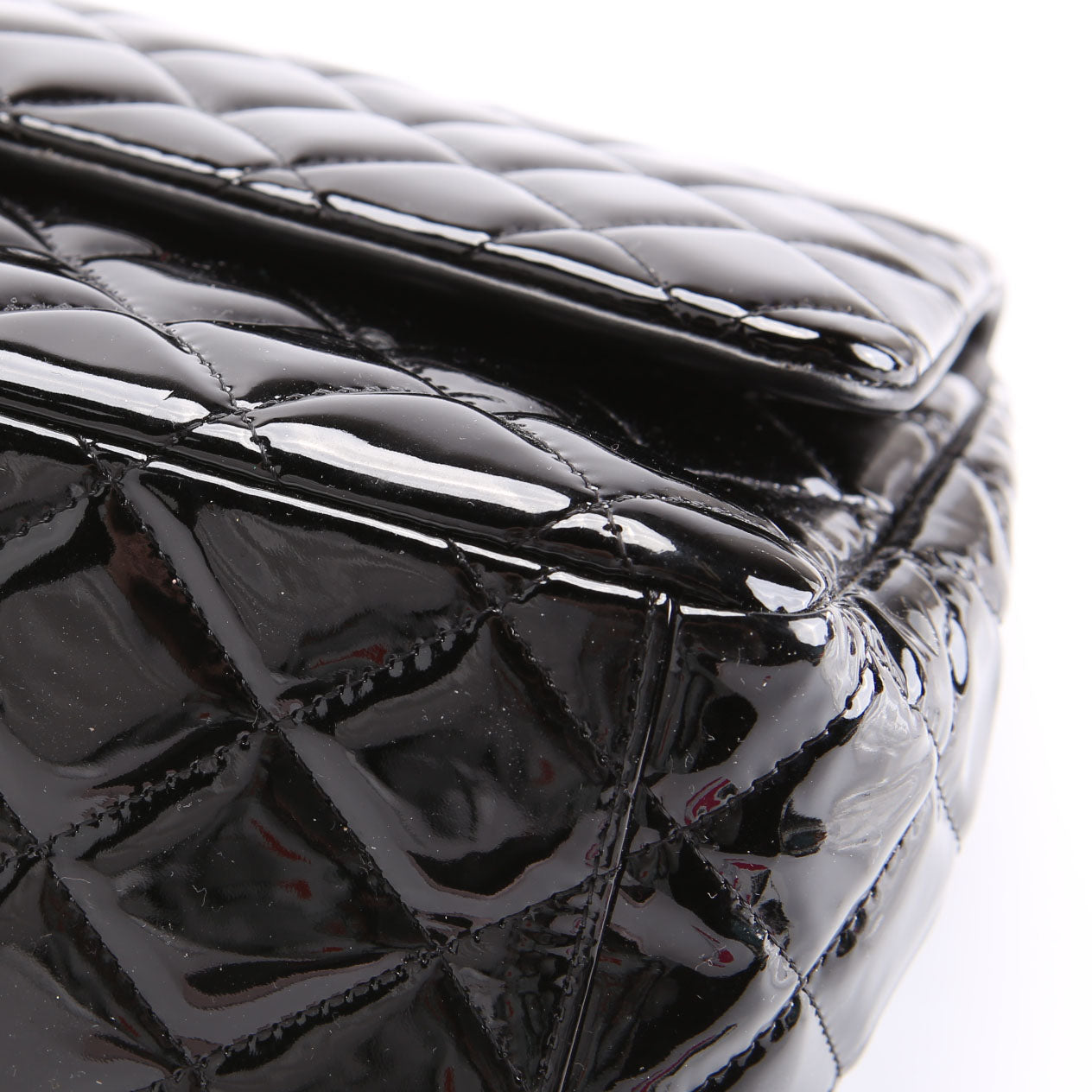 This pre-owned Chanel Classic Flap Max OTH is guaranteed 100% authentic. The exterior is in the classic Chanel Patent leather.