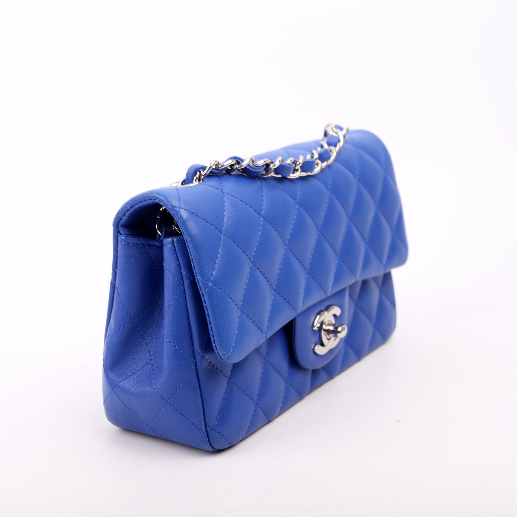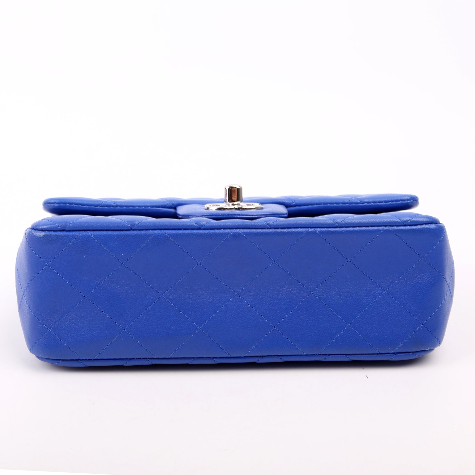 This pre-owned Chanel Classic Flap Mini Rectangle is guaranteed 100% authentic. The exterior is in the classic Chanel Lambskin leather.
