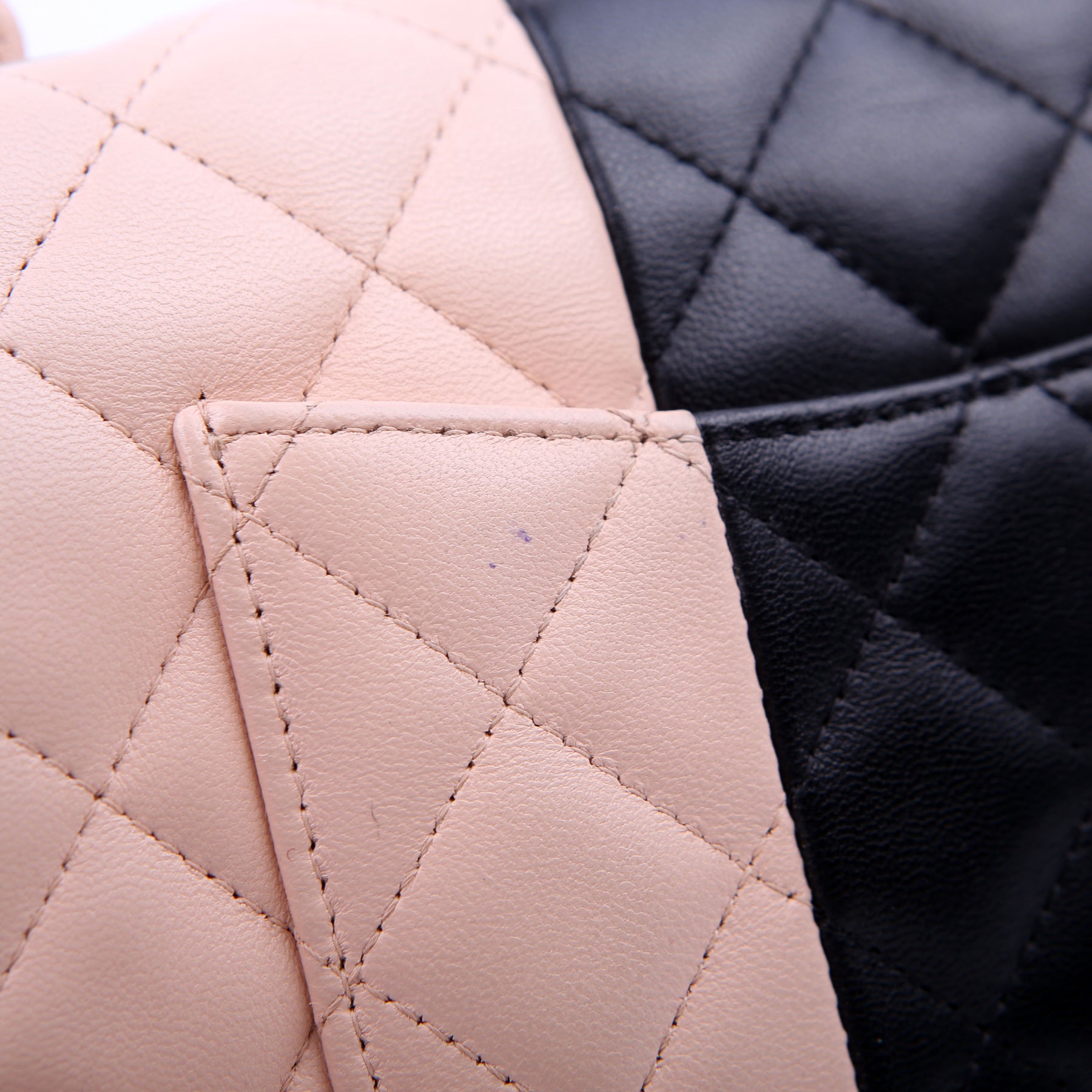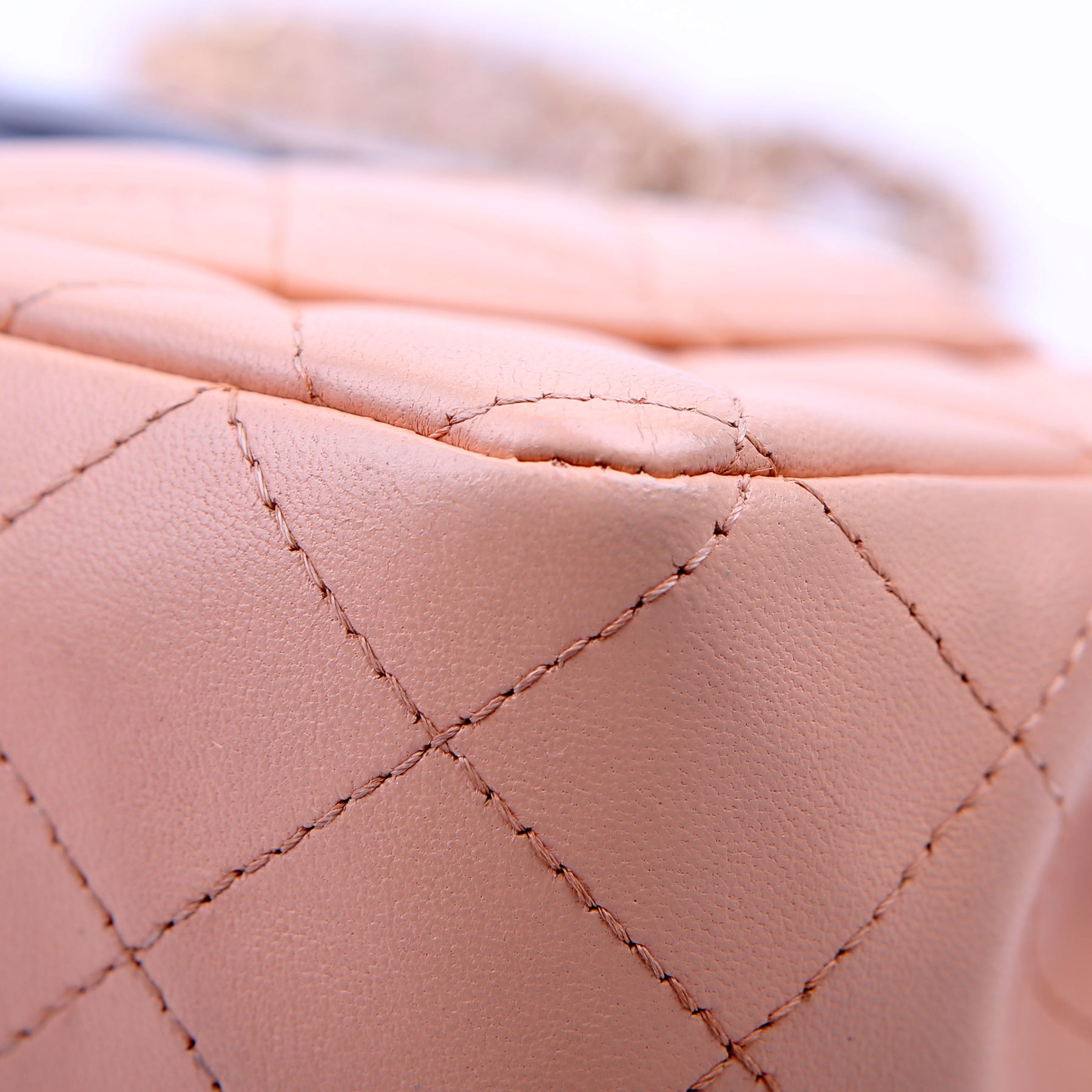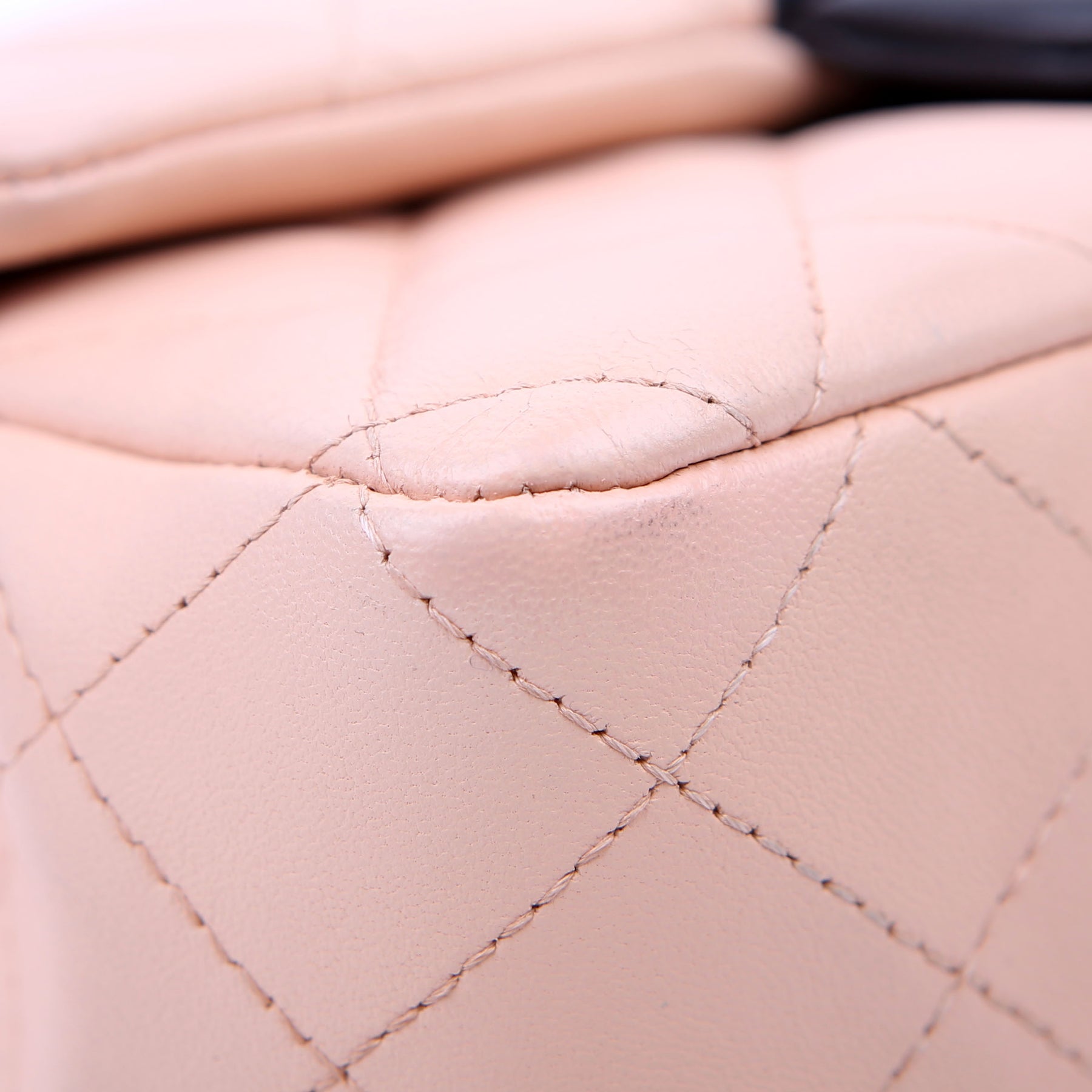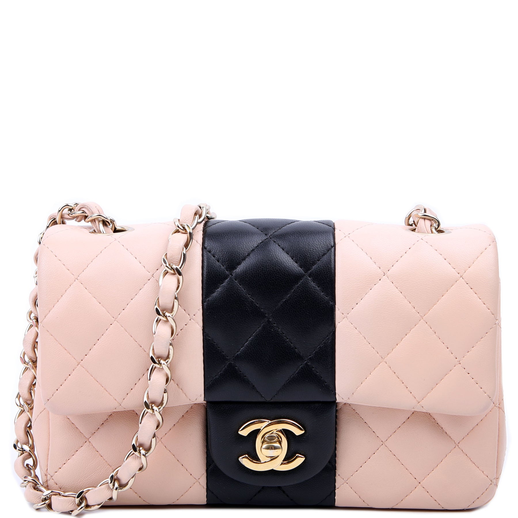This pre-owned Chanel Classic Flap Mini Rectangle is guaranteed 100% authentic. The exterior is in the classic Chanel Lambskin leather.
