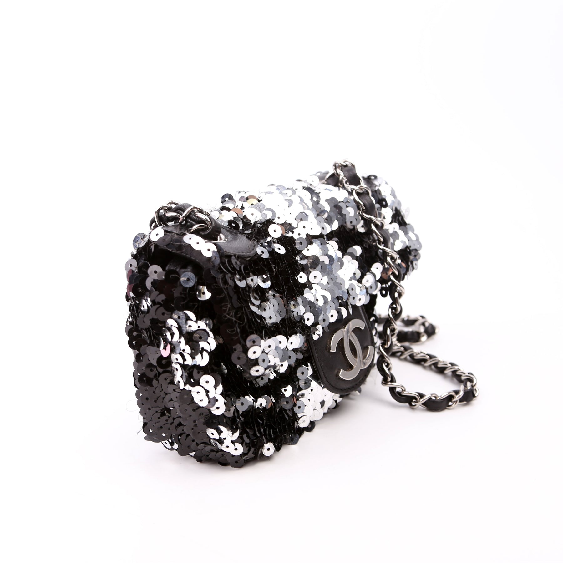 Classic Flap Mini Rectangle Sequin 12M Black/Silver