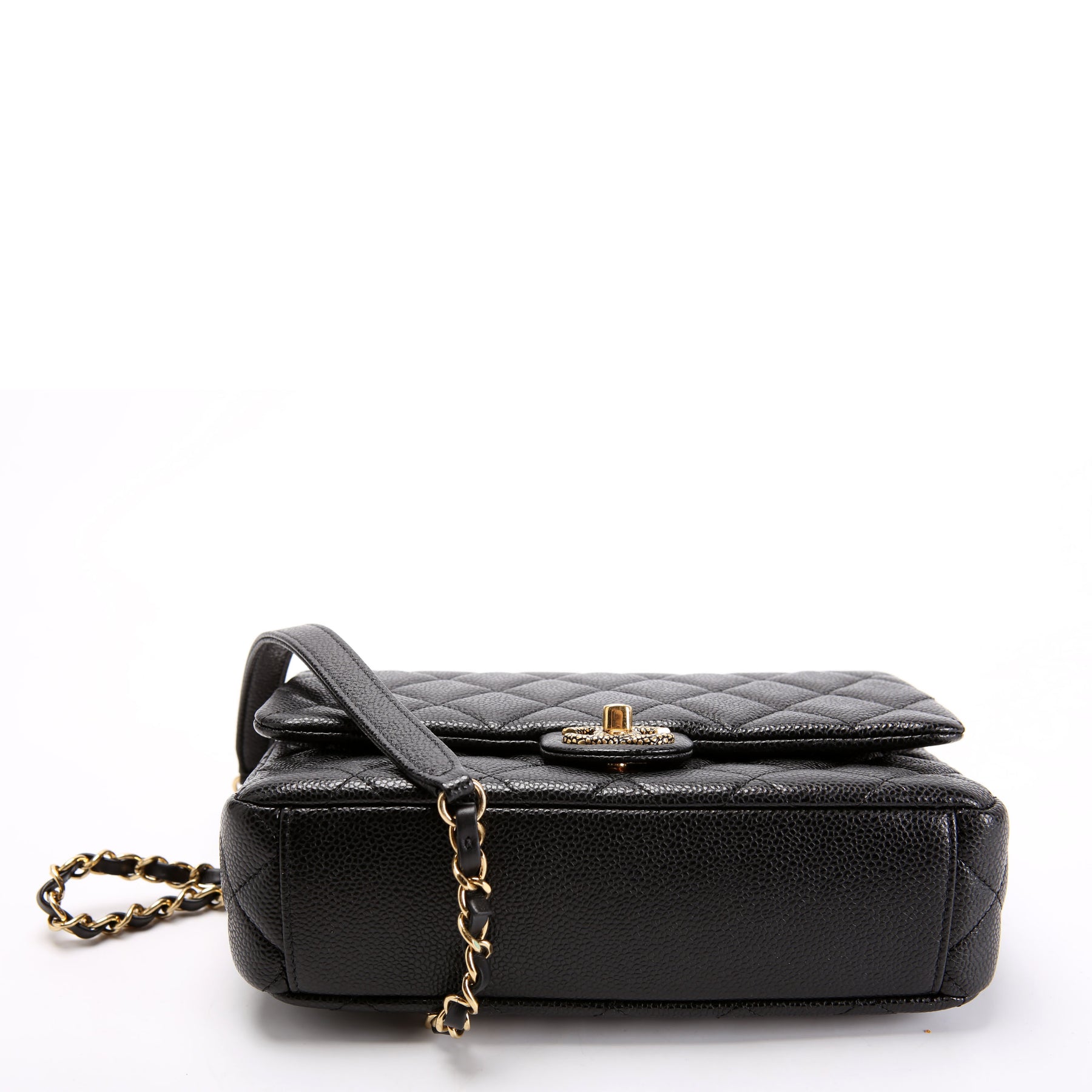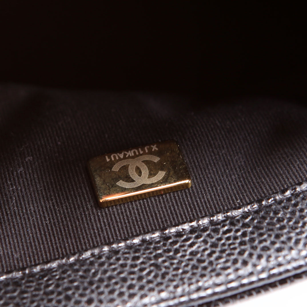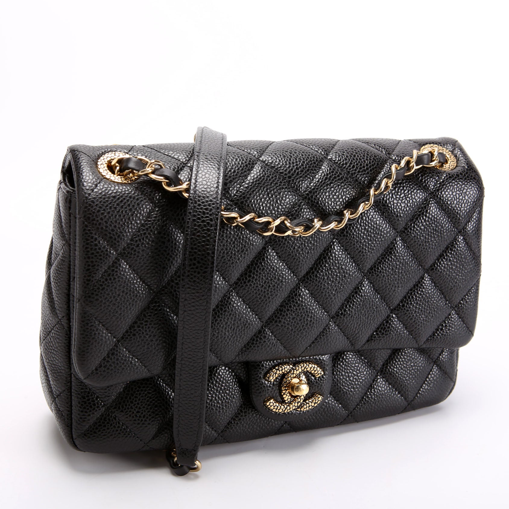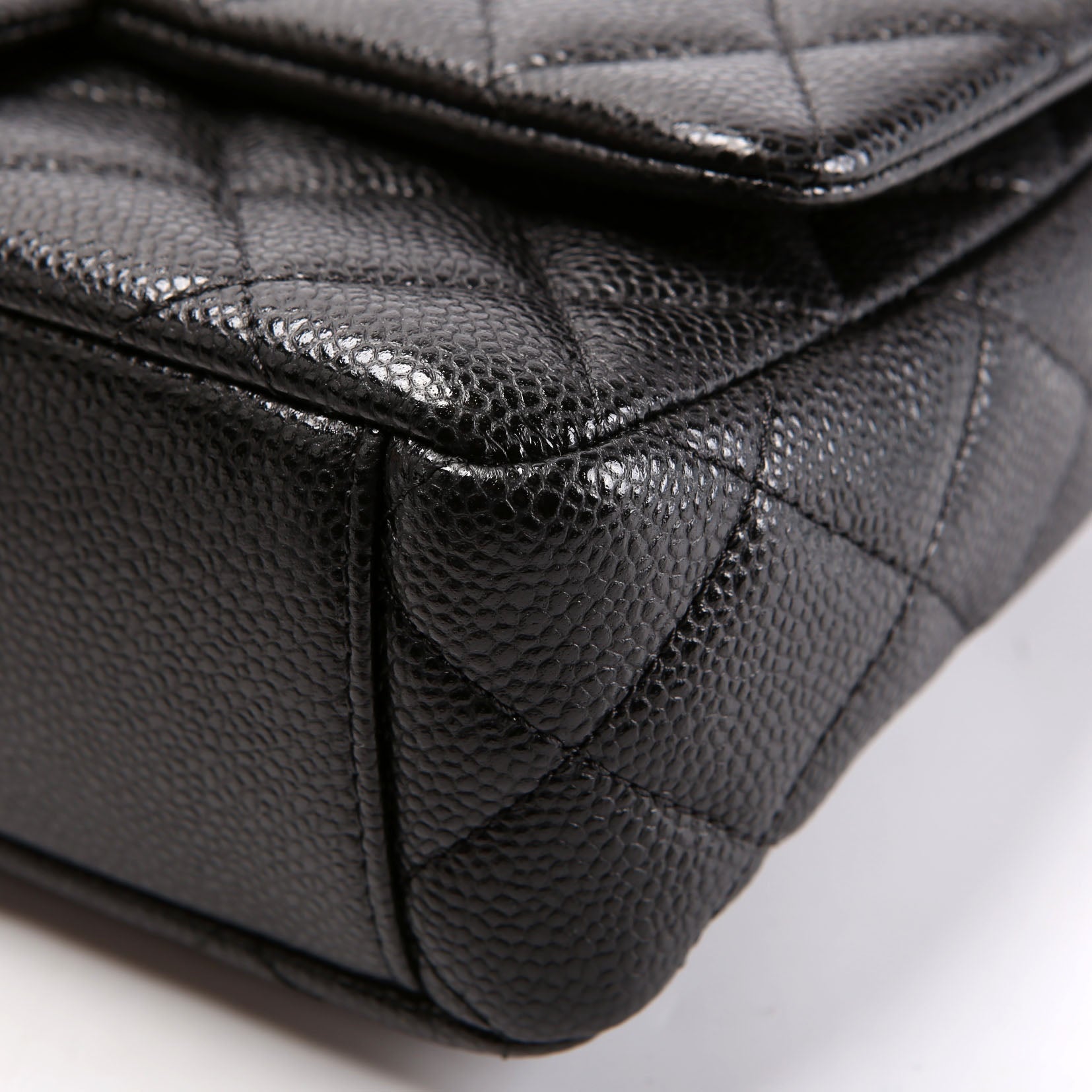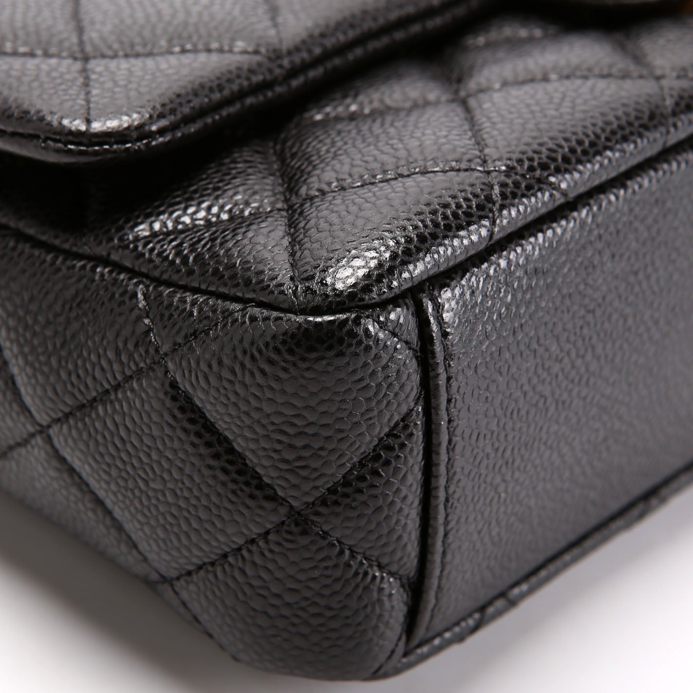 This pre-owned Chanel Classic Flap Small is guaranteed 100% authentic. The exterior is in the classic Chanel Caviar Leather.