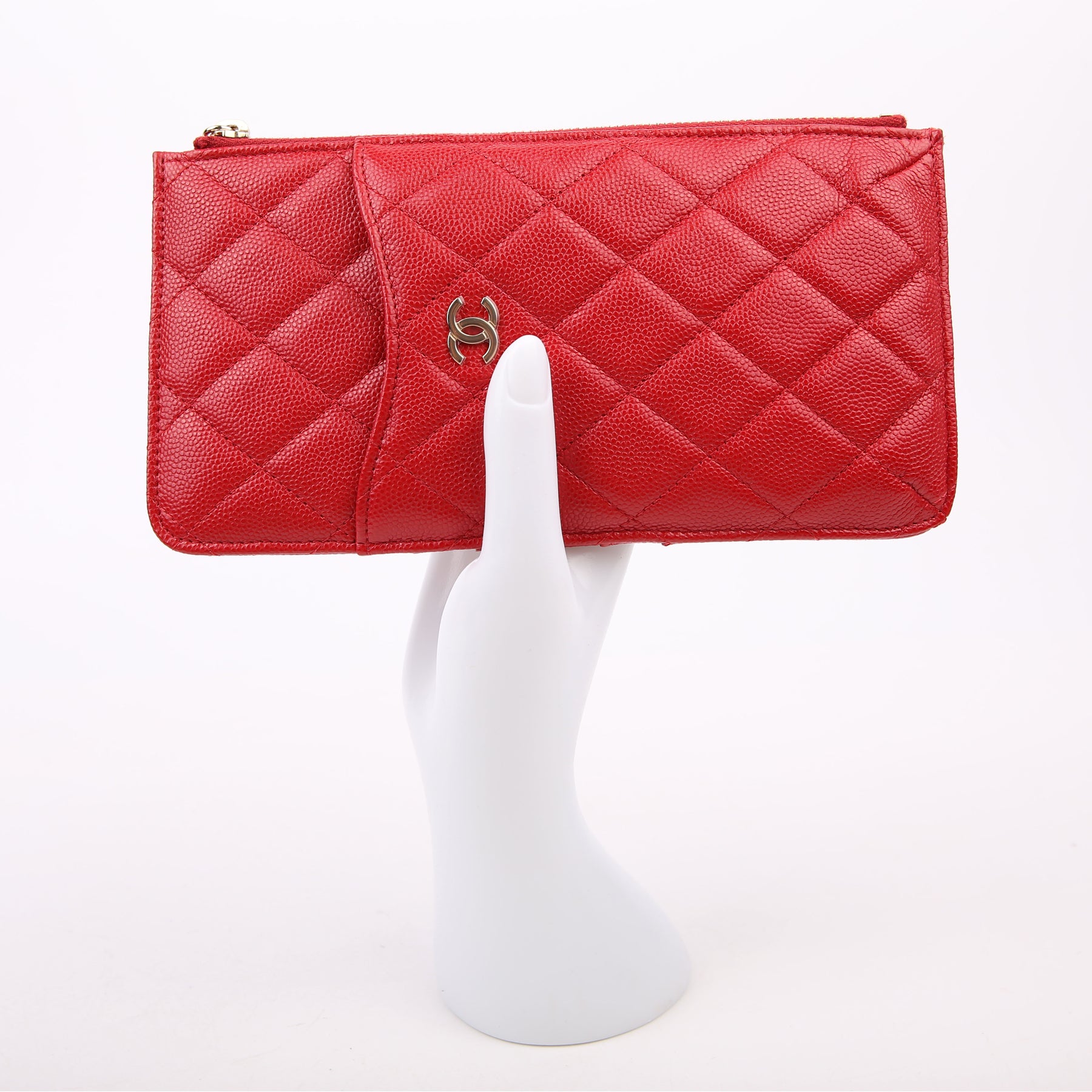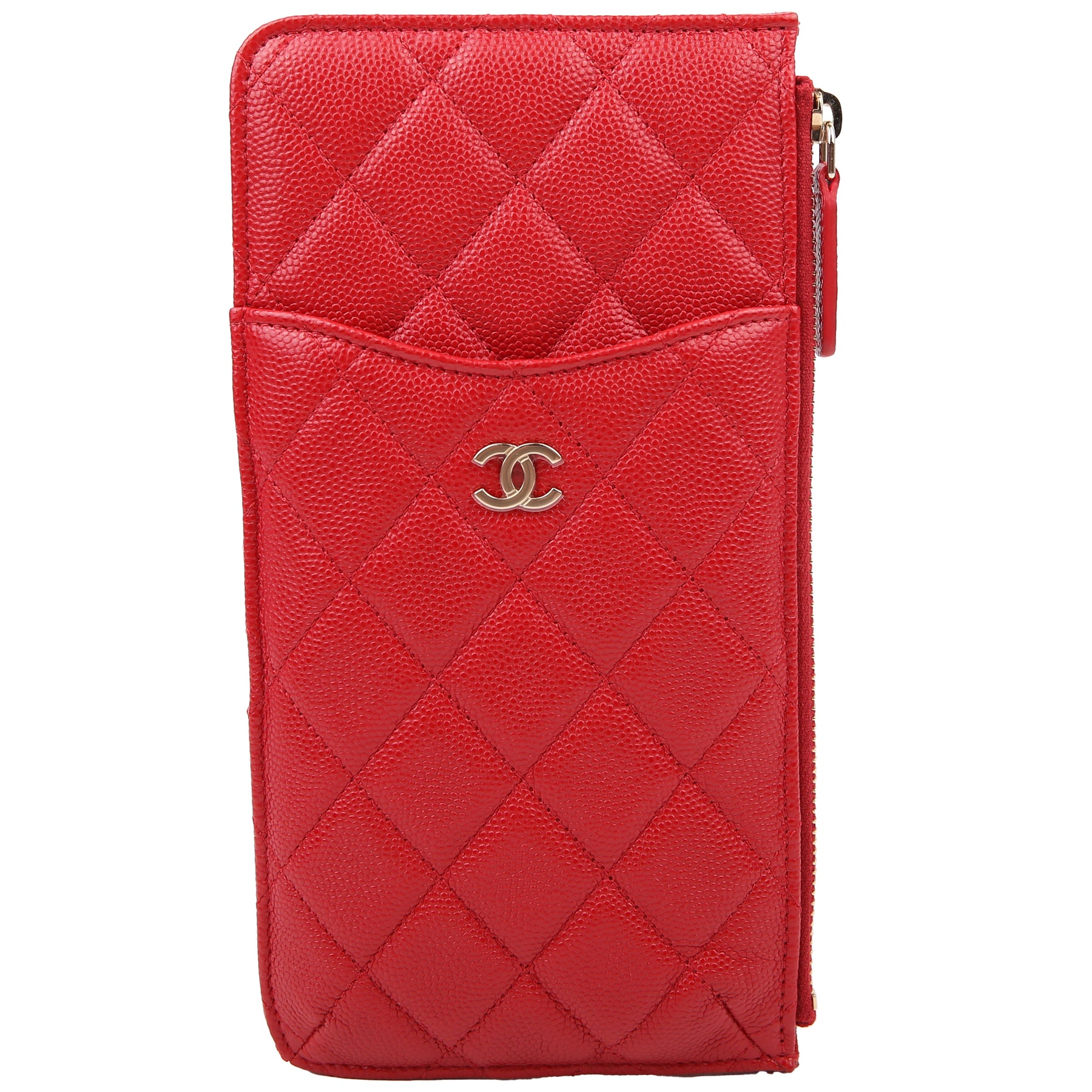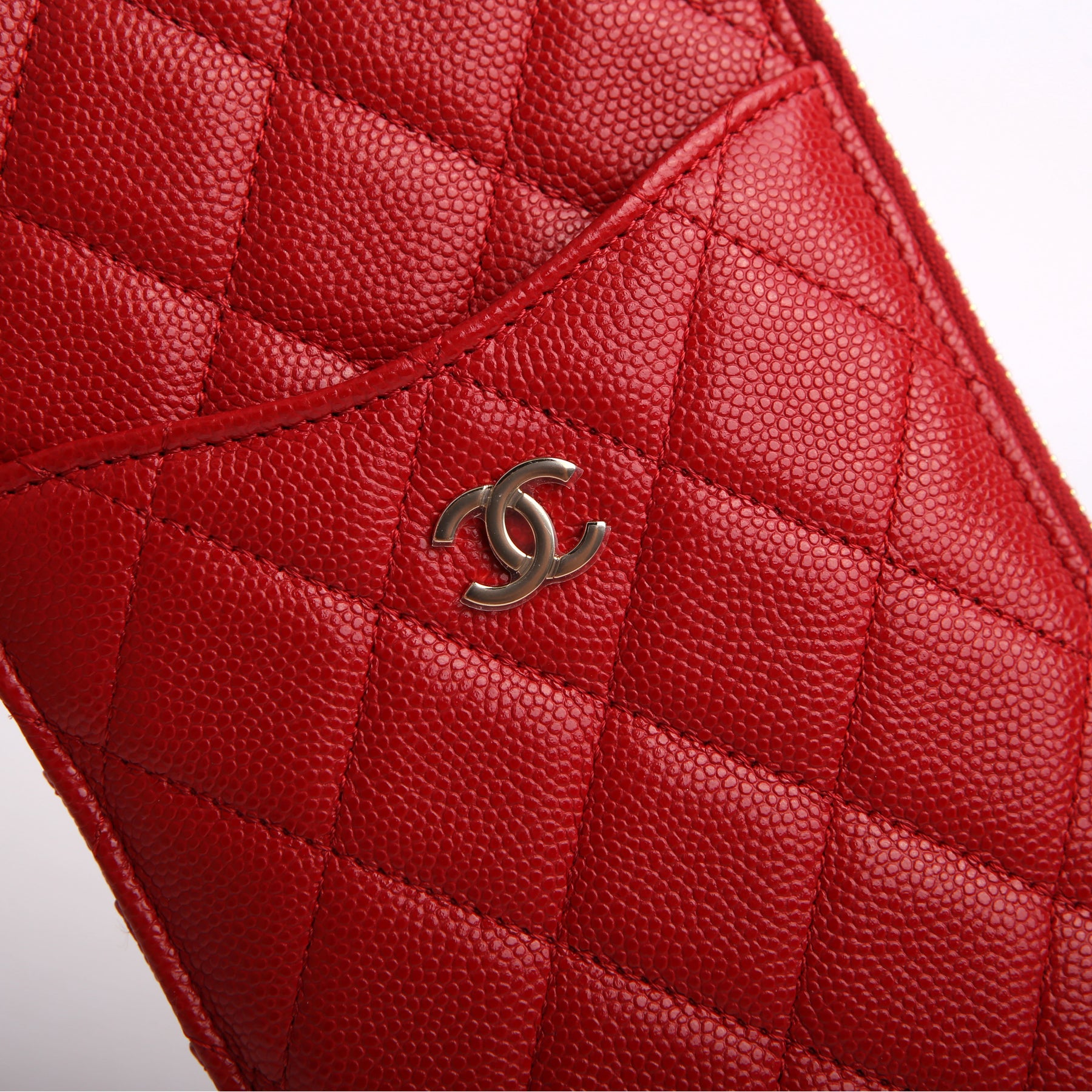 This pre-owned Chanel Classic Flap Wallet Phone Pouch is guaranteed 100% authentic.
