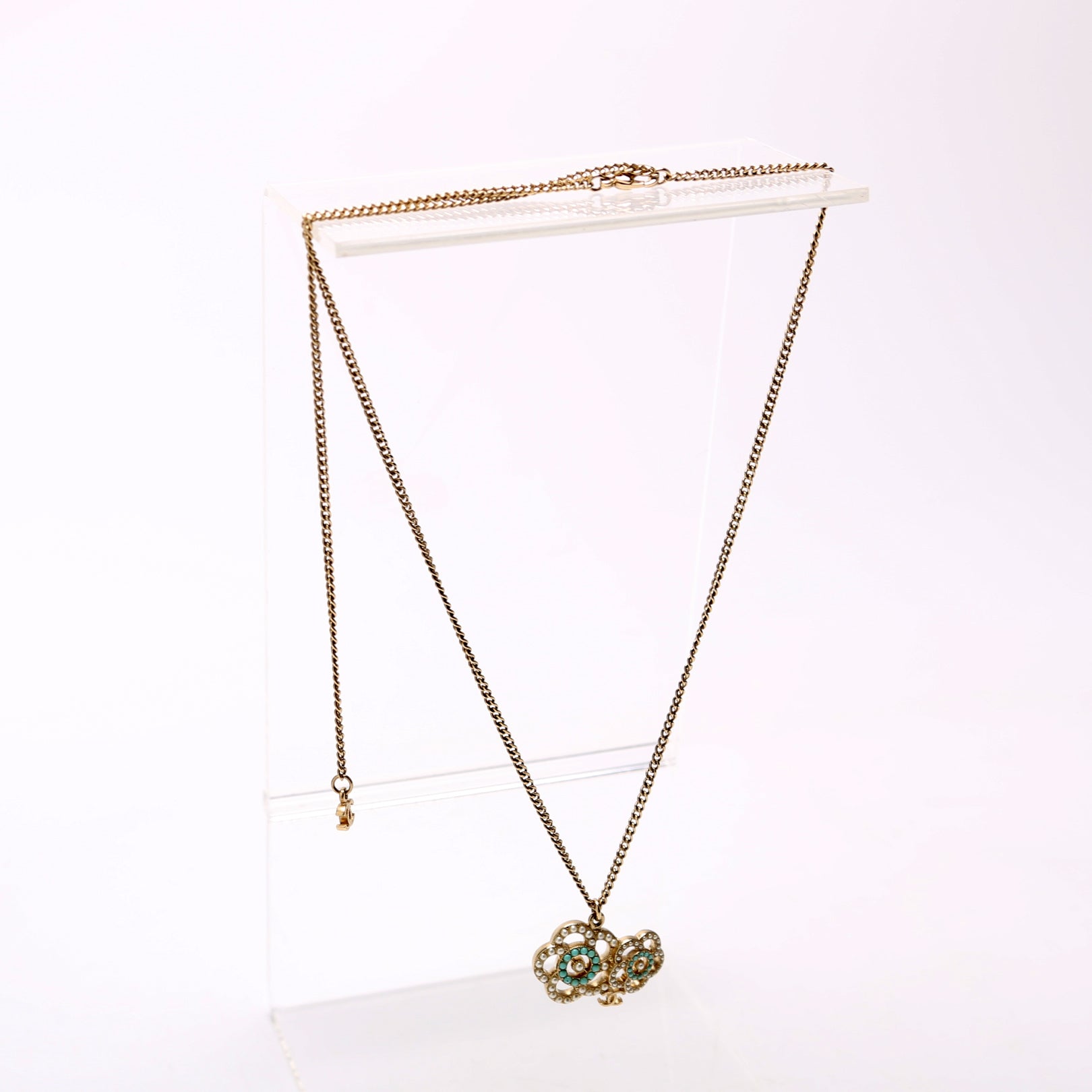 This pre-owned Chanel Coco Camelia Necklace is guaranteed 100% authentic.
