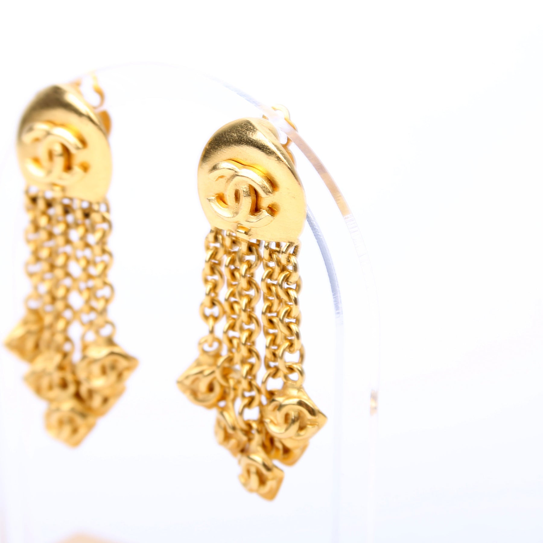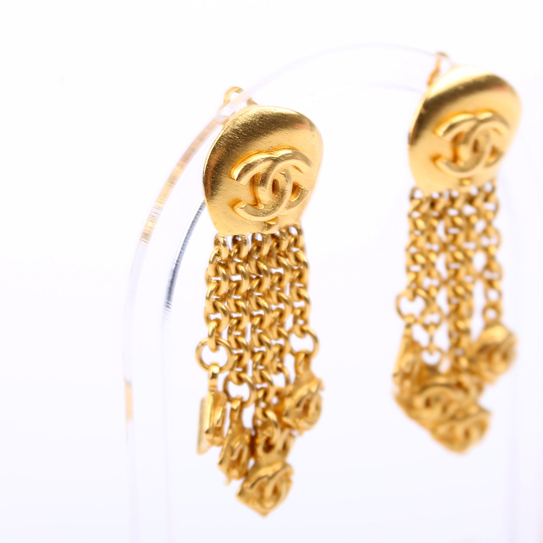 These pre-owned Chanel Mark Swing Clip-On Vintage Earrings are guaranteed 100% authentic.