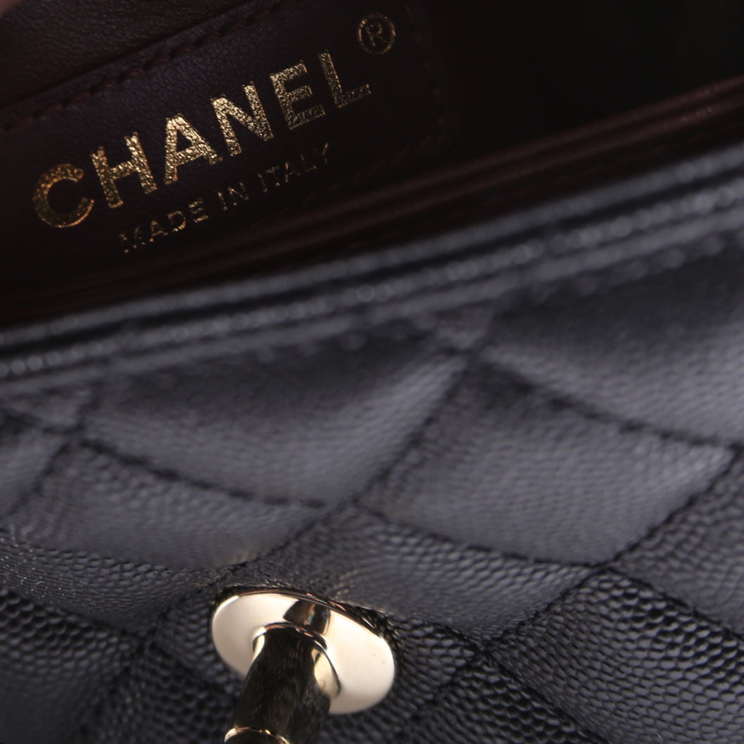 This pre-owned Chanel Coco Top Handle Extra Mini Caviar RFID is guaranteed 100% authentic.